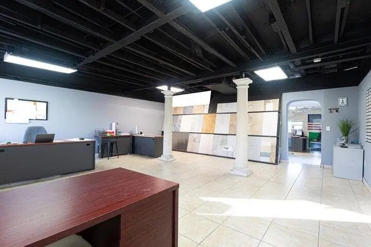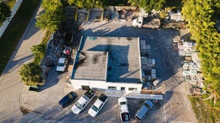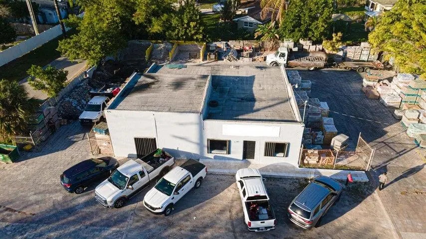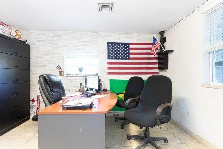 There are three lots (7,8,9) The property is locate on a corner fenced lot. Zoned commercial and residential. It has a building with an office, bathroom and extra room. It has a show room. Storage space for equipment with extra room and bathroom, paved lot, easy parking.