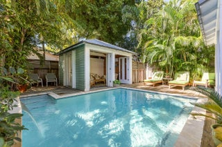 Traditional key West home impeccably maintained, boasts three bedrooms, three full baths with plenty of closets throughout the home. Large private lot with a heated pool featuring a waterfall. Nice size cabana room that has a/c and heat with ample closet space can be a fourth bedroom. This home has large rooms for entertaining, quaint front porch and off street parking. A true treasure.