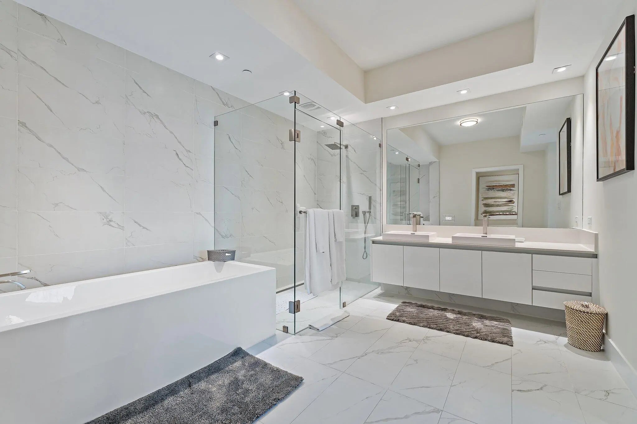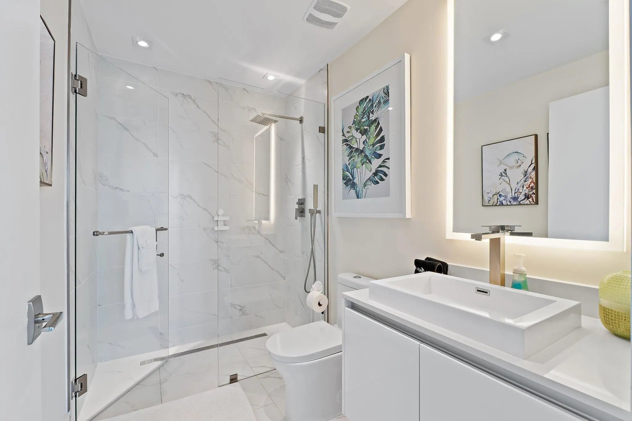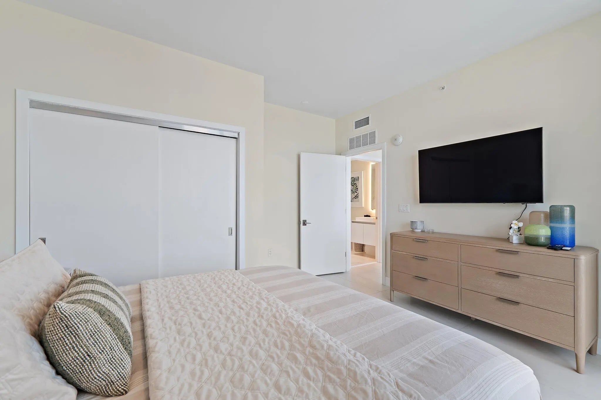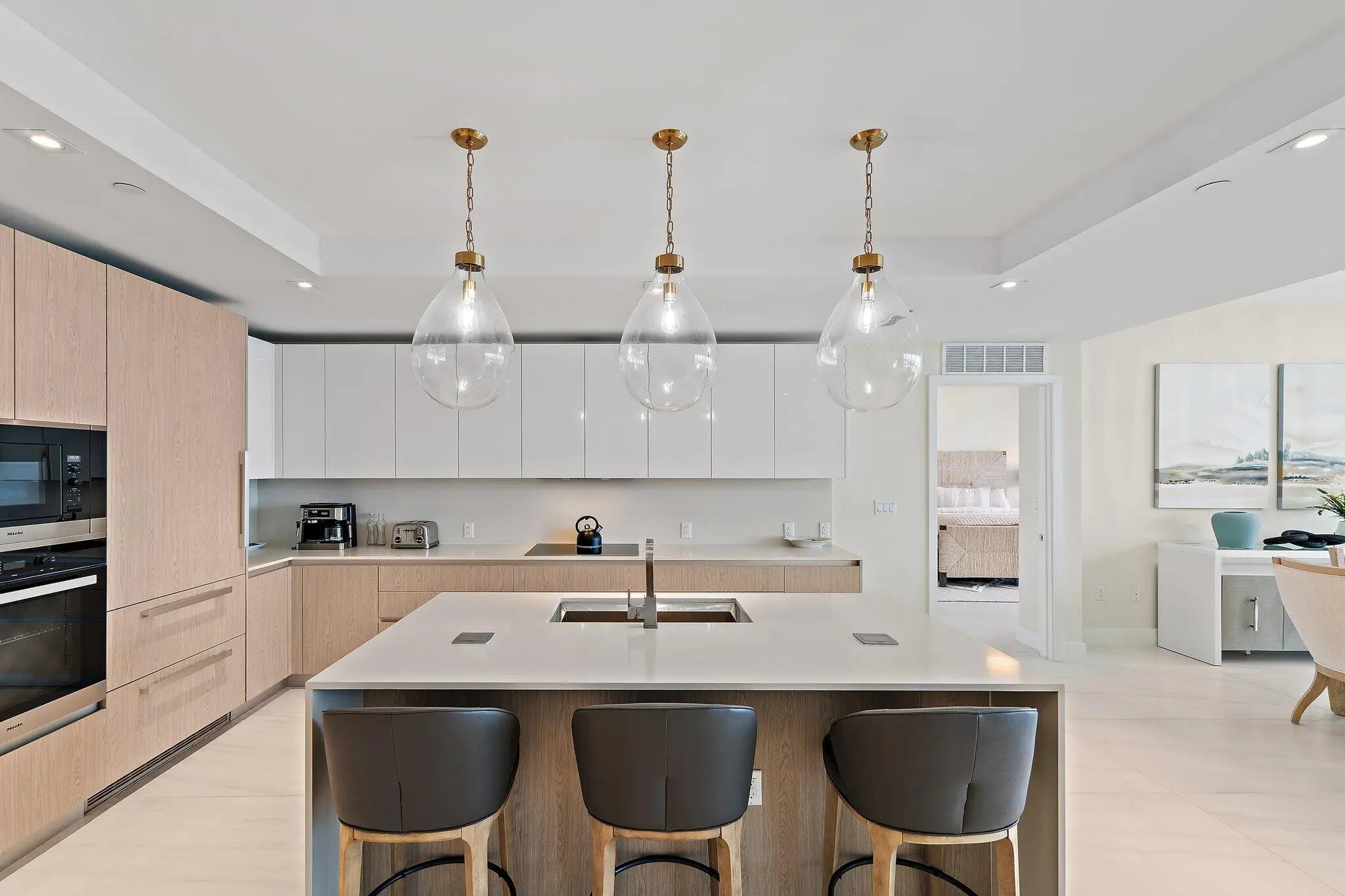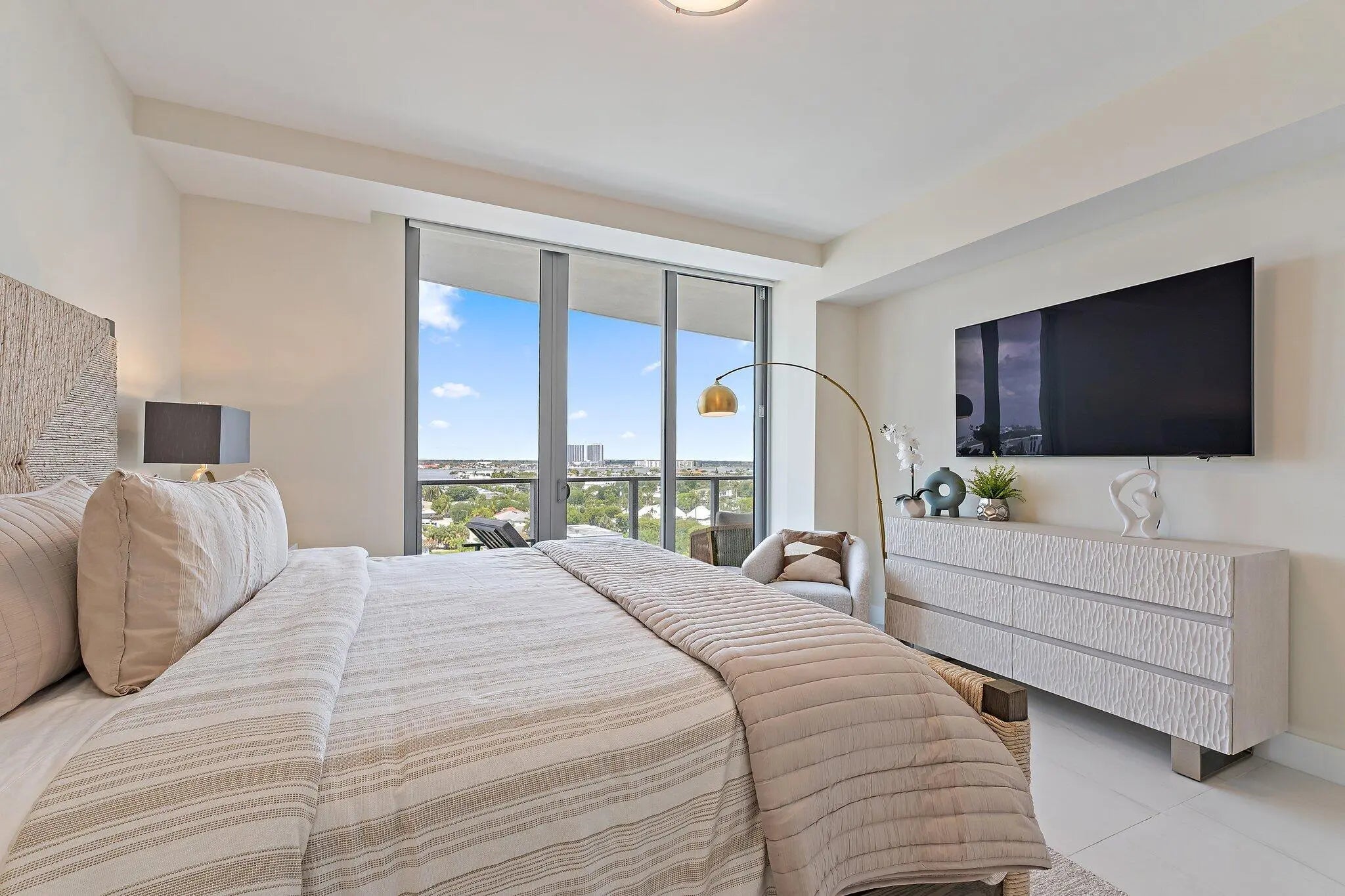 Ultimate luxury awaits on the 9th floor at Amrit Ocean Resort & Residences, a brand-new, health and wellness-focused resort on Singer Island. Now available for annual or seasonal rentals, this fully furnished, turnkey 2-bedroom, 2-bathroom residence offers breathtaking Intracoastal and ocean views from every room. This luxury oceanfront condo features floor-to-ceiling glass doors, an expansive 350 sq. ft. terrace, and an open-concept layout designed for seamless indoor-outdoor living. Enjoy stunning sunsets from your private terrace, creating the perfect setting for relaxation and entertaining. The gourmet European kitchen is equipped with custom cabinetry, quartz countertops, and premium Miele appliances, including a wine refrigerator. The spacious primary suite serves as a private retreat with a spa-inspired en-suite bathroom, featuring a soaking tub, double vanity, and separate shower. The guest bedroom includes a Murphy bed and workspace, providing flexibility for guests or remote work, while the living area offers a stylish fireplace with an oceanfront backdrop. Residents enjoy unparalleled resort-style amenities, including two oceanfront pools, a hot tub, a state-of-the-art fitness center, a yoga terrace, and a full-service spa with a salt room. Additional amenities include a resident lounge, billiards, direct beach access with chair and towel service, valet parking, and on-site dining at Tula restaurant and Lala lounge. Conveniently located near PGA, Carmines Gourmet Market, Publix, and MacArthur State Park, PBIA Airport this property offers easy access to premier shopping, dining, and outdoor activities. Available for seasonal, or annual rentals, with a 1-month minimum stay. Resort fee and valet parking apply for short-term stays. Experience the ultimate luxury wellness lifestyle in the Palm Beaches at Amrit Ocean Resort.