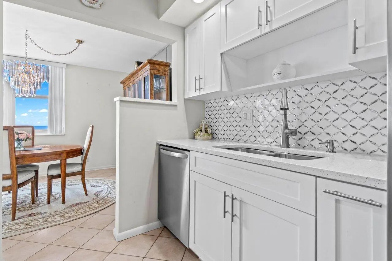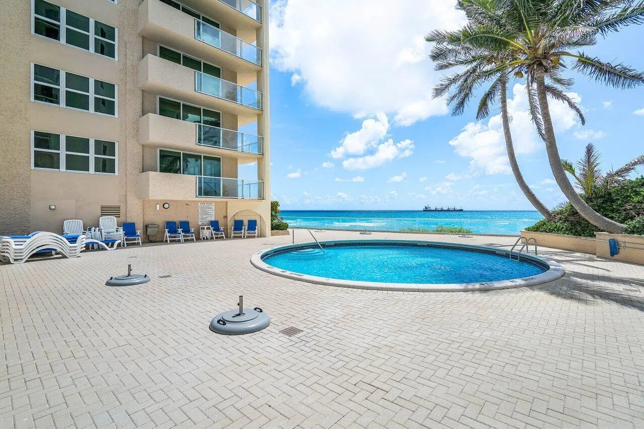 Direct oceanfront 2 BR, 2BA condo, corner unit w/wrap around balcony & impact glass, ocean view from all living areas & bedrooms! Easy access to private beach Beautifully remodeled kitchen 3 yrs ago w, quartz, Italian marble backsplash, dishwasher only used twice, Frigidaire appliances, walk-in pantry. Light & bright, tile thru-out, blinds, stackable w/d (not shown on floor plan) plus community laundry on each floor. Aug 2024 commercial grade ac (outside unit). Available furnished, 3 new TVs. Assigned covered parking spot. Heated community pool, social room w/kitchen, gym w/ sauna & his/her showers, grill, seawall, bike storage, paddle board storage, garbage shoot. 5 miles of beach w park access. New roof installation to begin April 2025, seller already paid $2,000 assessment due 5/2025!