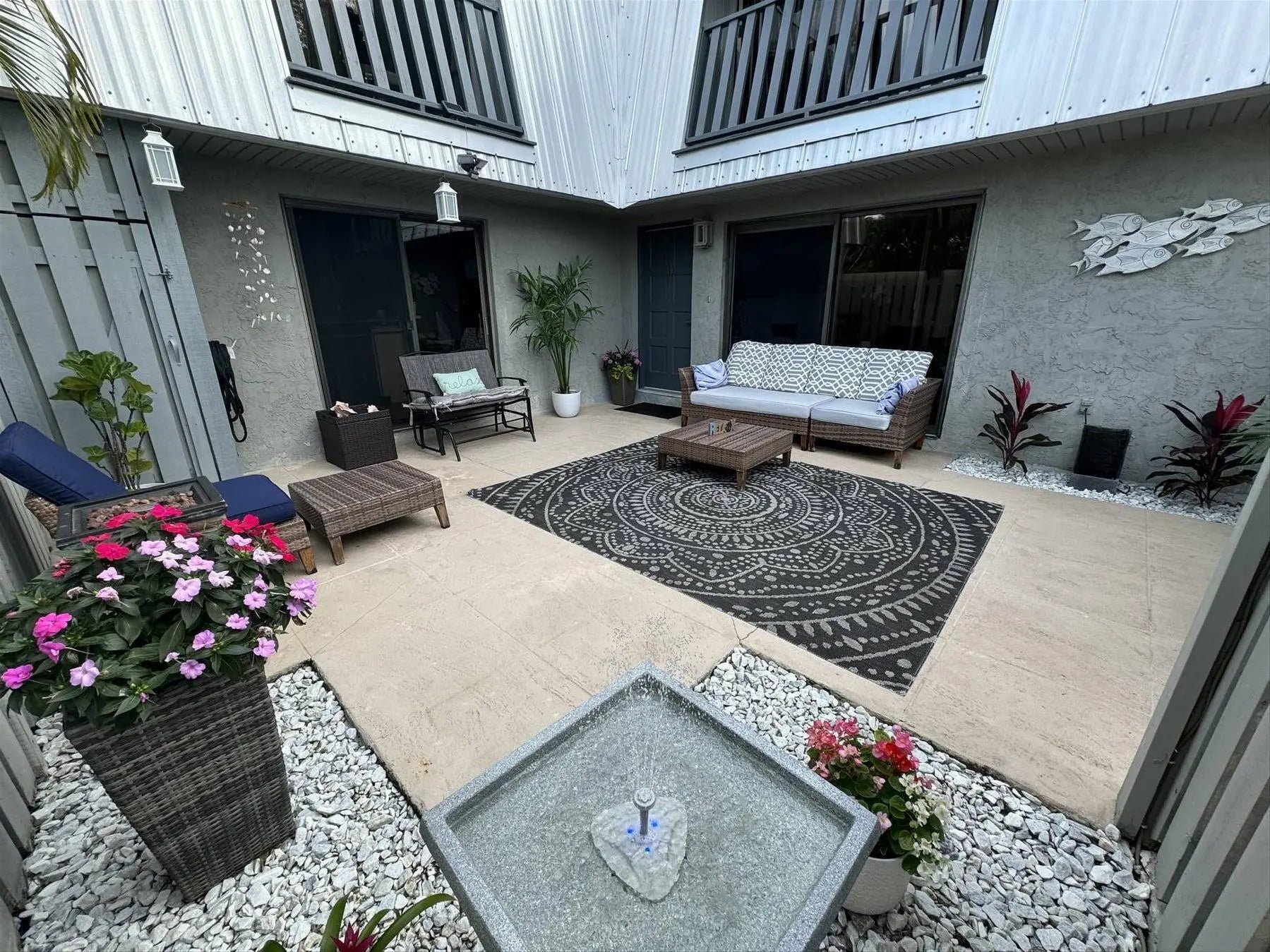 Enjoy this tranquil 3/2 unit townhome community. HOMEOWNERS INSURANCE INCLUDED!! Move in ready, featuring an open kitchen with breakfast bar and all new stainless steel appliances. Living area is light and bright and has a convenient first floor half bath and laundry. Upstairs, there's two oversized masters with updated ensuites. Private fenced courtyard adds to expand your living experience. You will feel like you are on vacation as you enjoy the heated community pool and cabana. Maintenance fee's include cable, lawn and grounds care, pool and termite service, roof maintenance, homeowners insurance, and property management. Ideally located near medical, highways, golf, beaches, boating and marinas, Sandsprit park and downtown Stuart.