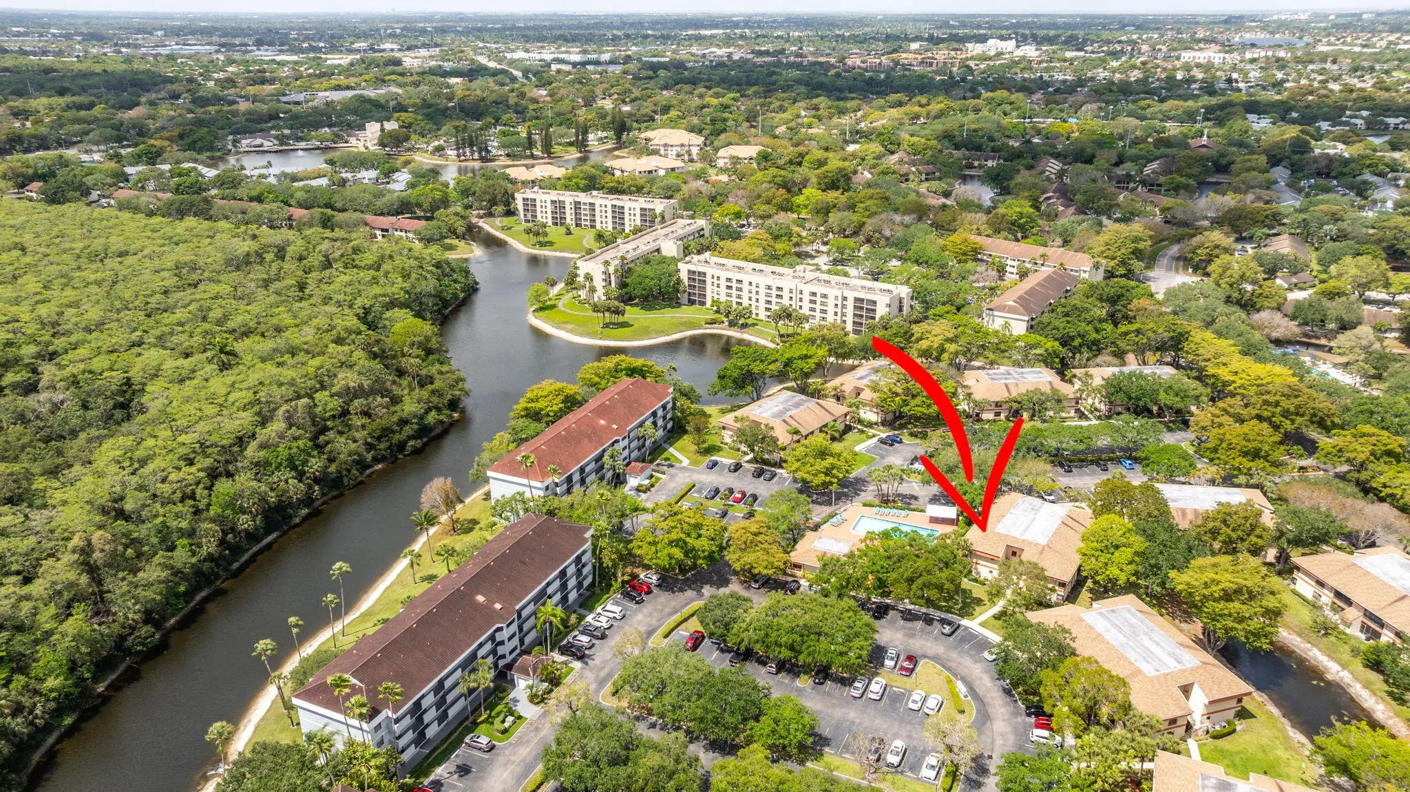 Reduced!! Nestled in the lushly landscaped Township community, this charming 2-bedroom, 2-bath second-floor unit in Karanda VII overlooks the pool. Enter through a formal foyer to a spacious great room or screened-in patio, perfect for relaxing or entertaining. The formal dining area is ideal for special occasions, with additional dining options in the kitchen or on the patio. The kitchen features granite counters and wood cabinetry. The split-bedroom layout ensures privacy. The primary suite boasts a walk-in closet and ensuite bath. Guest bedroom, bath, and washer/dryer on the patio complete this lovely home. Close to shopping, dining, and entertainment. All ages welcome. Township amenities offer, Olympic size pool, fitness center, tennis, pickleball courts, basketball and much more