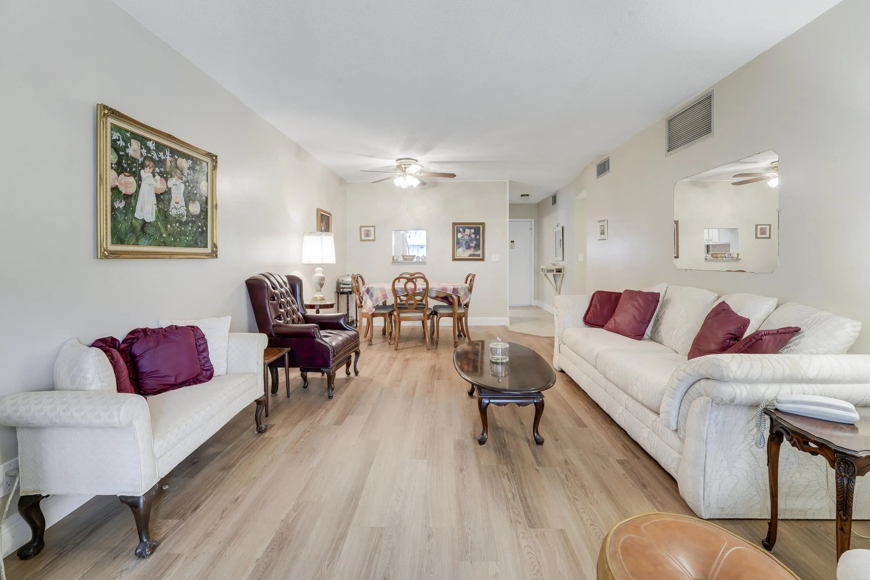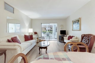 Welcome home to this move-in ready *ground-floor* 2 bed, 2 bath condo in the 55+ community of Village Royale! Featuring an updated kitchen with newer appliances, brand new bedroom flooring, and a spacious Florida room with full-sized washer and dryer. Step outside to your private pavered patio with beautifully landscaped views. HOA includes water, trash, basic cable, and internet. Enjoy fantastic amenities—clubhouse, pool, shuffleboard & more. Prime location just minutes to the beach, Publix, shopping, and I-95. Don't miss this one! ** Seller paid all special assessments in full! Many association updates are in process of completion. **