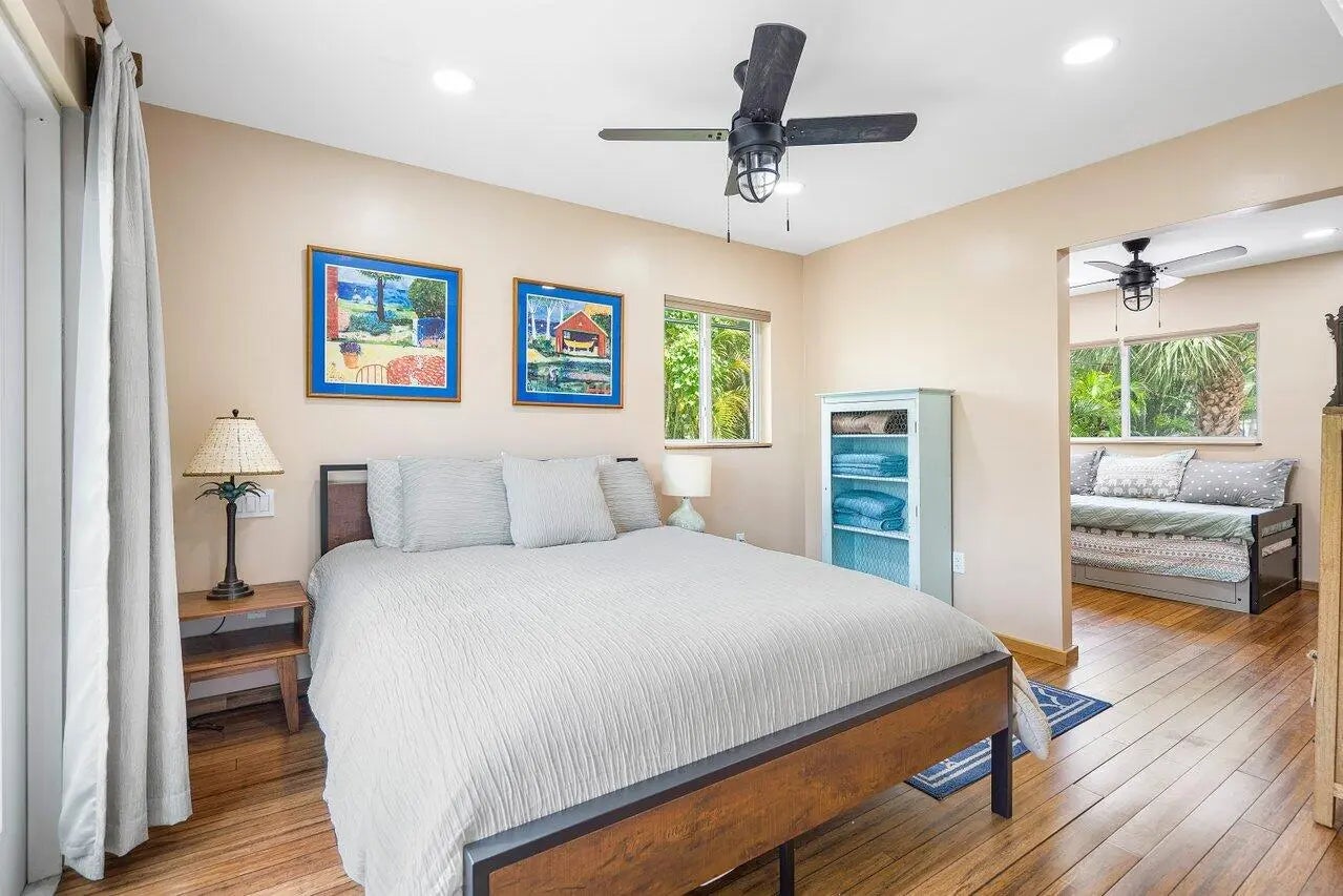 Nestled in the vibrant heart of Delray Beach and situated in the coveted Marina Historic District, discover a unique blend of history and modern comfort in this beautiful hand-crafted loft property. This beachy unit is thoughtfully designed with a separate entrance to ensure complete privacy, while being attached to the main home. Just a short stroll away, you can explore pristine beaches, energetic nightlife, charming boutiques, and the hottest restaurants. This one bedroom plus den offers private deck space accessible from both the main entry and primary suite, perfect for relaxing. Property highlights include bamboo wood floors, butcher block countertops, impact glass and designated parking space. Live in a quintessential Delray Beach home that offers an oversized backyard oasis perfect for sunbathing and entertaining. Available for short-term rental.