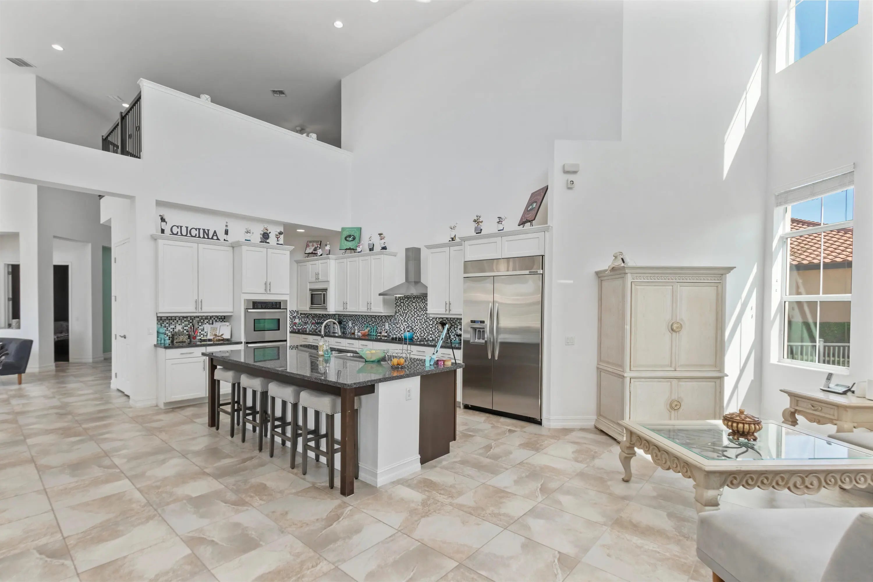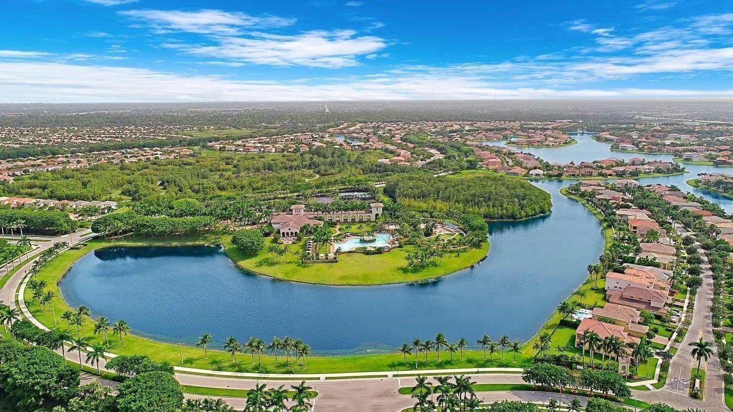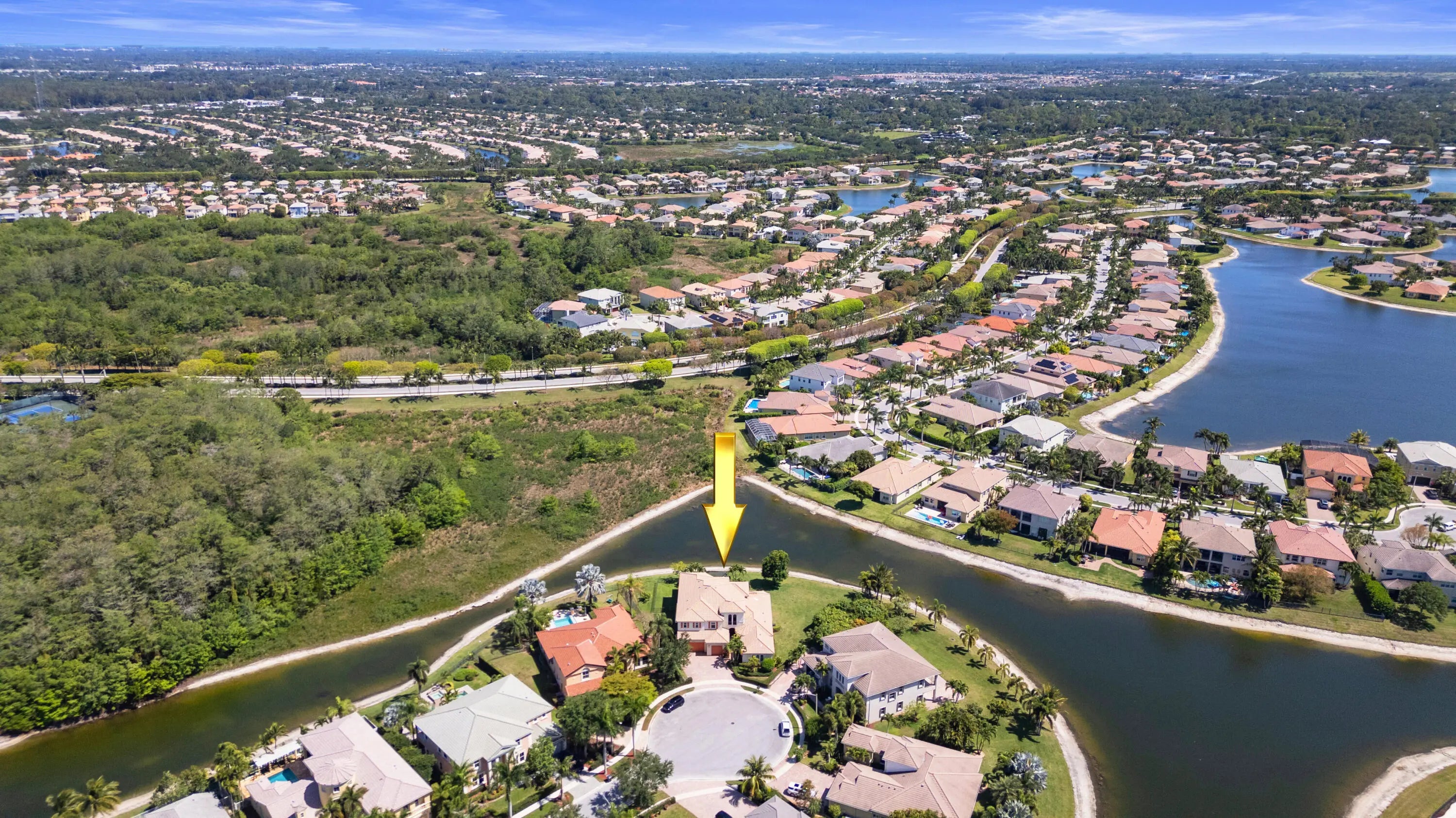 Welcome home to this stunning 6500 total sq. ft. 5 bedrooms and an additional 3 rooms to be used as offices, work out rooms, play rooms, craft rooms, more bedrooms and beyond! All bedrooms have their own en suite bathrooms aand there are 7 total bathrooms throughout. Only 12 years young and on model row in Olympia's premier village of Merriweather on the most gorgeous .4 of an acre pie lakefront lot with breathtaking views! Upon entering you can't help but to be wowed by the 25 foot volume ceilings through most of the main areas and kitchen. Light and bright throughout! The kitchen is the heart of the home and I absolutely love a kitchen with volume ceilings! Stainless, granite, and an awesome coffee bar with seating. The main island is massive and perfect for gathering friends! The owner's suite is my favorite aspect of this home. Huge bedroom, multiple large walk in closets with plenty of space, TWO en suite bathrooms, and the best private office/den space quiet and away from the noise. There is an additional bedrooms with en suite bathroom on the main floor as well. A hidden staircase takes you upstairs to a huge loft area as well as 3 more bedrooms. The curb appeal is stunning, and this gorgeous estate checks all the boxes. The backyard is truly a tropical oasis. Screened area perfect for entertaining as well as fenced in area to the left of the home. The entire lot is spectacular and so much room for a pool. This beautiful home is ready for a new family to love! Olympia is Wellington's premier resort style community that is unparalleled in amenities and true bustling community feel, and this estate in the gorgeous Shaughnessy Village. The magnificent and gigantic zero entry community pool is truly the best community or resort pool I have ever seen and includes private cabanas and an exciting splash pad for the kids. The clubhouse also includes indoor and outdoor basketball courts, pickleball court, volleyball court, tennis courts, an incredibly impressive upscale clubhouse, updated fitness center, and an entirely renovated brand new huge and fun playground complete with astroturf and tons of fun equipment for the kids. Low HOA dues include high speed ATT internet, four manned security entrances, 24 hour rovers, and more. Such a wonderful community feel here. The home is located within walking distance to the clubhouse, restaurants, and shopping. Merriweather Village is a premier estate section in Olympia and a beautiful place to call home. Olympia offers a country club experience without the dues including family fun runs, 5k, 10k, luaus, karate lessons, yoga, 20's themed flapper parties, mom and daughter painting nights, ladies brunches, food trucks, bounce houses and waterslides, pizza parties, holiday parties, end of school year parties, outdoor movie nights, and the list goes on. This is a true community feel. Did I mention the top A rated Wellington schools? Come see this home, it is as gorgeous in person as it is in these photos. You deserve to live the Olympia lifestyle, now it is time to make your dream a reality.