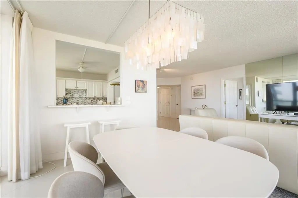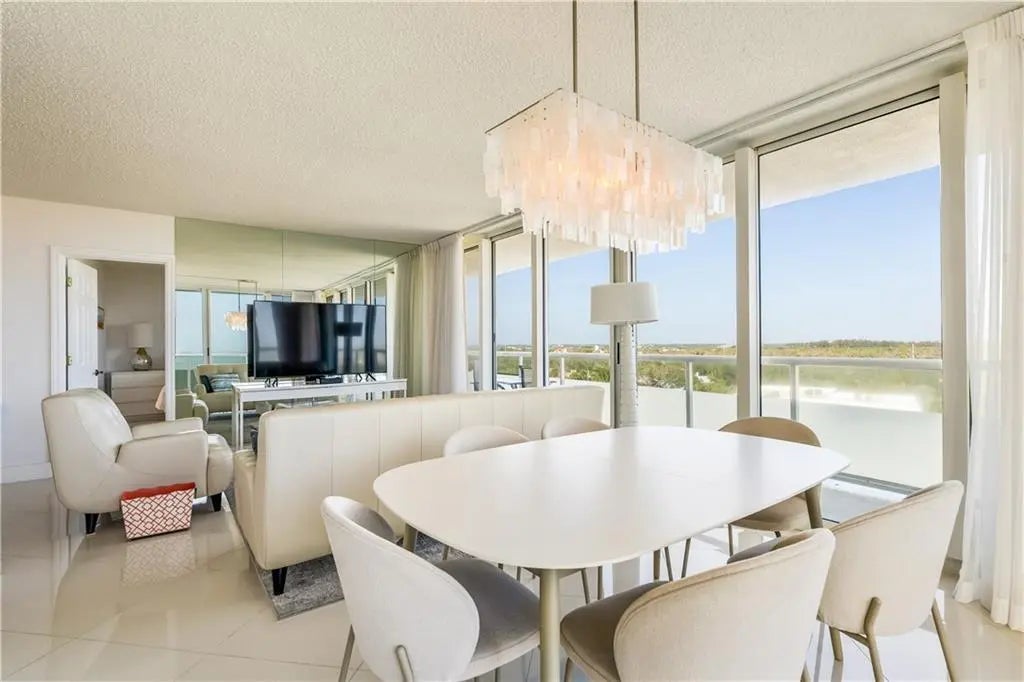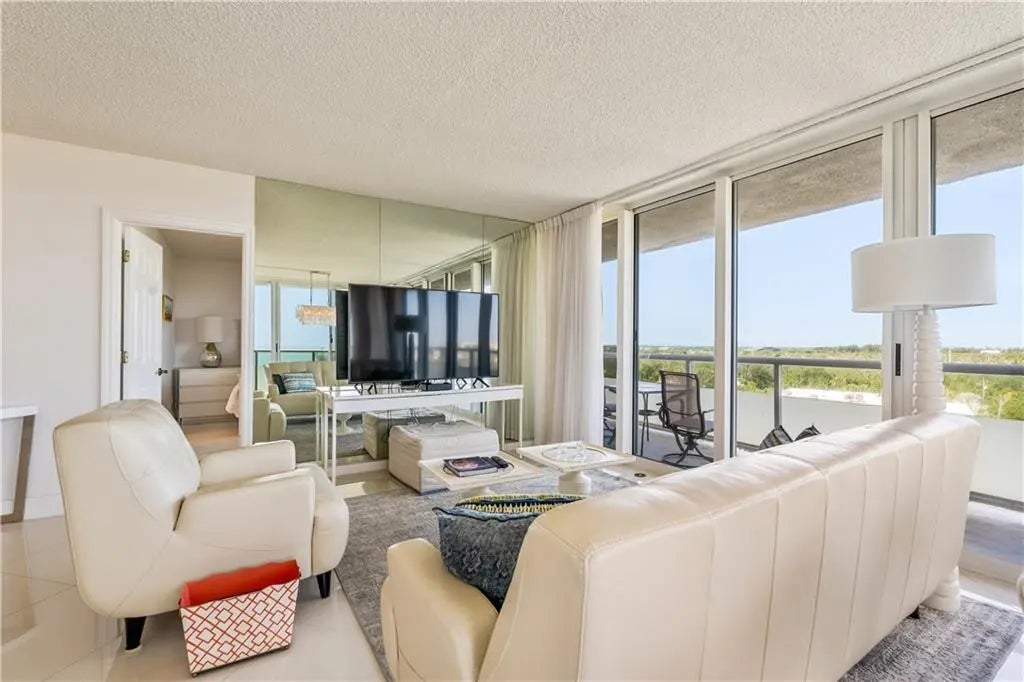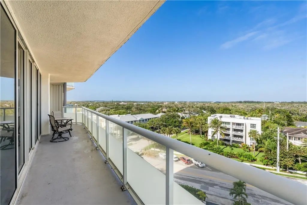 Live life elevated in the corner of the 7th floor in the only high rises in Vero Beach. Relish in birds eye views from the wrap around covered balcony of both the beach and bridges. Modern updates make this a stylish beach retreat. Crisp white kitchen with stone counters, tile backsplash, breakfast bar. Impact glass, tile throughout, furniture negotiable. Enjoy the Florida sunshine in the oceanfront pool, exercise in the fitness center, and enjoy sunrise beach walks with private beach access. Perfectly located with all the Ocean Drive amenities, shopping and dining right outside your door.