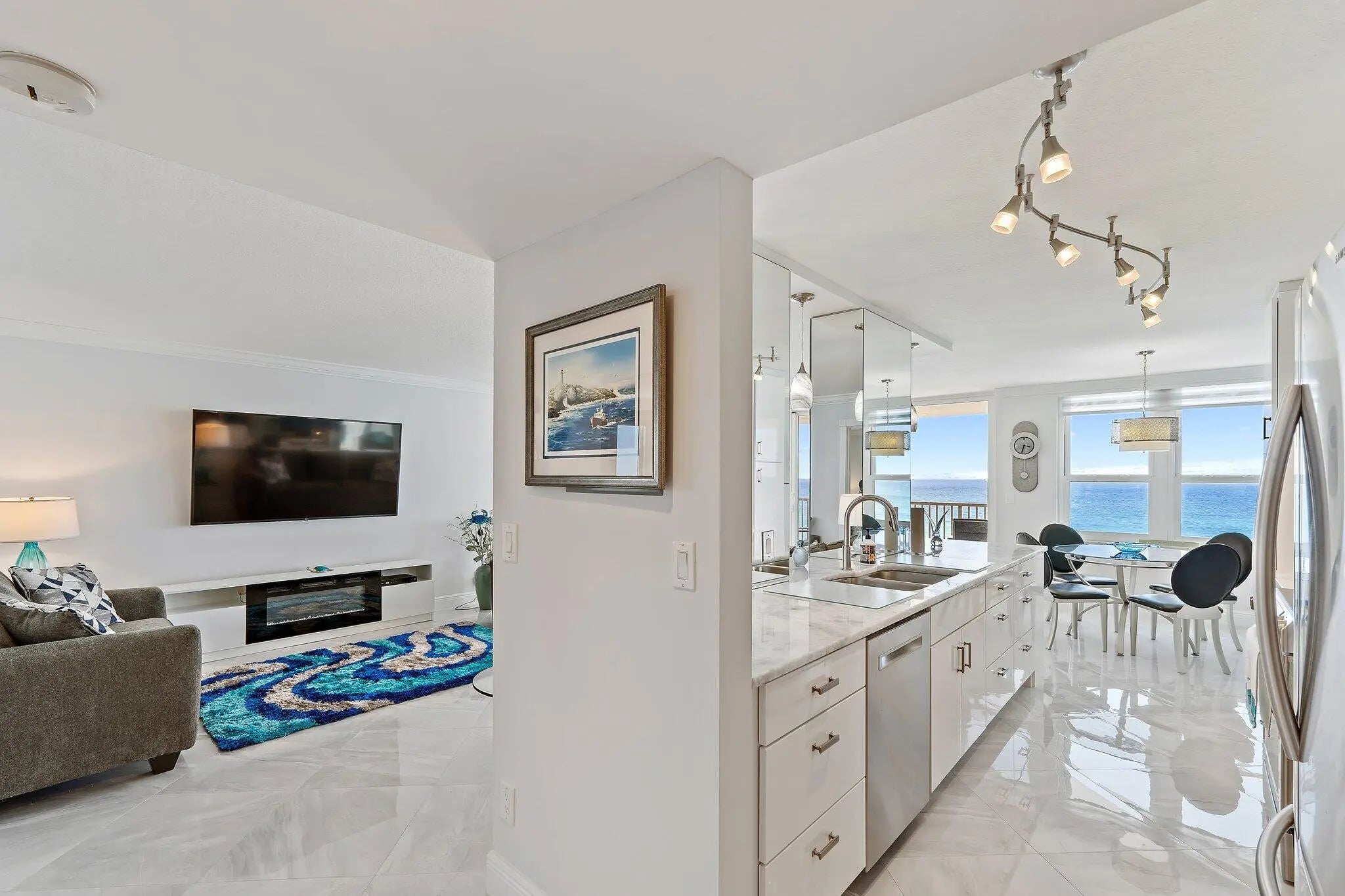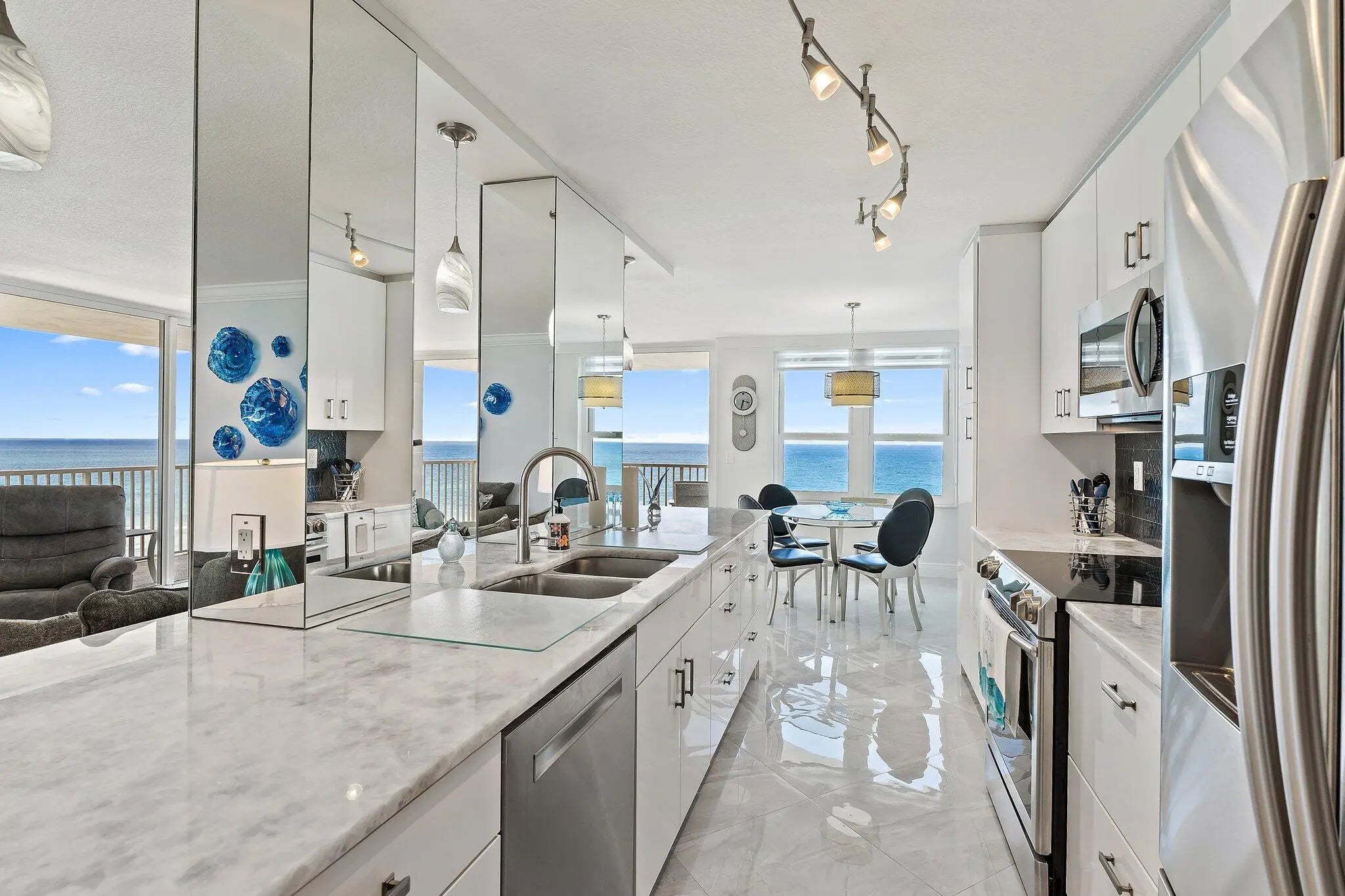 This totally renovated 1 bedroom with one full bath and one 1/2 bath, directly on the sand in Building ''A'' at Dunes Towers, is the perfect spot for a luxury getaway. Located on the 7th floor on the N.E. corner of the building, it's as close as you can get to the ocean. Relax with windows and doors open, and take in the sound of the ocean surf, and soft seaside breeze. Community amenities include a fitness center, storage areas, pool, and community lounge. Dunes Towers is the second complex from the North End of Singer Island with easy access to the finest shops, restaurants, and area clubs. The best of Palm Beach and PBIA are both only twenty minutes from the property.
