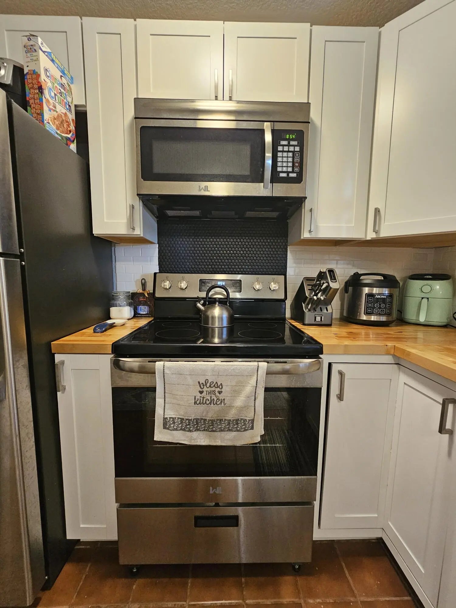 Dryer, Dishwasher, Electric Range, Microwave, Refrigerator, Washer