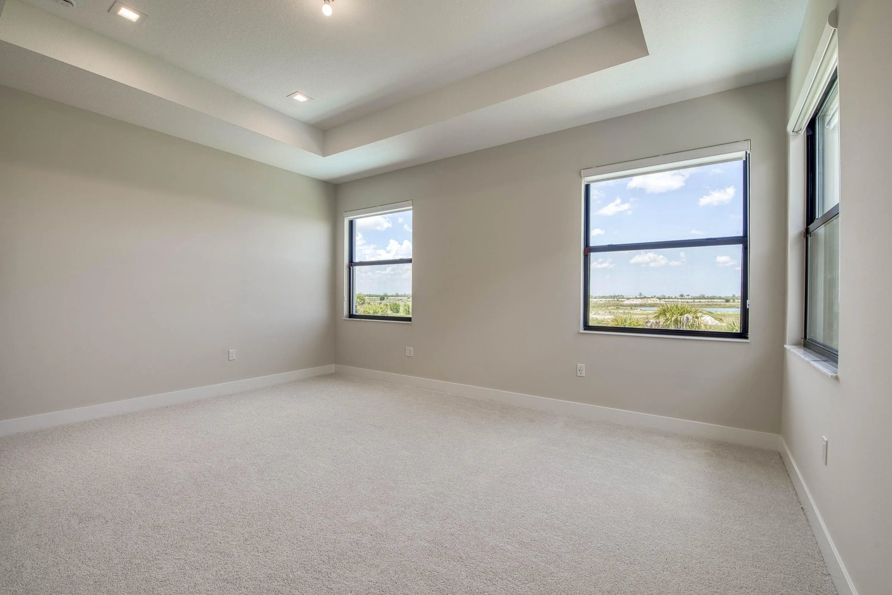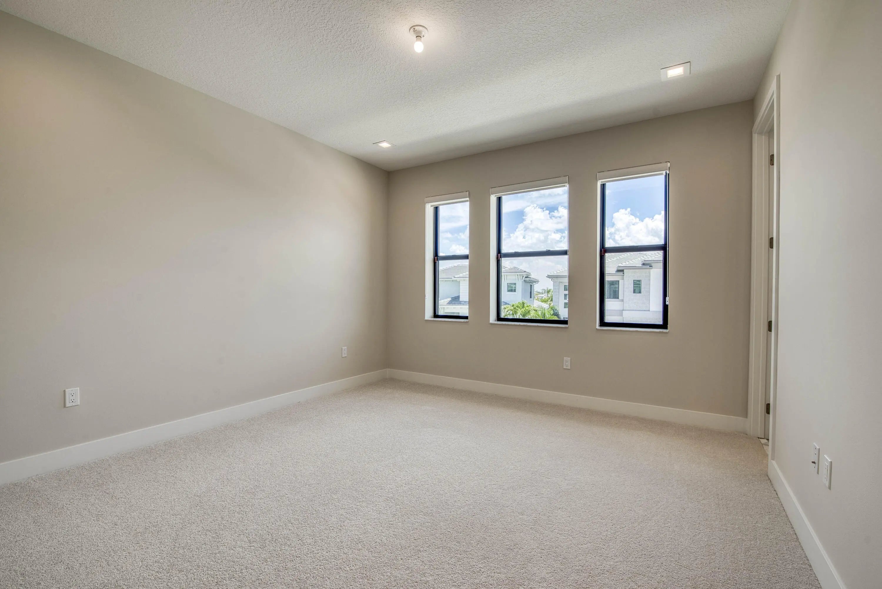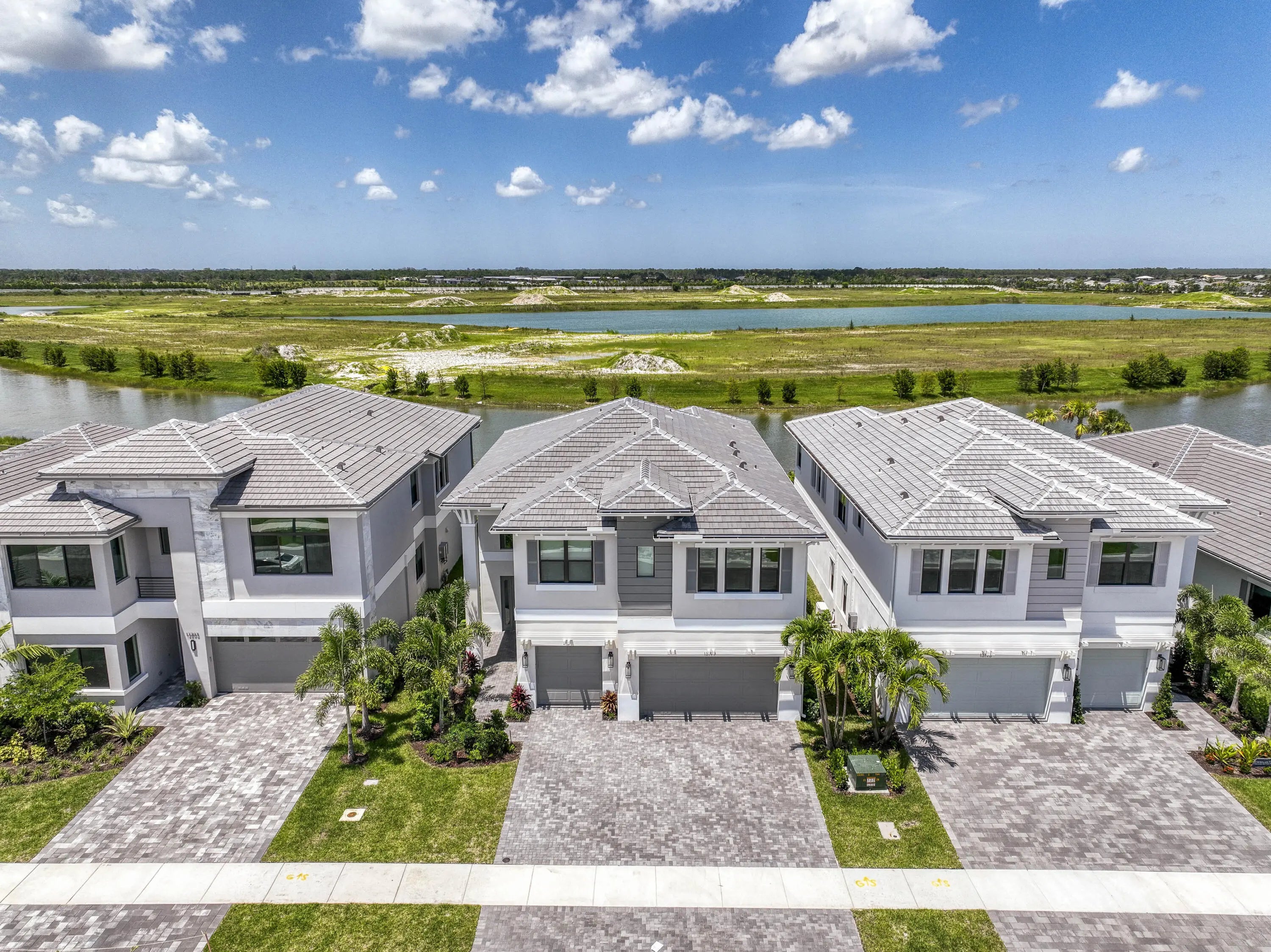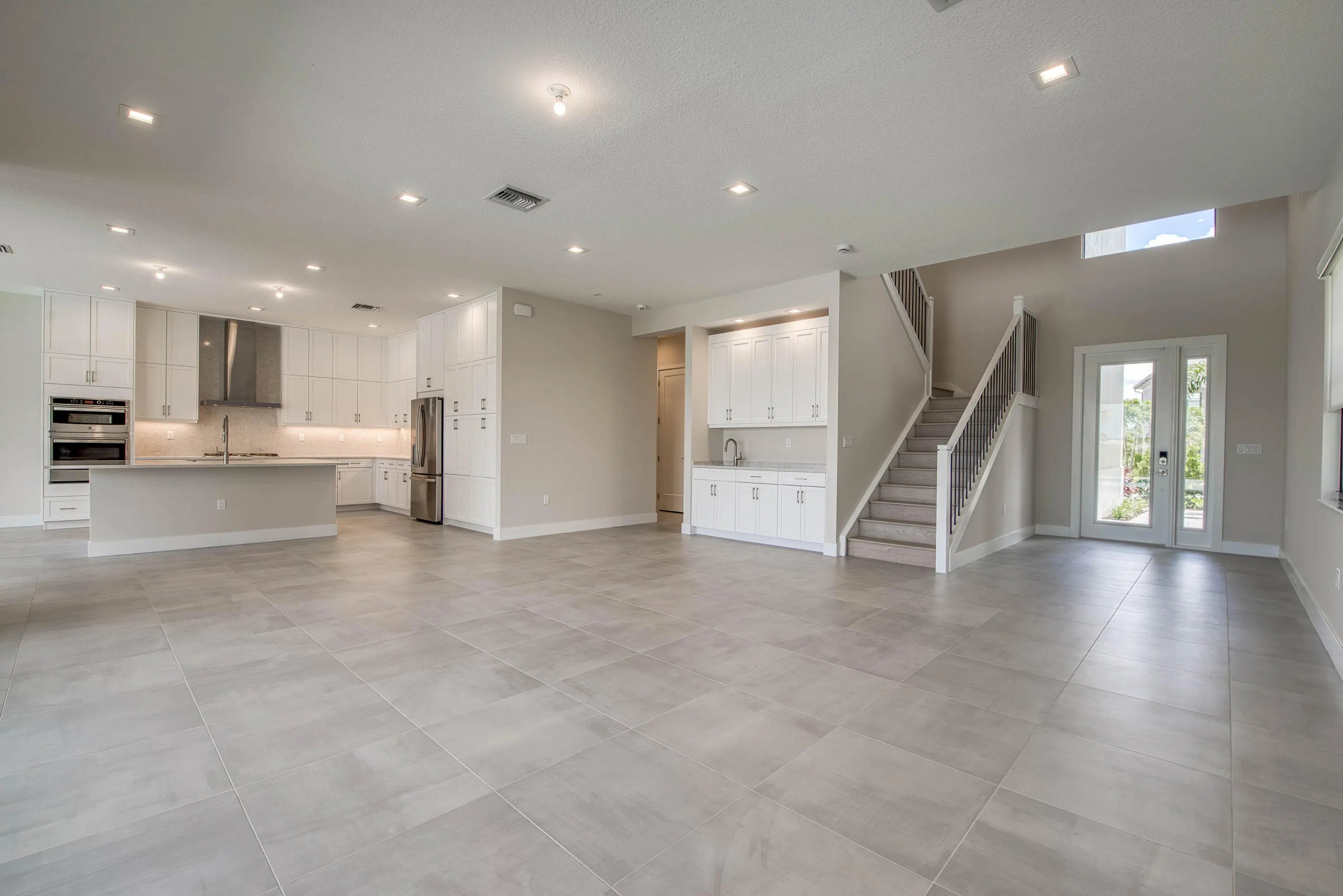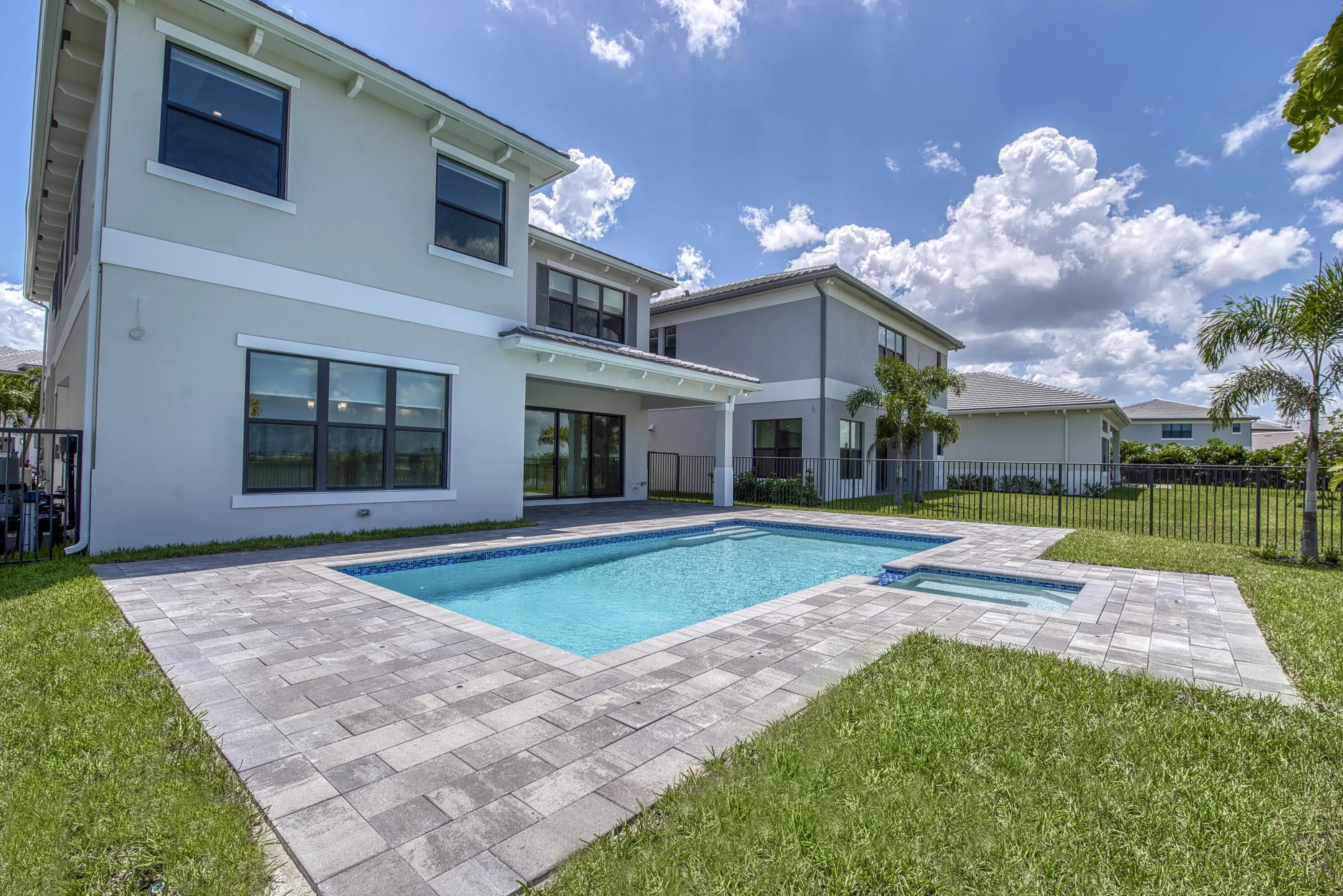 Experience modern luxury in this beautifully designed home located in Apex at Avenir. Offering 4 bedrooms, 5 bathrooms, and a three-car garage, this residence also features a private den and spacious loft, both on the second floor and ideal for work, relaxation, or additional living space. The gourmet kitchen is a true highlight, showcasing upgraded cabinetry, sleek quartz countertops with full backsplashes, premium stainless steel appliances, and a large island with additional seating, perfect for entertaining. The primary suite is conveniently located on the second floor for additional privacy and features dual walk-in closets and a spa-inspired en-suite bathroom with separate vanities, a dressing table, a soaking tub, and a walk-in shower. Upstairs, two spacious guest bedrooms provide privacy and style, each with its own unique character. Step outside to a covered patio with sparkling pool set against tranquil lake and fountain views. All of this is set within an exceptional lifestyle community, close to the best of Palm Beach County.