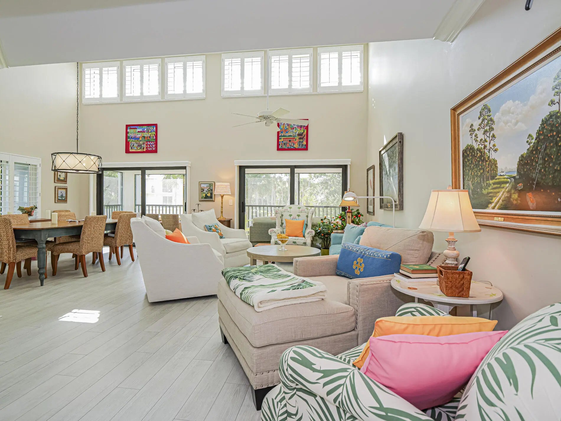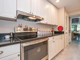 This amazing 2nd floor ranch style home has 2 large bedrooms each with a newer full bath. Completely renovated with newer laminate flooring throughout. Cathedral ceiling in living room, plantation shutters, granite kitchen counters with newer appliances, cozy fireplace for the rare chilly evening in paradise. Full dining room, large porch overlooking green lawn area and delightful cross breeze. Short walk to the beach, all within the Moorings. Tropical decorating - light and airy. A real turnkey. Full sized washer and dryer.