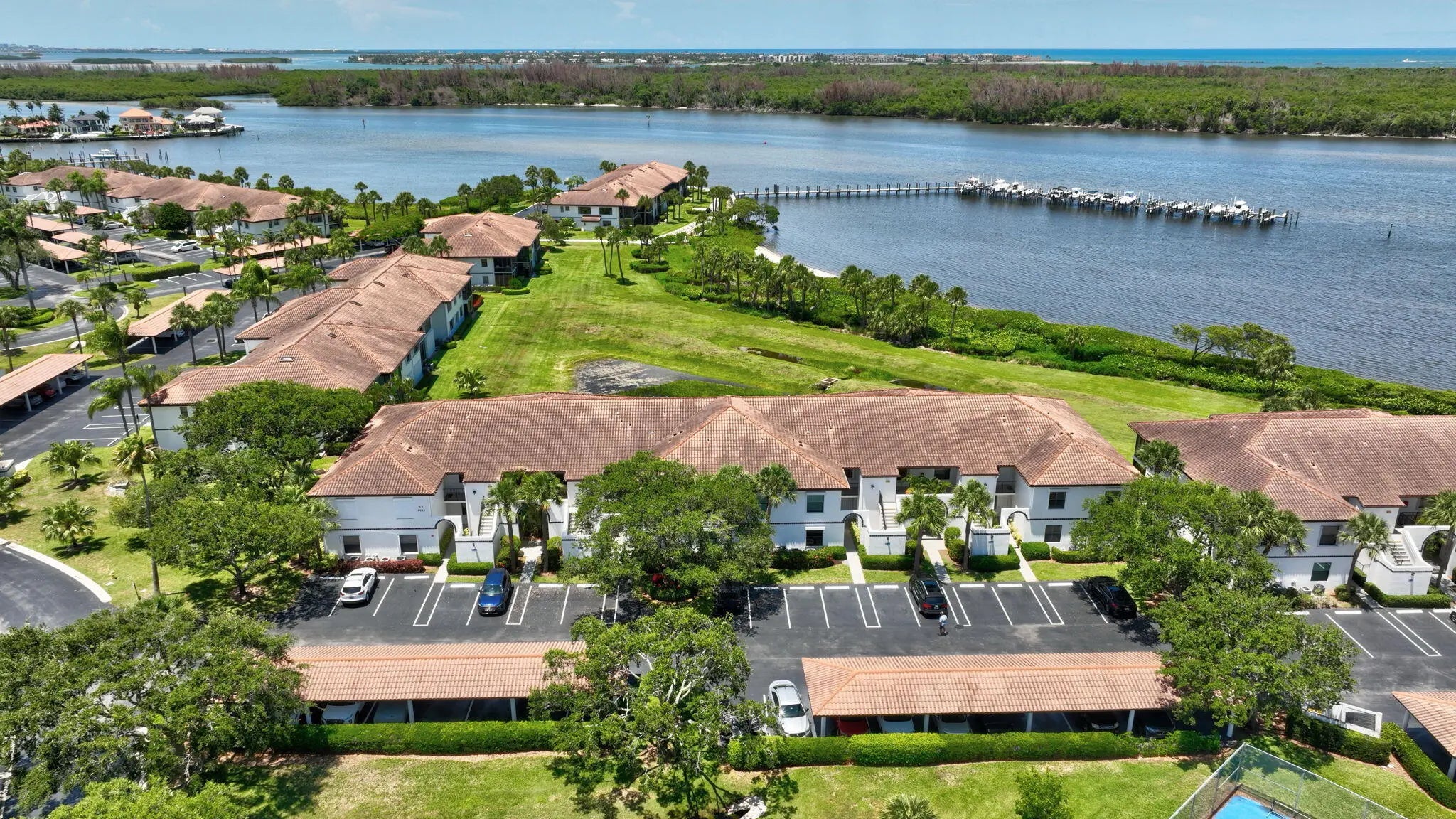 Now available! First Floor 2/2 Hanson's Landing Condo in beautiful Stuart Florida! Charming waterfront community situated on 27 acres of tropical grounds overlooking sparkling lake, mature palms & the Great Pocket Waterway & short cruise to the Saint Lucie Inlet & stunning Atlantic Ocean. Residents enjoy community pool house, heated jacuzzi & newly resurfaced pool, tennis & pickleball courts, kayak & watercraft racks for all the Florida outdoor fun. Comfortable condo offers over 1100 A/C SqFt, updated bathrooms, freshly painted, fantastic Florida room with views of Hanson's Landing grounds & waterways. Additional notable features include; stackable washer / dryer, storage closet, covered parking space, newer microwave, dishwasher & refrigerator. Maintenance Fee Includes building Insurance, roof, grounds maintenance & amenities, reserves, manager, basic cable & Internet. Located adjacent to Miles Grant Country Club offering an 18-hole par-64 course, Har-Tru clay tennis courts, pool, shuffleboard, bocce and croquet, to name a few outdoor activities. Formal and casual dining are offered at the Clubhouse. summer golf, tennis and social memberships available
