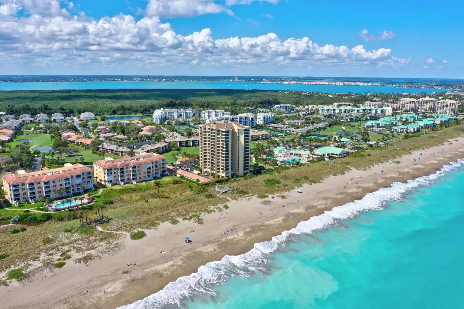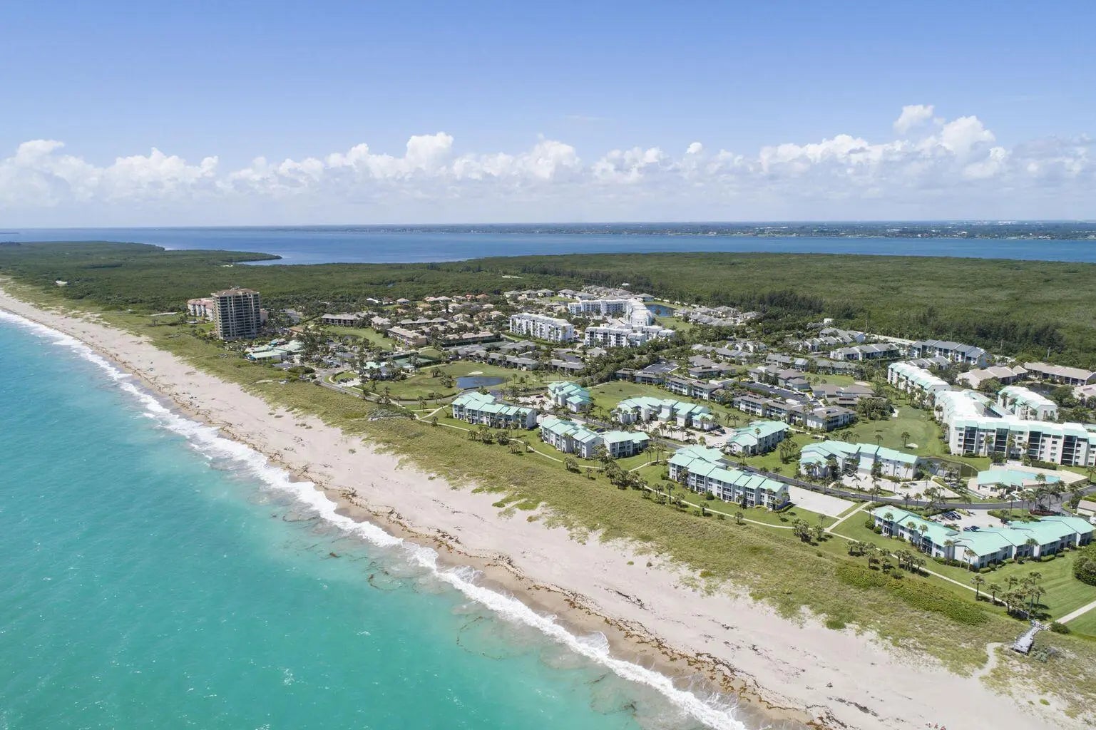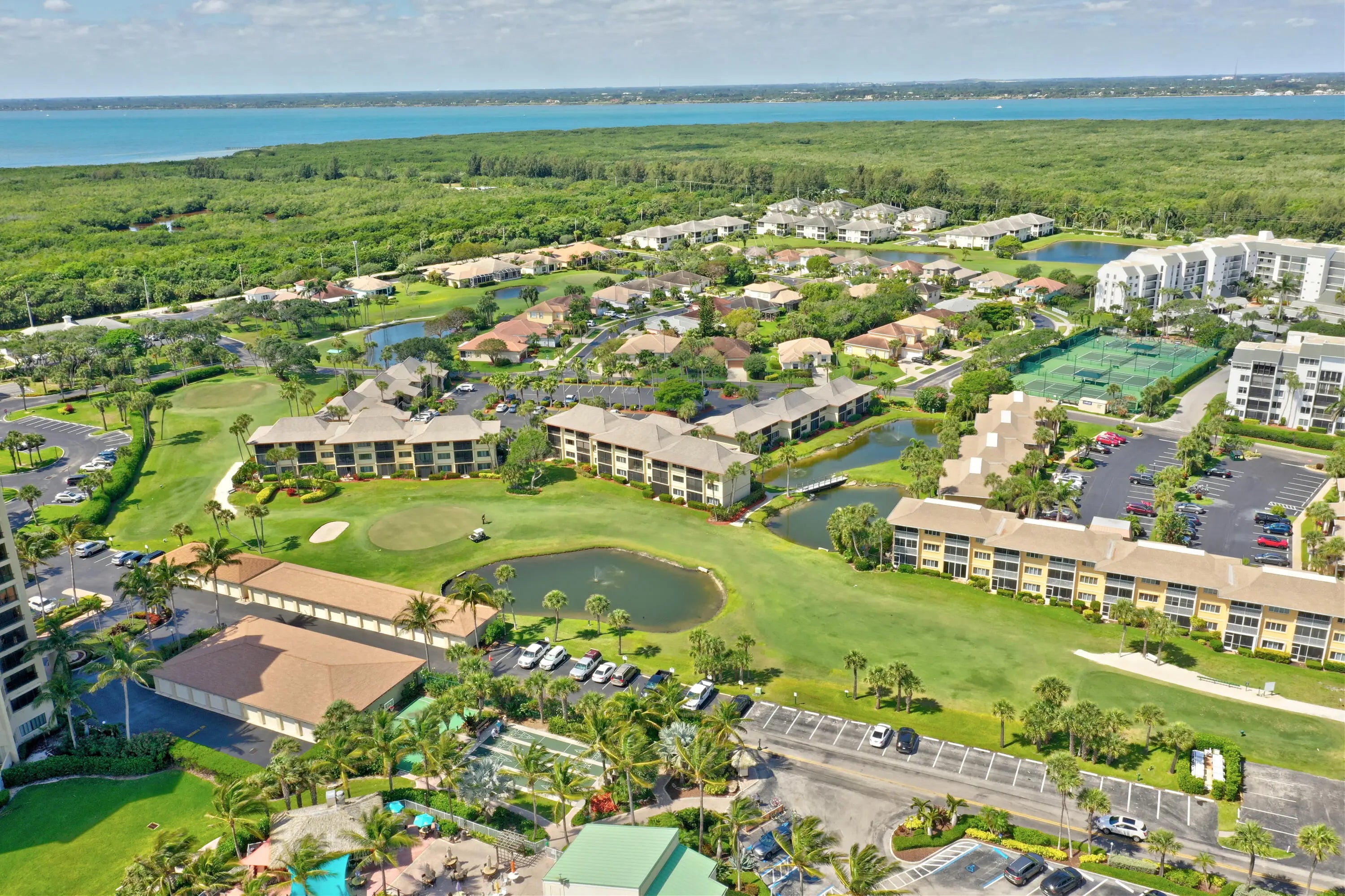 OCEAN VIEWS! Beautiful 1 bedroom furnished condo at Ocean Village on South Hutchinson Island! Gorgeous top floor unit with golf & ocean views! Granite kitchen countertops, tile throughout & more! Great investment unit that can be rented weekly. Instant income with this unit; seasonal rentals 2027 already in place! This unit has a washer & dryer inside & a spacious exterior storage closet. Completely furnished/turnkey! Enjoy the best of Florida living at this beautiful oceanfront community offering 24 hr gated entry, 9 hole par 3 golf course, tennis, bocce ball, pickleball, 4 pools, shuffleboard, new clubhouse & fitness center, resort style main pool, oceanfront restaurant & tiki bar & 3500 feet oceanfront! Located on South Hutchinson Island with 21 miles of uncrowded & unspoiled beaches.