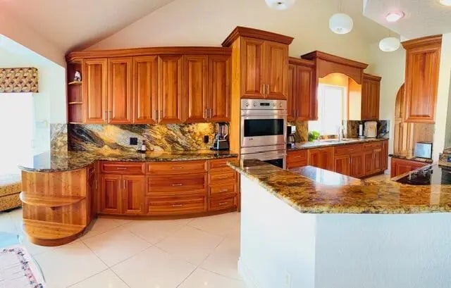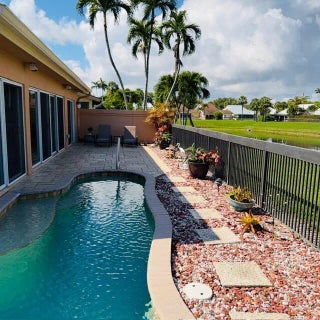 Totally renovated waterfront Bluffs home, 2 Bd, plus den/third bedroom, loft, enlarged kitchen open to living area, over 300 Sq.Ft. added to living space, Impact sliders and windows throughout. High quality wood cabinets, high end stainless steel appliances, beautiful granite counters. Florida room is air conditioned and part of main house, outside custom built Alfresca grill, heated pool & lighting all controlled by Jandy system. Custom interior lighting, solid 8' wood pocket doors throughout, huge pantry with built-in shelves, built-in wine cooler, built-in laundry hamper's, ietched glass front door. Electronic window treatments on all sliders. Maintenance free rear yard/tropical landscape with paver bricks on driveway, walkway and rear patio. Custom built-ins & air conditioned Garage
