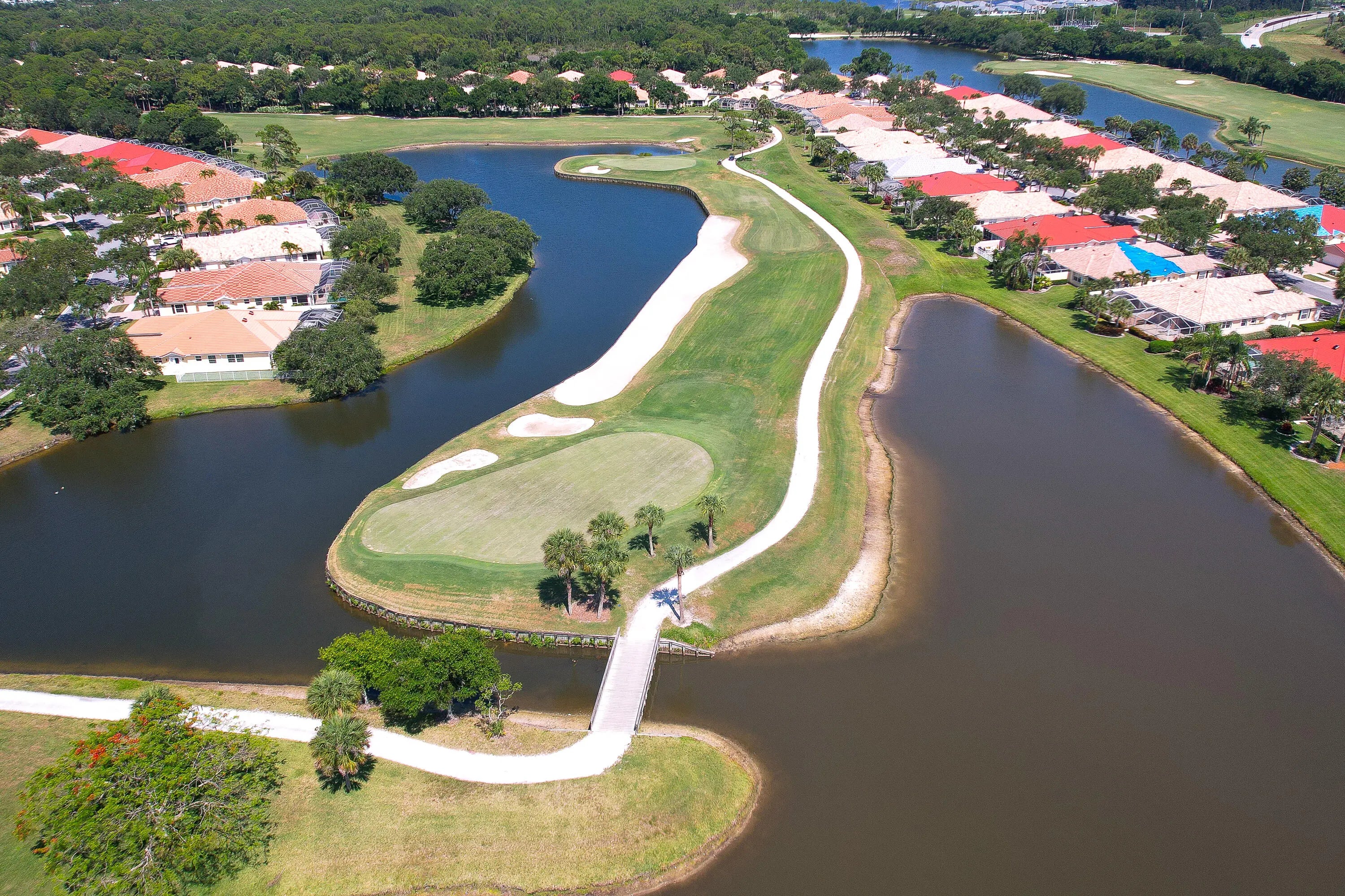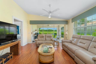 Welcome to this beautifully maintained villa in The Florida Club, featuring the sought-after Capri floorplan. Light-filled and inviting, the interior boasts a spacious layout with updated A/C and water heater, a central vacuum system, and a split-bedroom design for privacy. The kitchen offers abundant white cabinetry, granite countertops, and stainless steel appliances. The primary suite includes a walk-in closet, dual sinks, and a spa-like atmosphere. A generously sized guest bedroom sits at the front of the home with its own walk-in closet. Outside you'll enjoy the screened lanai with serene views of the 11th fairway and a tranquil lake—perfect for relaxing or entertaining. The attached 2-car garage adds convenience and storage. The Florida Club is an active, gated golf community in Stuart, FL, offering residents access to golf, tennis, a community pool, pickleball, and scenic oak-lined sidewalks ideal for leisurely strolls. Experience comfort, style, and the Florida lifestyle at its best. Home comes completely furnished. Low HOA fees.