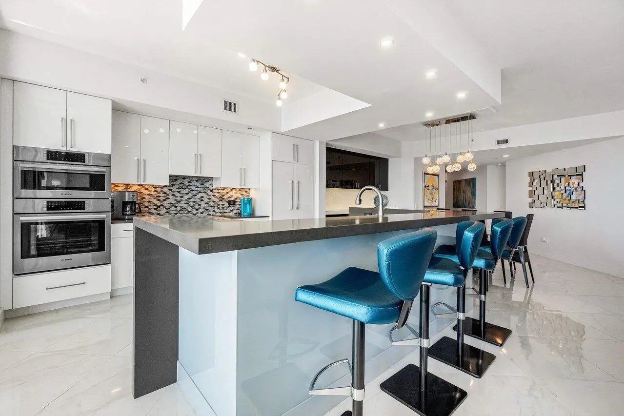 Rare 3BR end unit, completely remodeled and offered fully furnished! Amazing 23rd floor Intracoastal to ocean views! Bosch appliances & HVAC, Fisker & Peykal fridge, double ovens, induction stove, onyx bar w wine cooler. Italian porcelain floors, California closets. Spacious owners suite w his/her walk-in closets. Primary bath w/double vanity, jetted bath & water closet. corner unit/split floor plan, impact glass, semi-private elevator access. 24/7 manned gate, valet, new rooftop oasis w/pool, spa, BBQ areas, tennis, pickleball, bocce. Clubhouse, fitness, billiard room. assigned covered parking close to elevator, climate-controlled storage unit. Adjacent dry dock marina, no fixed bridges, minutes to ocean. Waterfront walking path w/gazebo with pet friendly walking path!