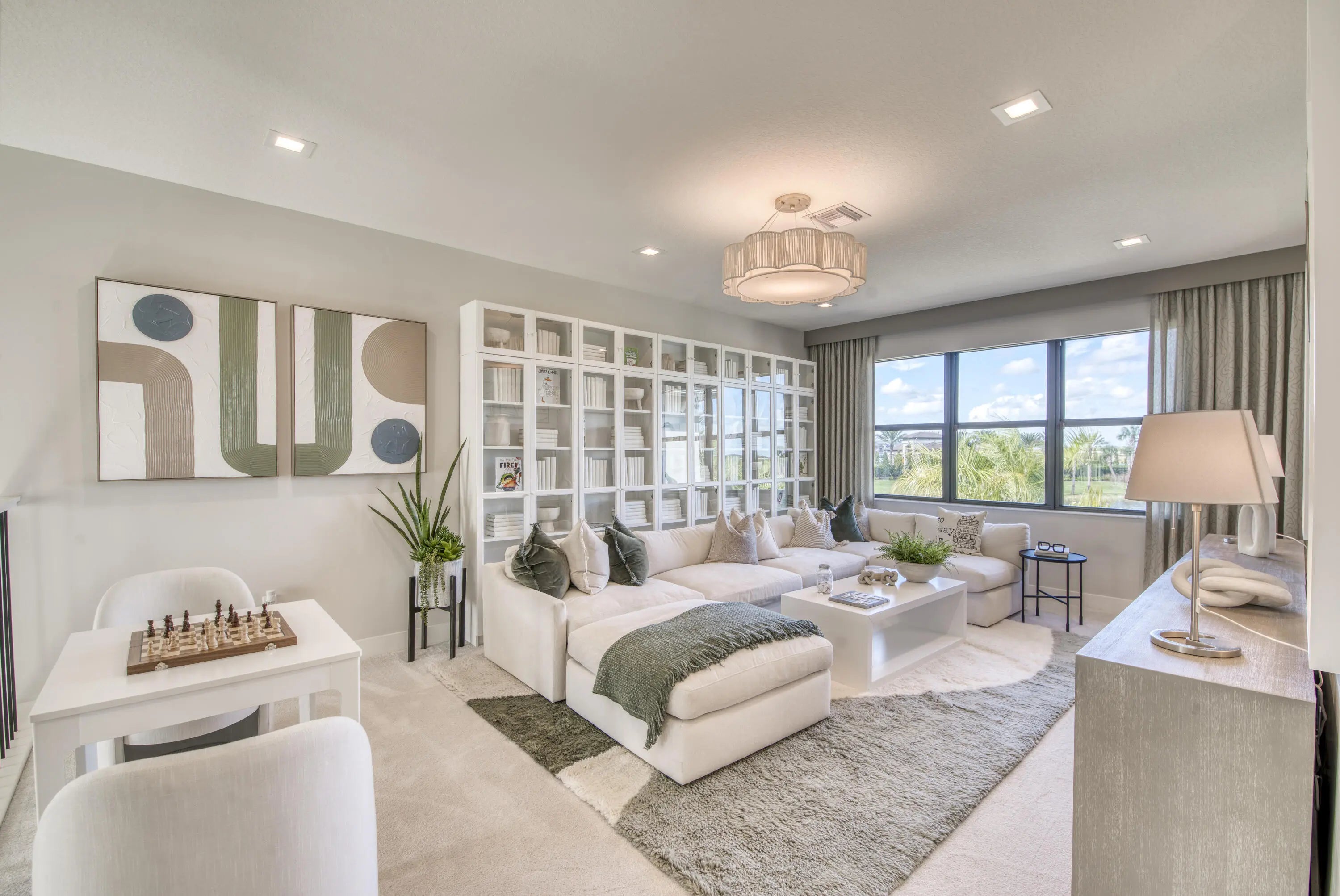 Experience modern luxury in this beautifully designed home located in Apex at Avenir. Offering 4 bedrooms, 5 bathrooms, and a three-car garage, this residence also features a private den and spacious loft, both on the second floor and ideal for work, relaxation, or additional living space. The gourmet kitchen is a true highlight, showcasing upgraded cabinetry, sleek quartz countertops with full backsplashes, premium stainless steel appliances, and a large island with additional seating, perfect for entertaining. The primary suite is conveniently located on the second floor for additional privacy and features dual walk-in closets and a spa-inspired en-suite bathroom with separate vanities, a dressing table, a soaking tub, and a walk-in shower. Upstairs, two spacious guest bedrooms provide privacy and style, each with its own unique character. Step outside to a covered patio with sparkling pool & spa with garden views. All of this is set within an exceptional lifestyle community, close to the best of Palm Beach County. Completion scheduled for October/November 2025