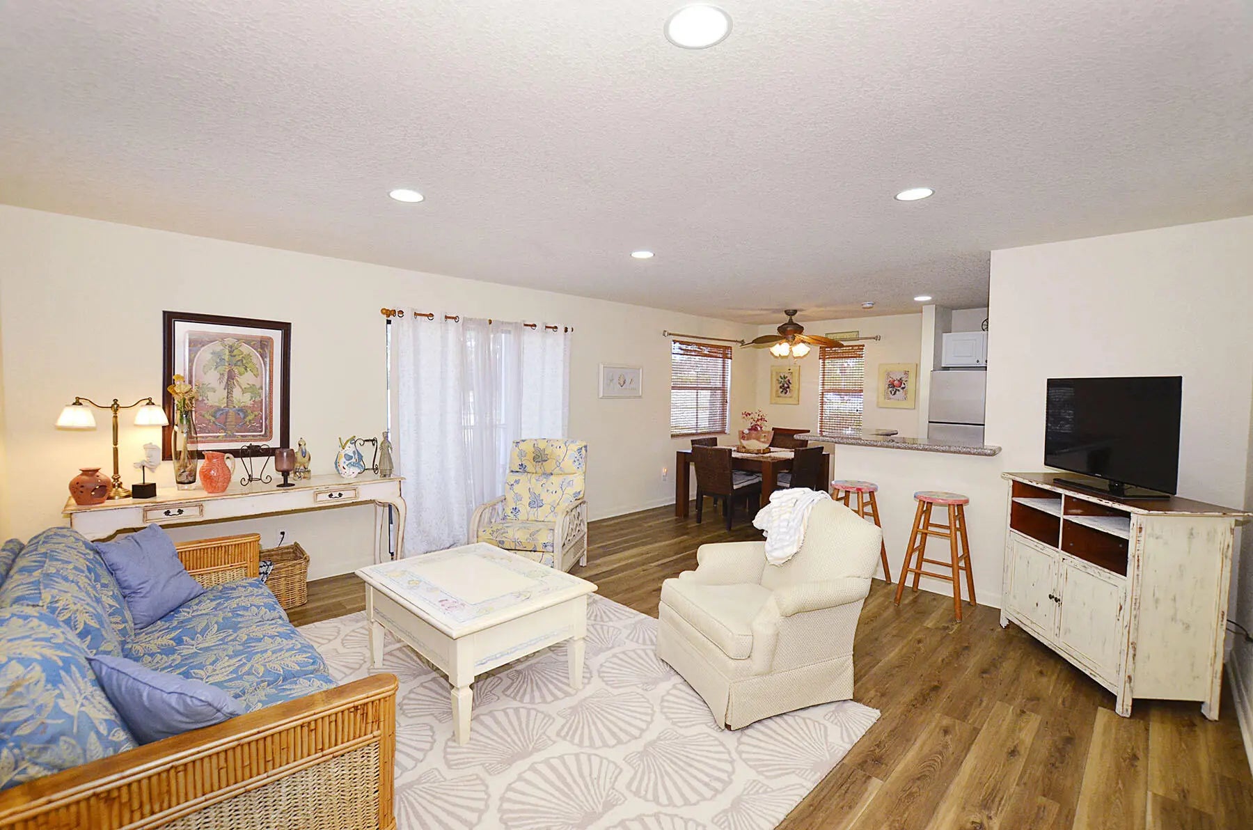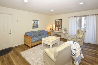 Great location in the gated community right next to pool and corner unit with extra windows bringing more light in and off major roads. All new wood laminate flooring throughout the unit. Turn key, just bring your toothbrushes!! Bottom floor with screened in patio. Beaches and great restaurants are minutes away!!