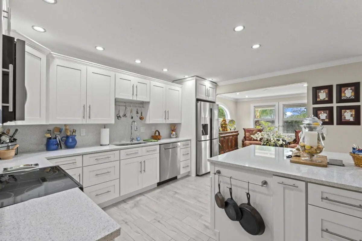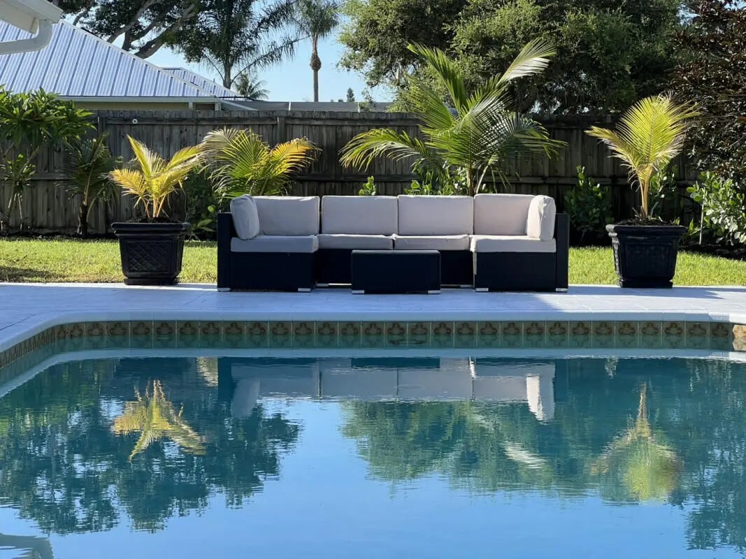 New Low Price - Nicest Golf Course Pool Home in Sandpiper - | NEWLY RESURFACED POOL | 2,519 Sq Ft | Golf Course Views | Two Primary Suites | Impact Glass | NO HOA | Welcome to the finest golf course home in Sandpiper Bay - a must-see tropical retreat perfectly positioned on the 6th hole of The Saints Golf Course with unmatched upgrades, privacy, and location. - This beautifully upgraded 3-bedroom, 3-bath pool home offers 2,519 sq ft of living space on a fully fenced 0.34-acre lot, with lush tropical landscaping and serene golf course frontage—all with no HOA restrictions. - Interior Highlights: Two spacious primary suites - ideal for multi-generational living or hosting guests. Chef's kitchen featuring custom cabinetry, quartz countertops, designer fixtures, premium appliances, and extensive tilework.- Spa-style master bathroom with a luxurious steam shower and new tankless water heateryour private wellness retreat.- Impact windows and doors throughout for peace of mind, energy efficiency, and insurance savings. - - Outdoor Living: Brand-new resurfaced pool - sparkling and ready for summer. Covered lanai and patio area, perfect for relaxing or entertaining. Expansive backyard with golf course views and complete privacy. - Prime Location: Minutes from Publix, Fresh Market, Walmart, Lowe's, Planet Fitness, and US-1, you'll enjoy exceptional convenience without sacrificing peace and seclusion. This is truly the most polished and upgraded golf course home in Sandpiper