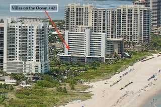 STELLAR VIEWS -Top Floor - IN VILLAS ON THE OCEAN! 1/1 updated unit. Unobstructed ocean views overlooking the widespread open gardens to the beach and ocean. Nothing but views from your screened it spacious balcony and master bedroom. Elevator, assigned parking, guest spaces. Private Beach access and community pool. Gated bldg. Unit is very convenient to the beach access.