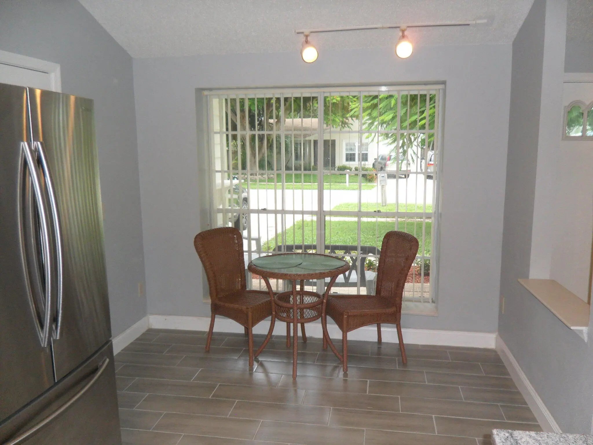Beautifully renovated 2-bed, 2-bath home with 1-car garage and no HOA fees. Features include a new kitchen (new appliances, cabinets, granite countertops) , new bathrooms, new tile floors, vaulted ceilings, eat-in kitchen, laundry area, and shutters. Enjoy a large, fenced backyard with patio, room for a pool, and a storage shed. New A/C installed in 2021. Conveniently located off 441/SR 7—just minutes from Wellington Mall, Palm Beach Airport, Turnpike, I-95, and more. Move-in ready with exciting potential!