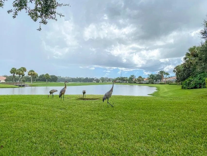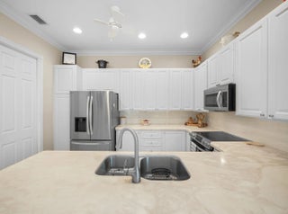 Welcome to this beautifully maintained 2 bedroom, 2 bath home with a spacious den and inviting great room, located in the sought-after, gated golf course community of The Florida Club. This residence features an upgraded kitchen with sleek finishes, tile flooring throughout, and built-in bookshelves for added character and storage. The split floorplan offers comfort and privacy, while the fenced backyard is perfect for pets or outdoor relaxation. Accordion shutters provide peace of mind during storm season, and the 2-car garage offers ample space for vehicles and storage. Enjoy resort-style living with a low HOA that includes full lawn and landscape care, cable TV, a heated community pool, and tennis/pickleball courts. The Florida Club boasts a scenic pay-as-you-play 18-hole golf course—