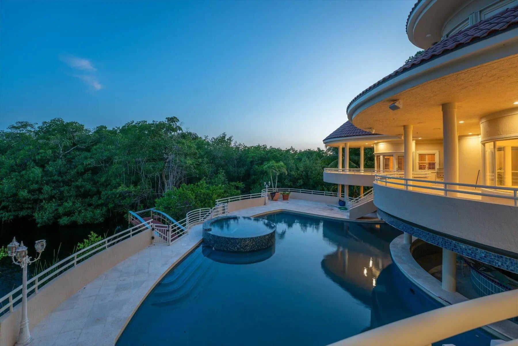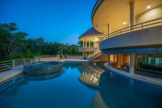 2.5 acre waterfront estate in High Point, Sewalls Point, FL. Nestled on a barrier island between St Lucie & Indian River Lagoon, this 3story CBS home offers soaring ceilings, natural light, w/beautiful views. 4 bdrm, 5.5 baths, den, spa room w/sauna, elevator that goes to rooftop terrace. Private 3rd floor master suite w/sitting area, wet bar, his/her cedar closets, spa bath w/steam shower jacuzzi & bidet. Tropical oasis pool w/slide, hot tub, outdoor bar, pond, dock w/boat lift 35 ft boat & room for jet skis. Designed for luxury living & grand entertaining. This one-of-a-kind estate is perfect for a buyer with a vision to create their own luxury private sanctuary.