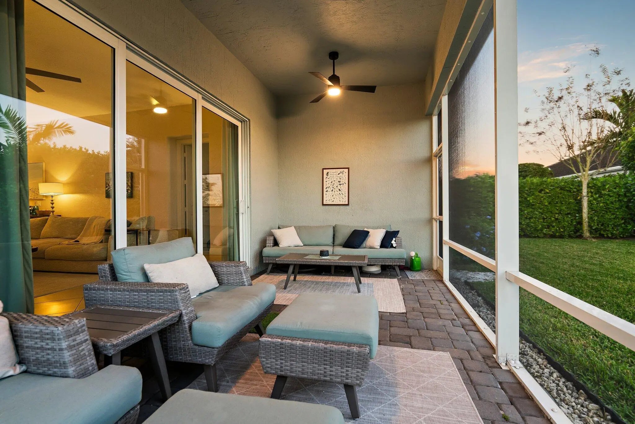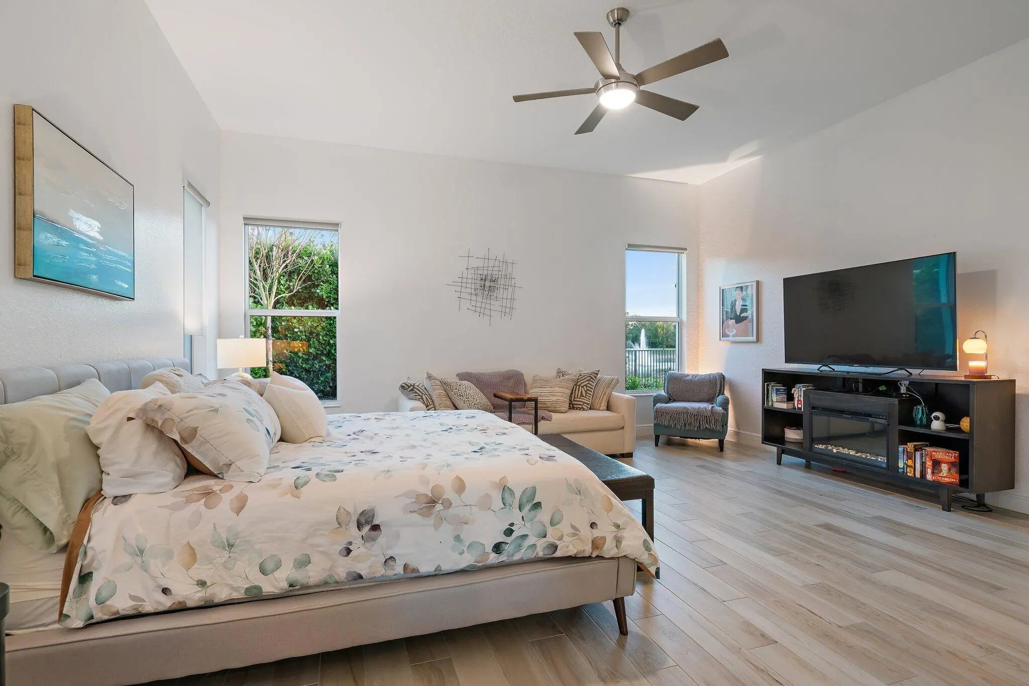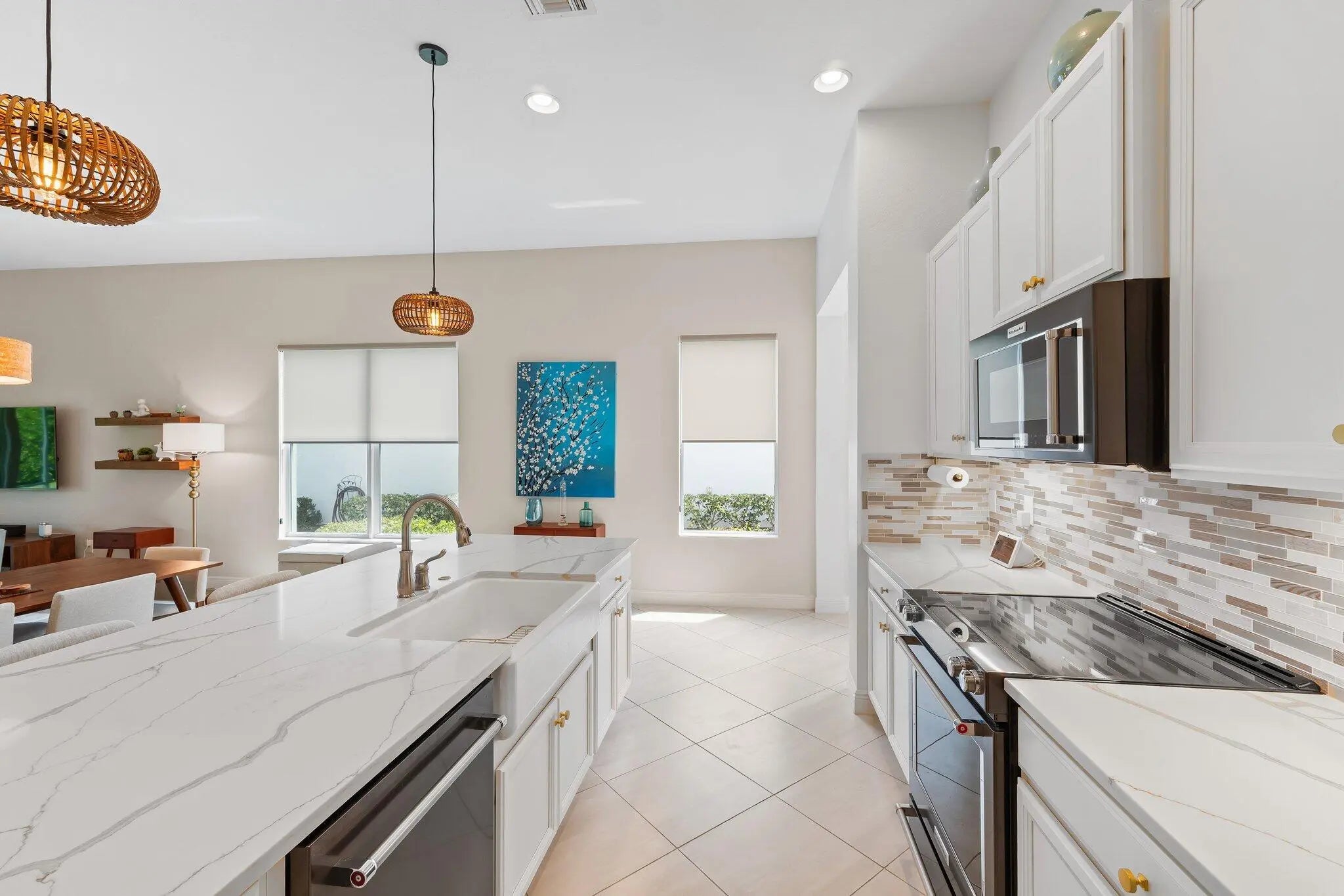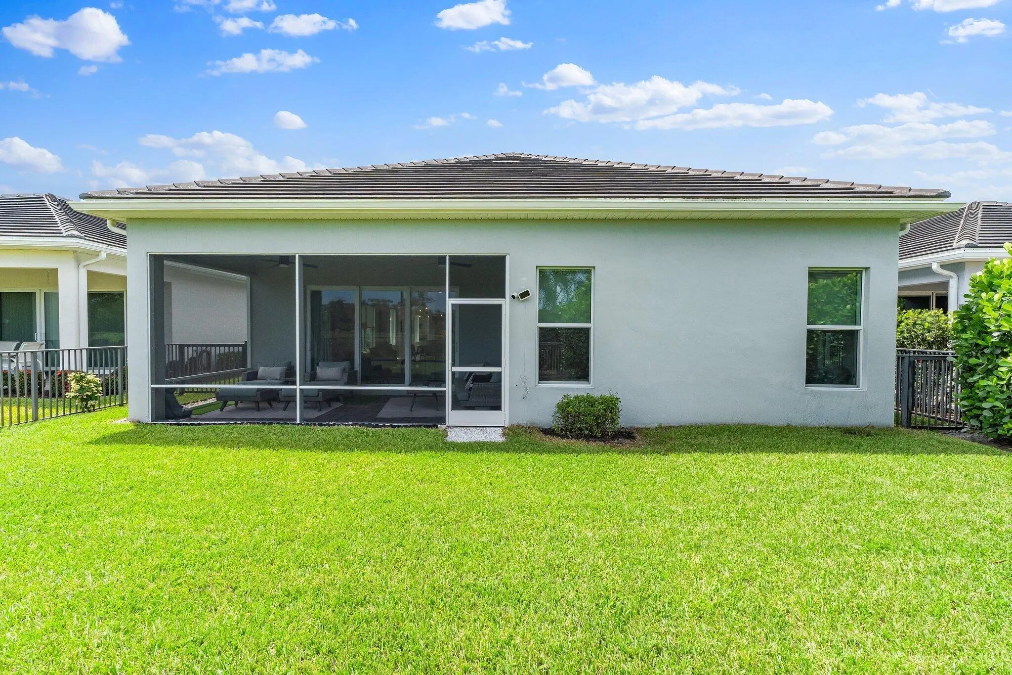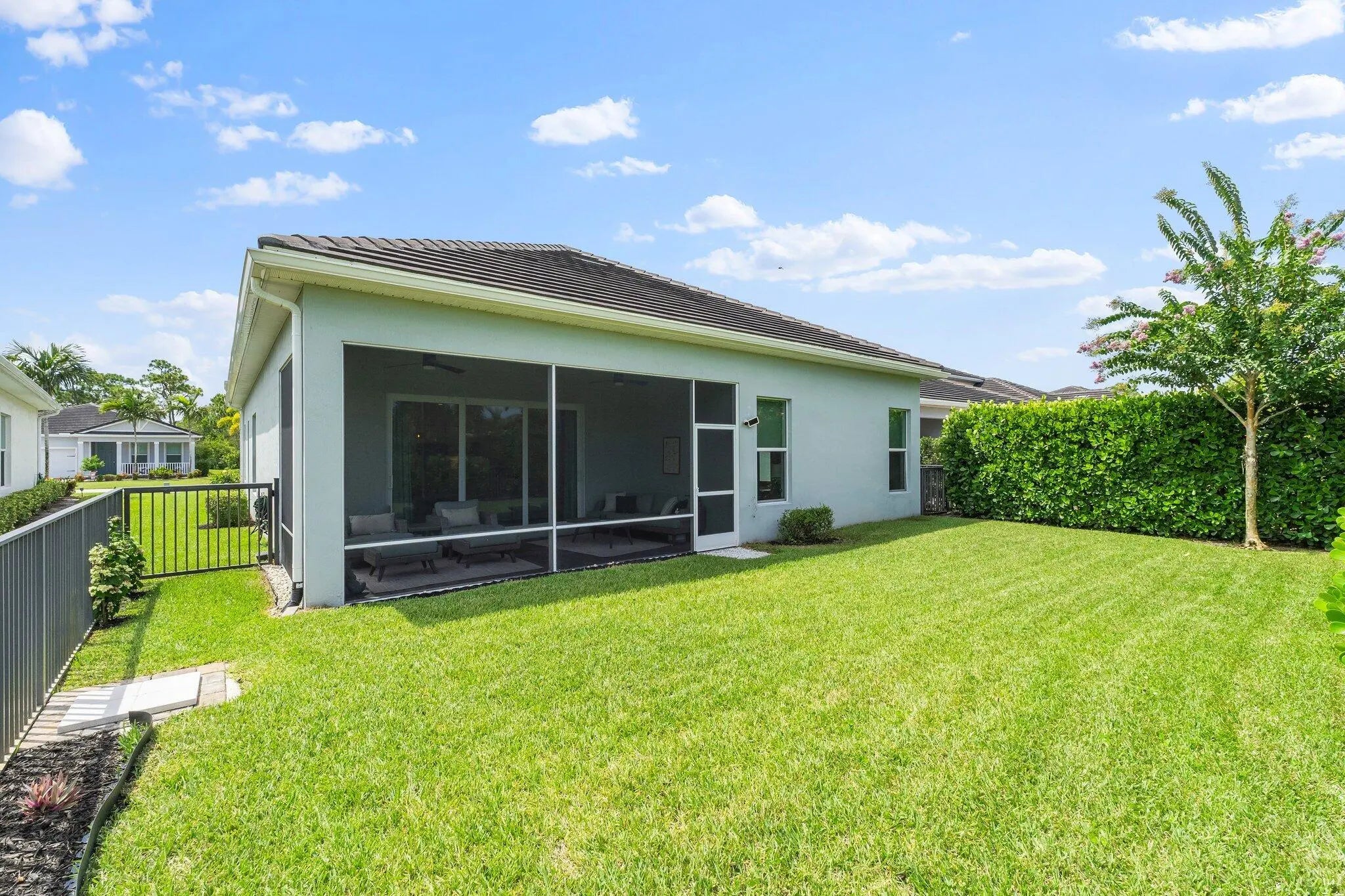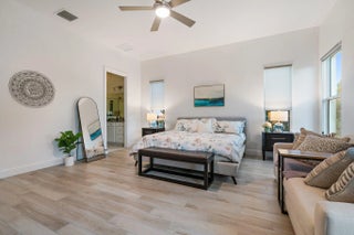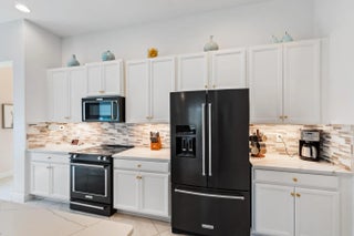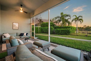 This is the beautiful Antigua Model home. One of the most sought after floor plans in Banyan Bay with 3 Bedrooms and 3 full baths, all on one floor! The Calcutta Quartz Kitchen Counters, Black Stainless Steel appliances and Farmhouse Sink make this home a standout! You'll also love the Custom Features throughout, including Shades & Blinds, Lighting, Shelving, Ceramic Tile flooring and more! A new Lennox AC with UV light was installed in October 2024. The fully fenced yard is great for kids and pets, and the screened in Lanai provides beautiful lake views. There's plenty of room for a pool, but the community pool is wonderful, so a great community with sidewalks, a private boat launch for kayaking or paddle boarding.