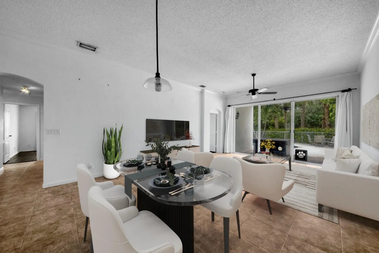 Welcome to this beautifully maintained home in a gated community just off 441—where convenience meets comfort! Step into a spacious living and dining area that flows seamlessly into the kitchen, featuring white cabinetry, a double farmhouse sink, and a custom range hood. The adjacent family room offers a cozy gathering space, accented by ceiling fans throughout the home for year-round comfort. The home includes a dedicated laundry room and a 2-car garage, plus a newer washer and dryer for added convenience. The guest bathroom is absolutely gorgeous, boasting a tub/shower combo with stylish finishes. The primary suite is a true retreat, offering tray ceilings, dual walk-in closets, a soaking tub, and a separate shower. Outdoors, relax or entertain in your private backyard oasis complete with a sparkling pool, hot tub, new pool heater, and a covered lanai with a cooling fan and a nesting 3-panel sliding glass door. The property also features a canal view, a newer roof, and a whole-house generator for peace of mind. Natural gas is available, too! Enjoy being just minutes from Southern Blvd and all the shopping and dining you could needless than 5 minutes away!