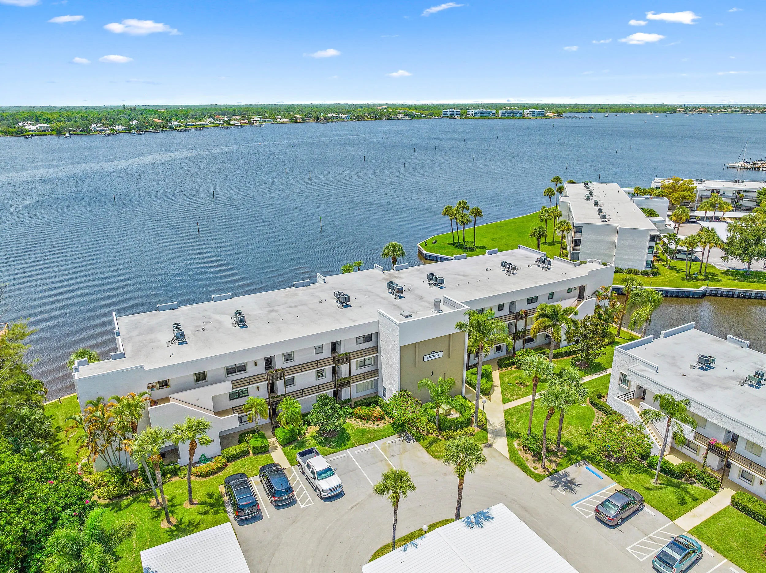 Enjoy stunning WIDE WATER VIEWS all winter long in this beautifully updated riverfront condo, in the desirable Circle Bay Yacht Club. This 2-bedroom, 2-bath unit features an updated kitchen with custom cabinetry, granite countertops, and sleek laminate wood flooring that flows seamlessly throughout the living areas. Both bathrooms have been tastefully renovated, offering modern finishes. Start your mornings with coffee or wind down in the evenings with a cocktail on the spacious screened patio, where you'll take in panoramic views of the tranquil waters. Minutes from Downtown Stuart's charming shops, dining, and entertainment venues. Circle Bay Yacht Club is more than just a place to live—it's a lifestyle! Residents enjoy resort-style amenities including a heated pool, hot tub, sauna, clubhouse, shuffleboard, bocce courts, and a covered outdoor dining area with BBQ grills. The community also offers boat slips (as available), making it ideal for boating enthusiasts. The building is equipped with an elevator for added convenience.