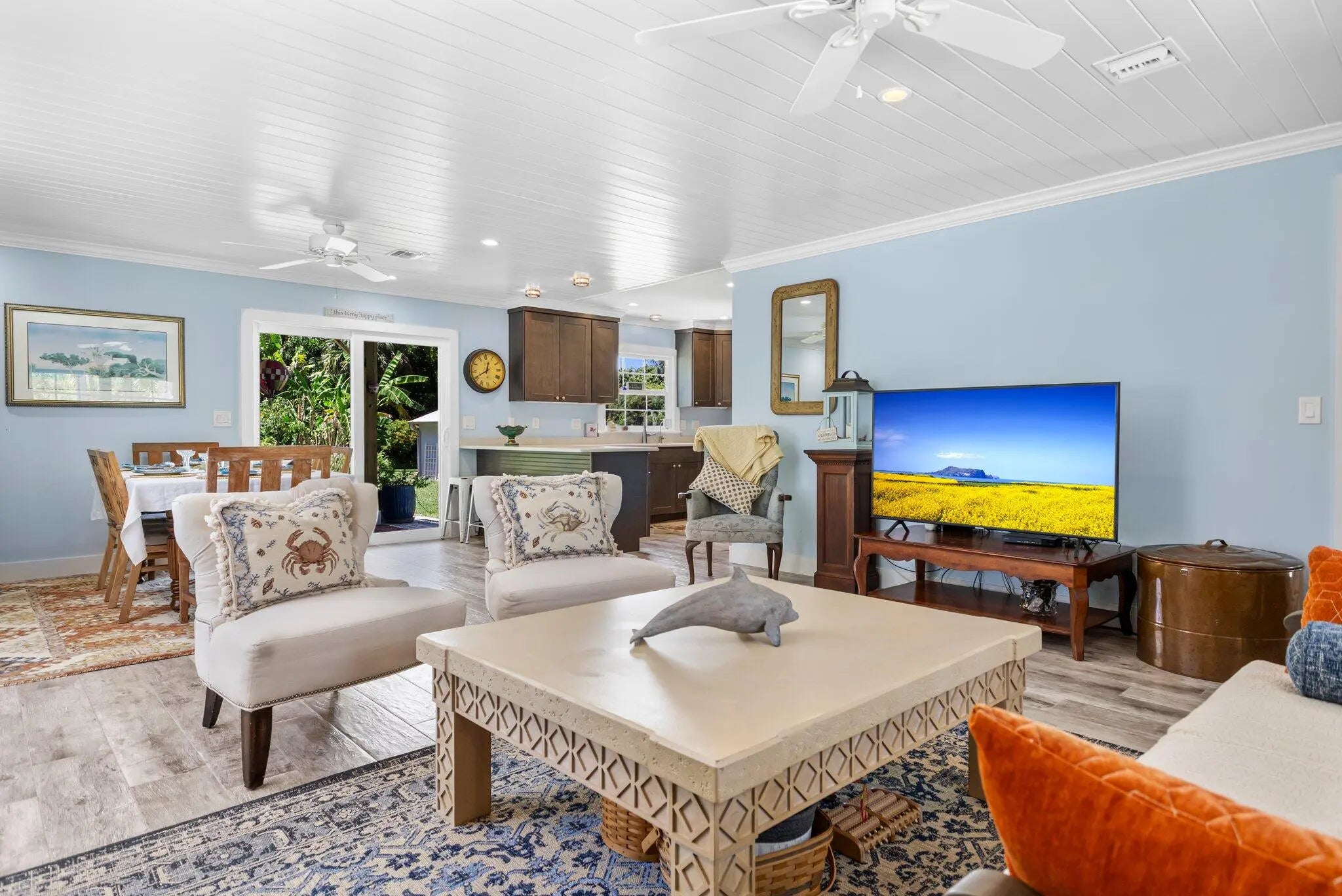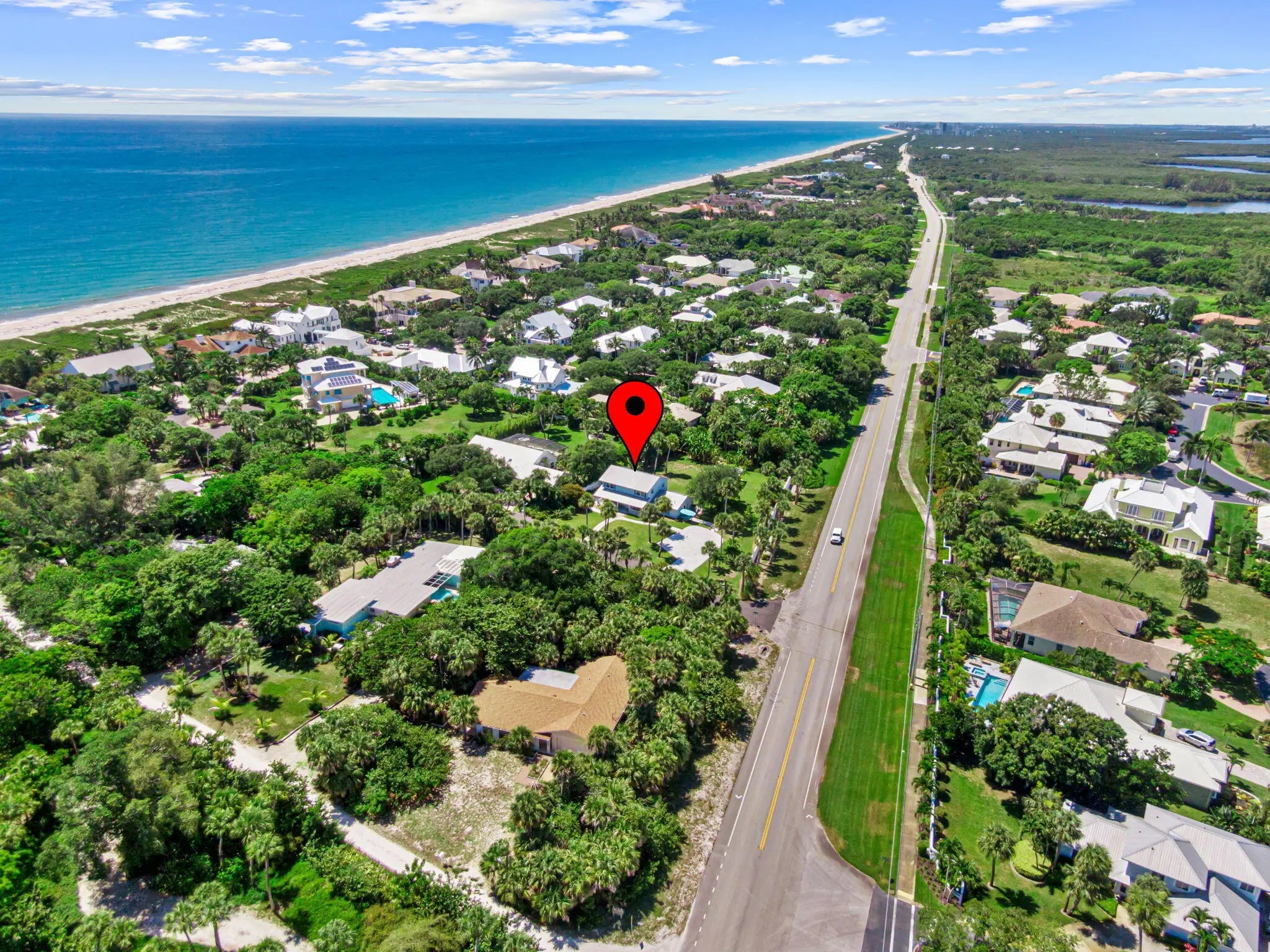 Welcome to your new tropical oasis. Nestled in an intimate 6-lot subdivision, East of A1A , this spacious 4-bedroom, 3-bathroom two-story home offers the perfect blend of comfort, style, and coastal charm. House completely renovated in 2018, master bedroom en suite upstairs, metal roof, enjoy sunsets on your expansive deck (16x11). Just a short drive to local shops, dining, theater and more. Short walk to the neighborhood's pristine beach. No HOA restrictions for rentals.