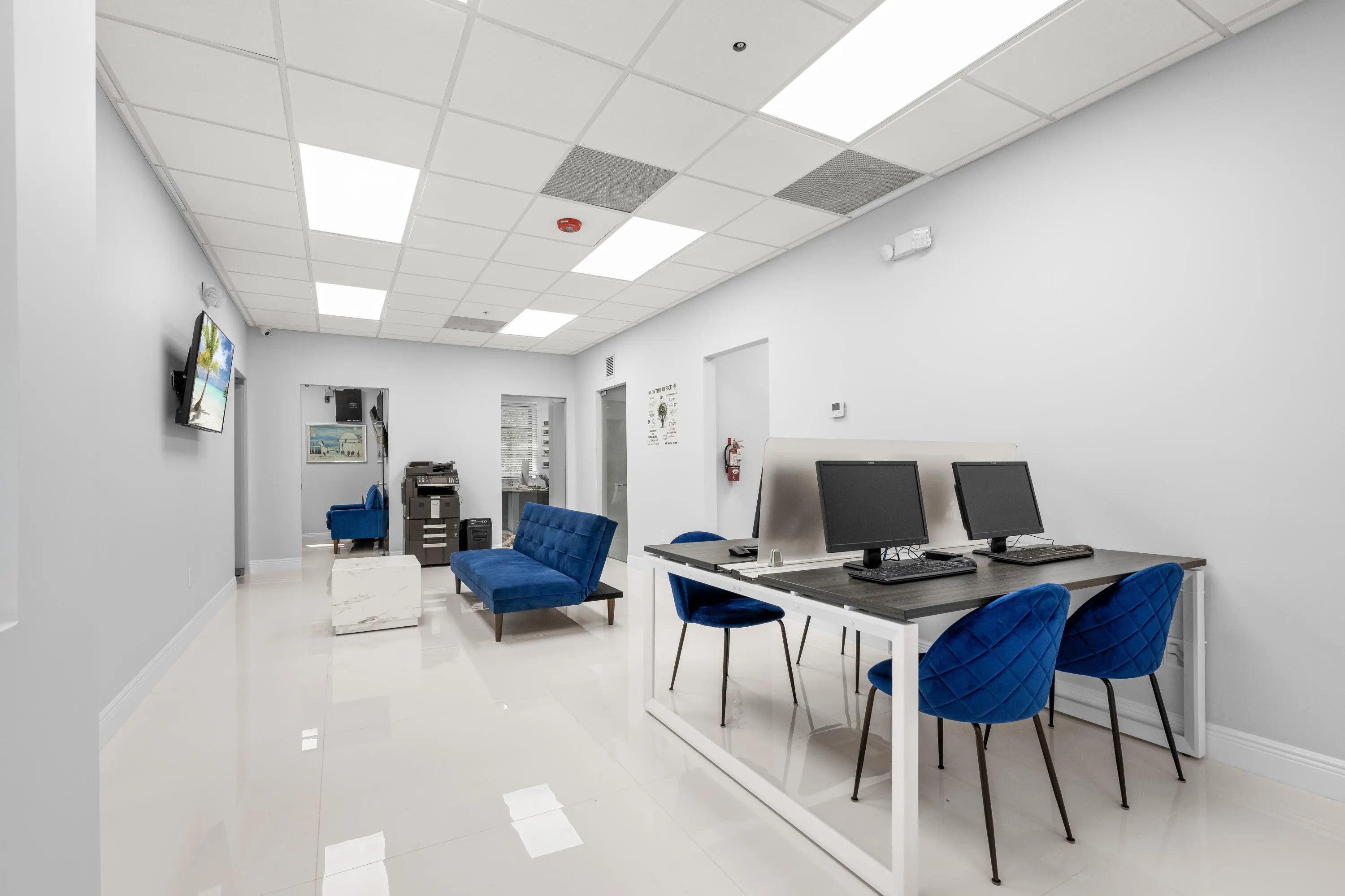 Owner Financing Available. Elevate your workday in this sophisticated boutique office rental designed with both style and function in mind. This turnkey suite offers four private executive offices, a polished conference room, and an inviting open collaboration space—all thoughtfully furnished with upscale touches. With two well-appointed bathrooms and a refined atmosphere, this space delivers a professional, private, and luxurious working environment that makes a statement the moment you walk in.