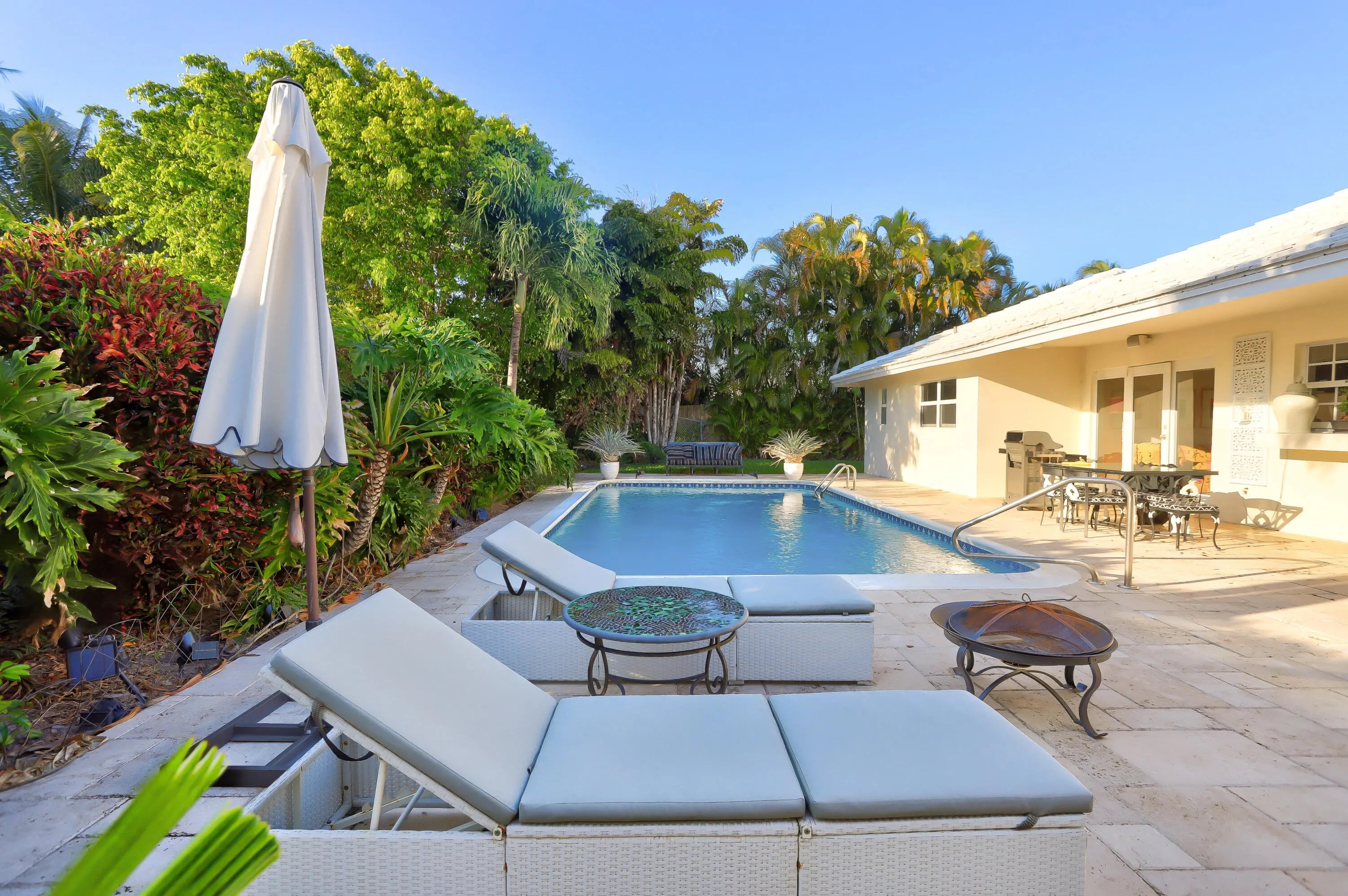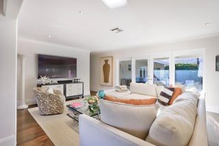 Newly renovated sprawling ranch style home with circular driveway and 2 car garage on corner lot. 4 beds, 4.5 baths. Sparkling Pool & Lanai. Gourmet kitchen. Wood & tile floors throughout. Fabulous Master Bedroom with huge bath. One other en-suite bedroom with sliders out to pool.MINUTES TO BEACH!