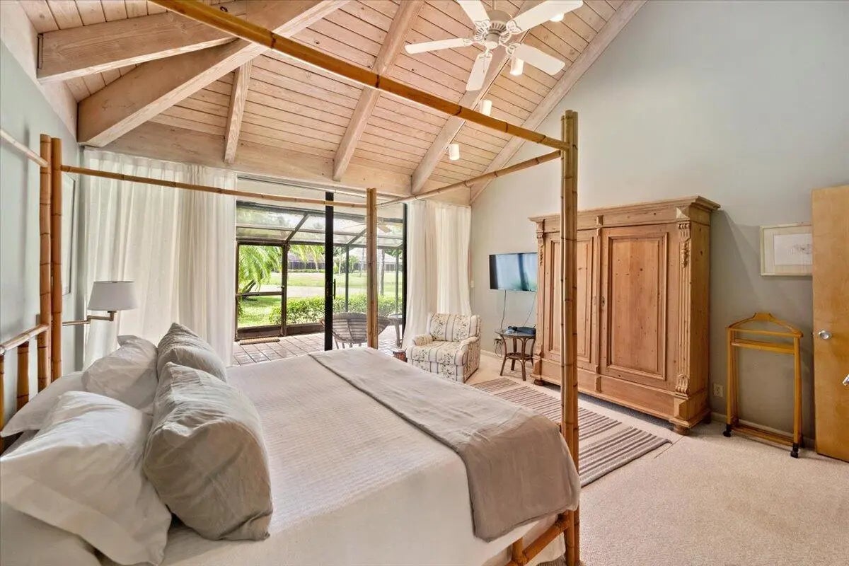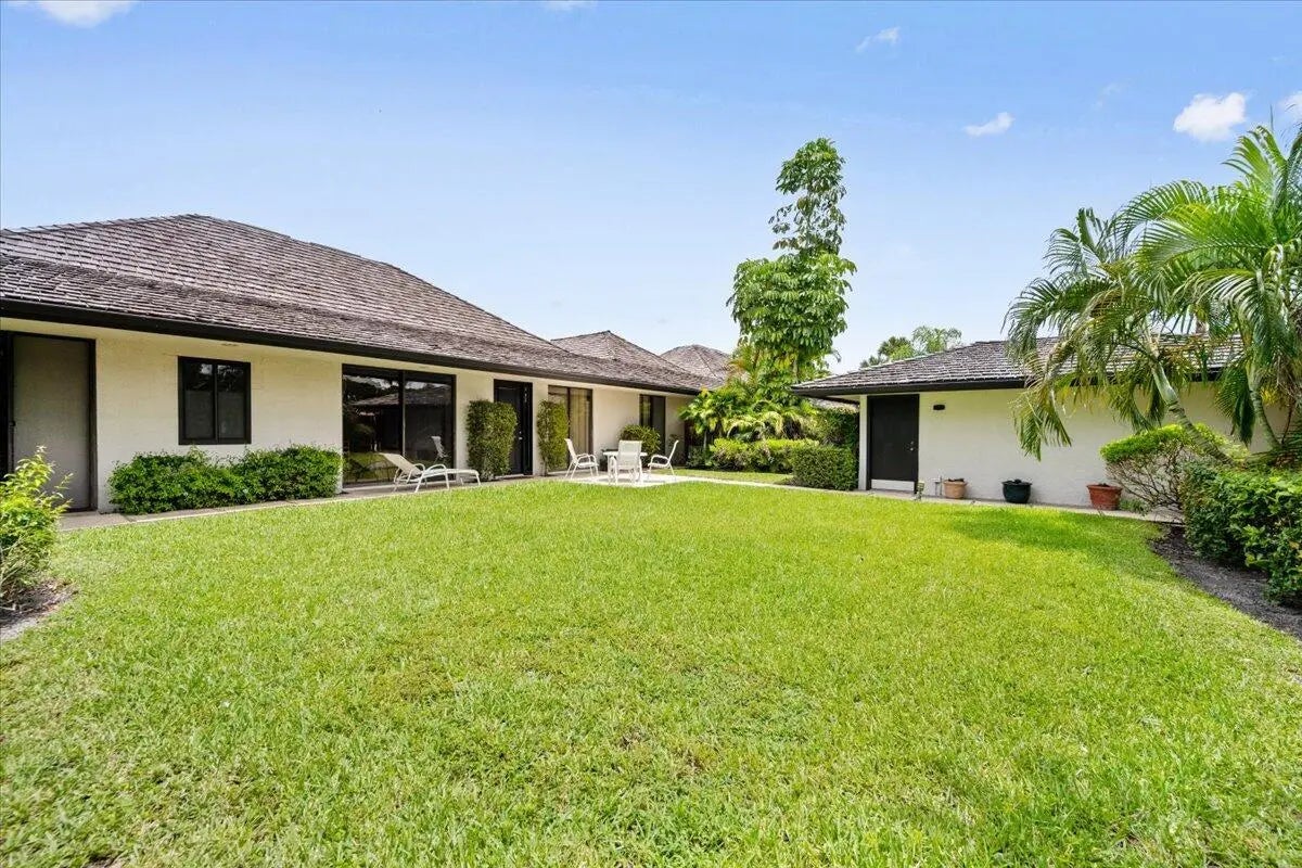 Set in the coveted Palm Beach Polo & Country Club, this bungalow offers the privacy and the convenience of a prime location. The 3‑bed, 3‑bath residence showcases soaring wood ceilings with exposed beams, an airy open‑plan layout, and French doors that spill into the patio and serene interior courtyard. A waterfront backdrop frames every gathering space, while a garage adds sought‑after practicality. Bring your finishing touches and transform this rare find into your own Palm Beach Polo oasis.