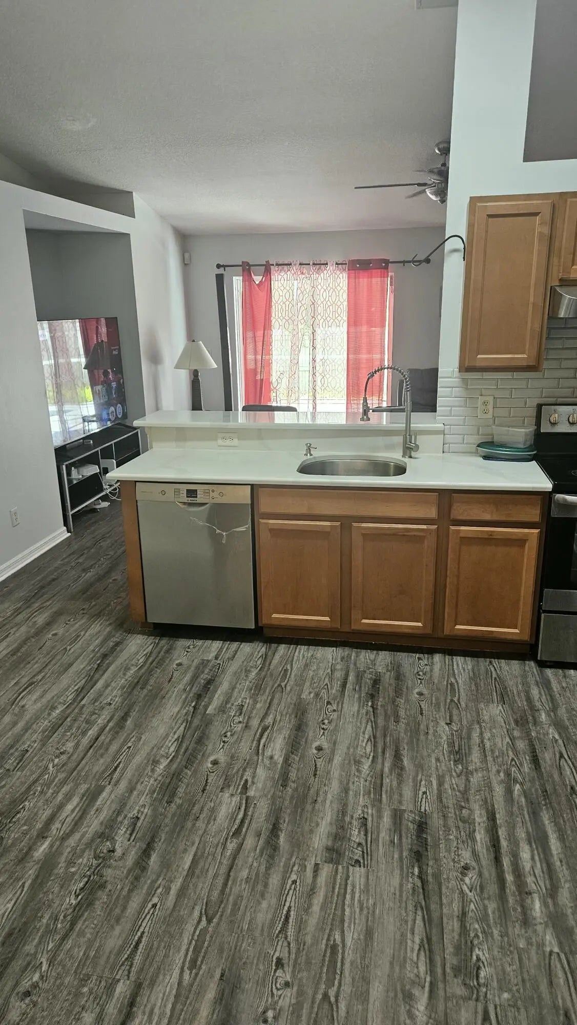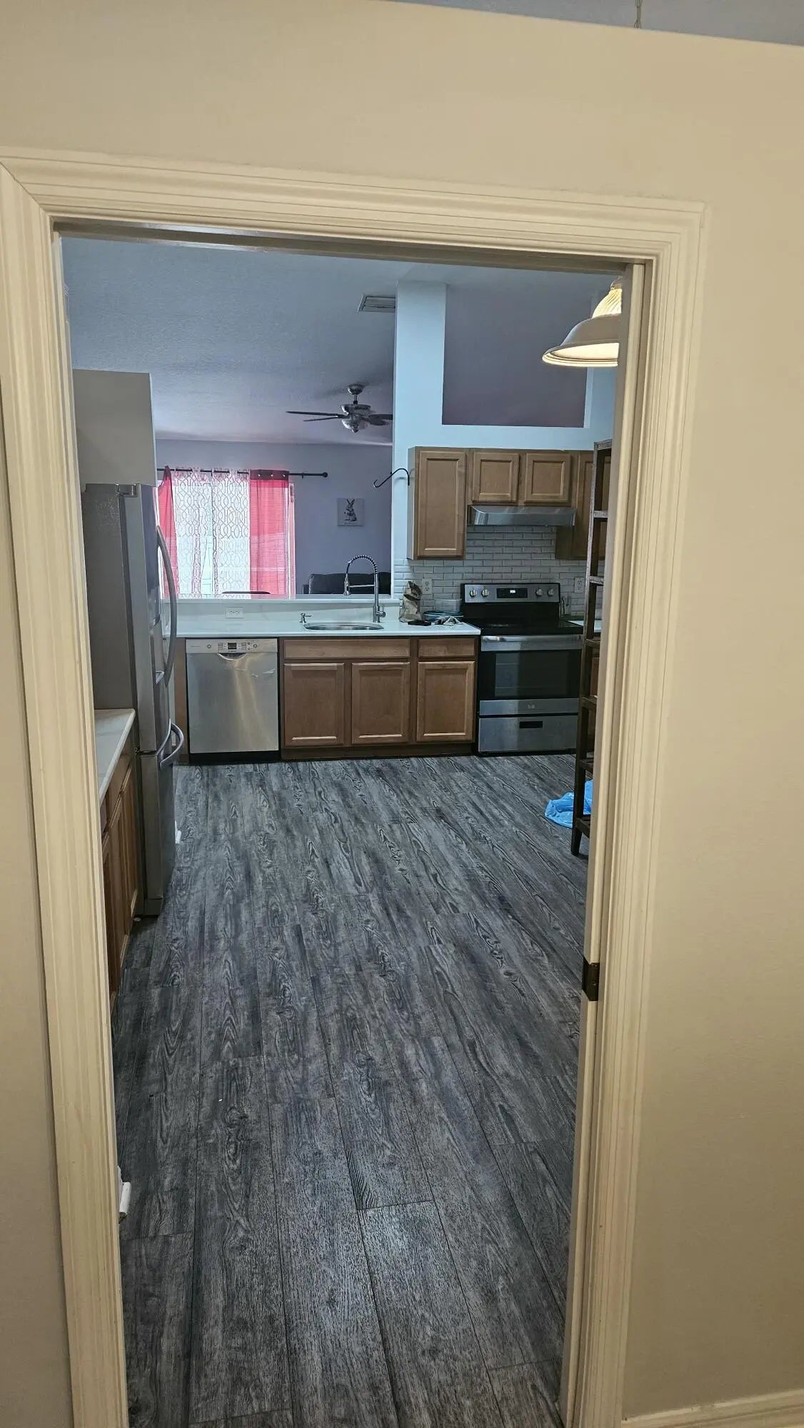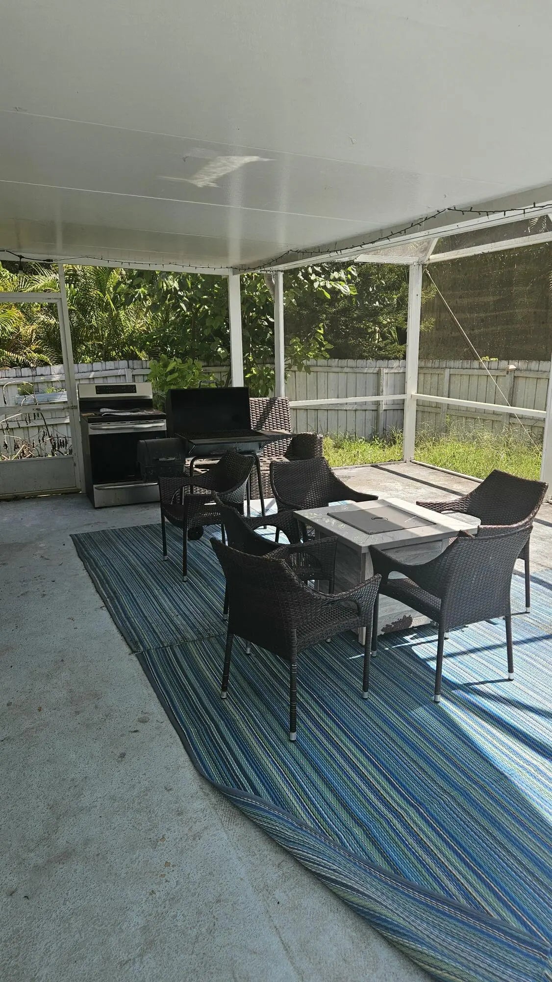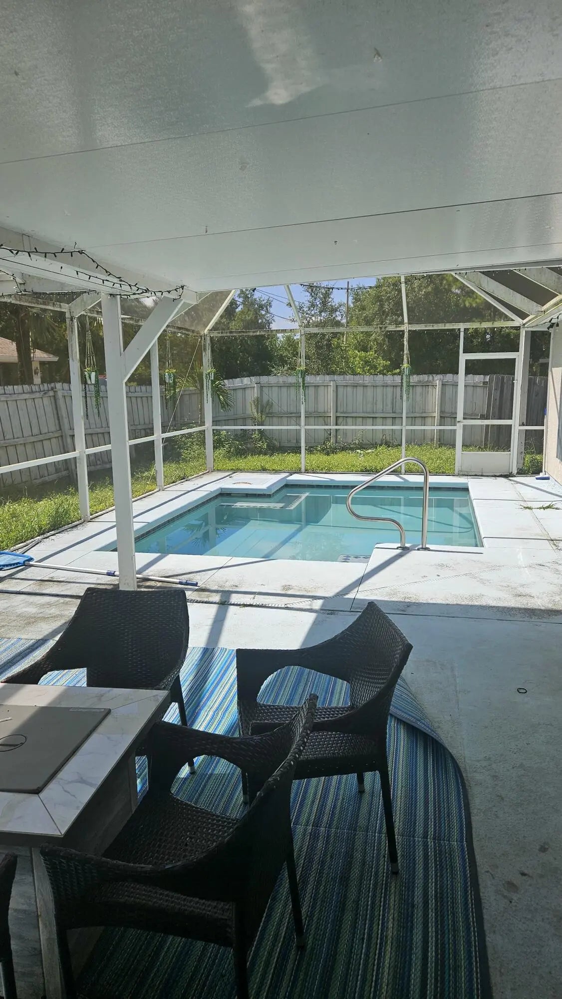 Spacious 3-bed/2-bath with a saltwater pool in Vero Lake Estates! Kitchen offers SS Appliances with w/convection oven & induction stove, quartz countertops with white tile backsplash, and under-cabinet lighting. The kitchen counter accommodates barstool seating. Home provides a formal living/dining area and split bedrooms. Large primary room with a garden tub, walk-in shower, and double sinks/vanity. Large, screened lanai with saltwater pool and fenced yard for additional privacy/pets. Air conditioning unit 2017 w/UV light for eliminating mold/mildew/mildew/viruses/bacteria and reducing odors.