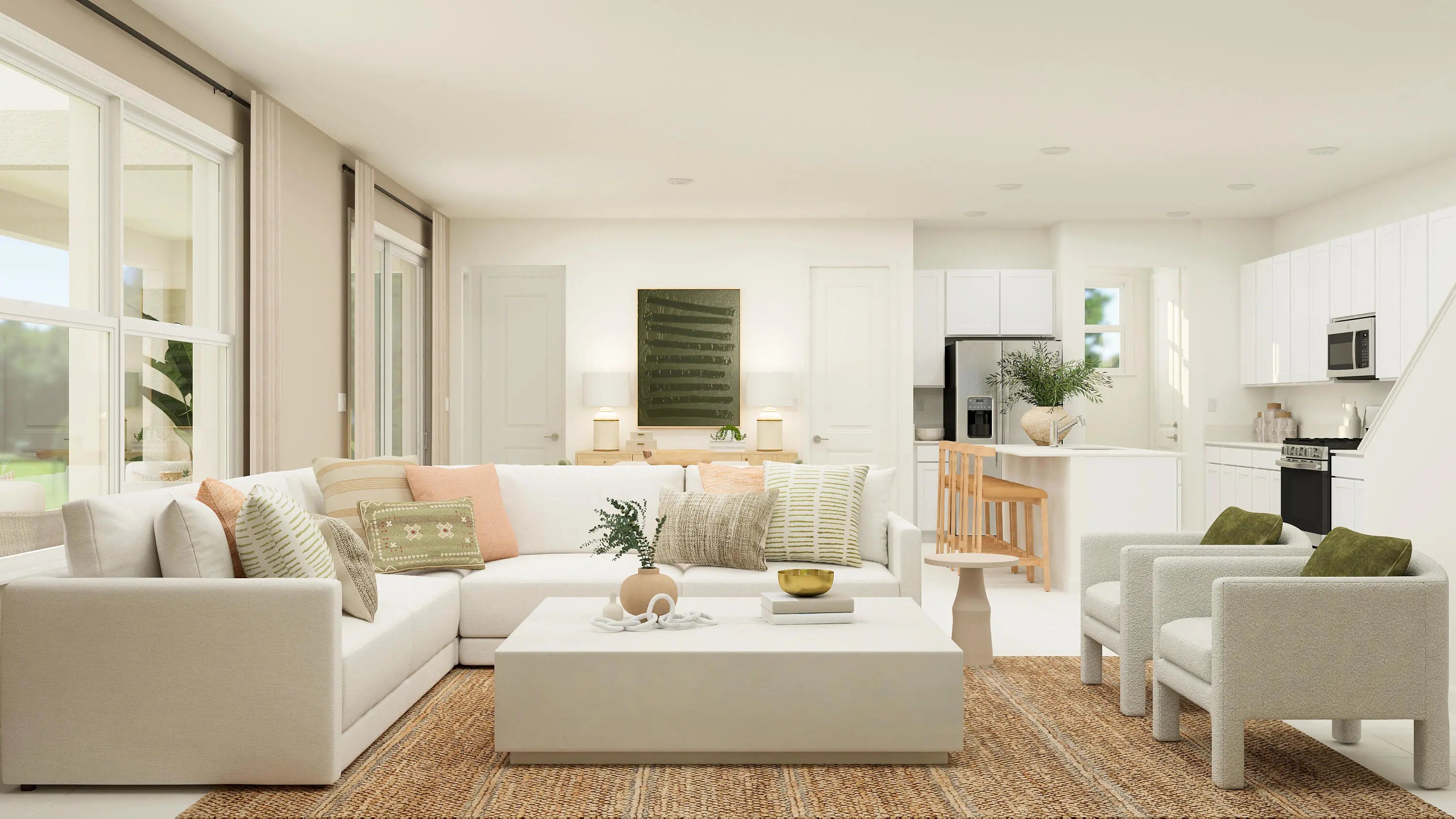 Discover resort-style living in this stunning 4-bedroom, 3.5-bath home in the award-winning Arden community of Loxahatchee. The first floor of this new two-story home is host to an inviting open-concept floorplan with access to a covered lanai for effortless entertaining, and a study is easily accessible off the foyer. Upstairs, four bedrooms surround a versatile loft, including the luxe owner's suite with a spa-inspired bathroom and walk-in closet. Photos are for illustrative purposes only.