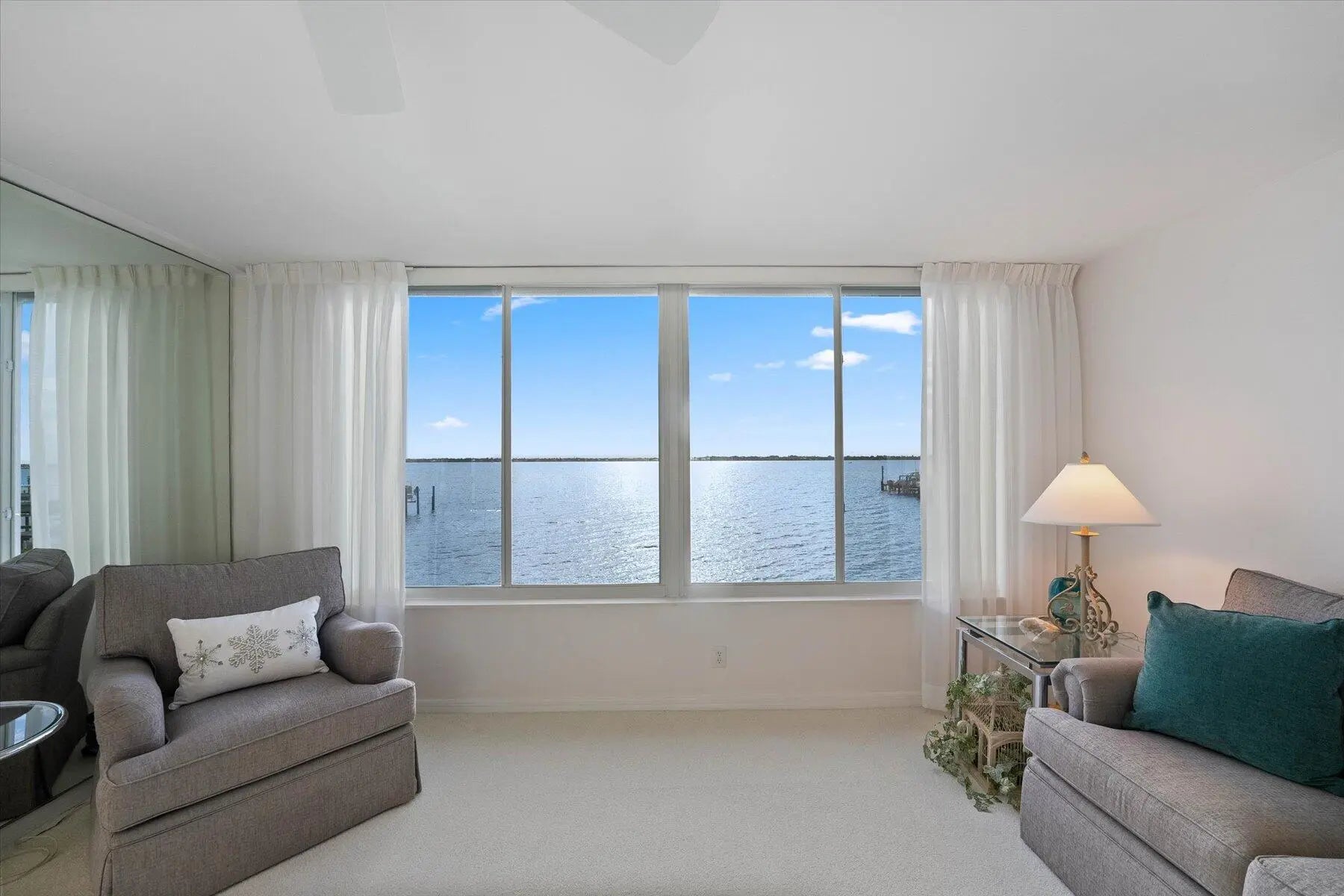 Skyline lights Discover *Panoramic ''Corner'' SW Views with spectacular sunsets and Skyline Dr lights! Completely renovated from ceilings to floors! Electric Rolldown Shutters! Community has completed near new roof! 2 pools, one on ocean & one on river! 2 clubhouses! Water & Sewer included! Tennis! Insurance included! Pickleball! Billiards! Everything but electric included. This is perfection...shows like a stunning model.