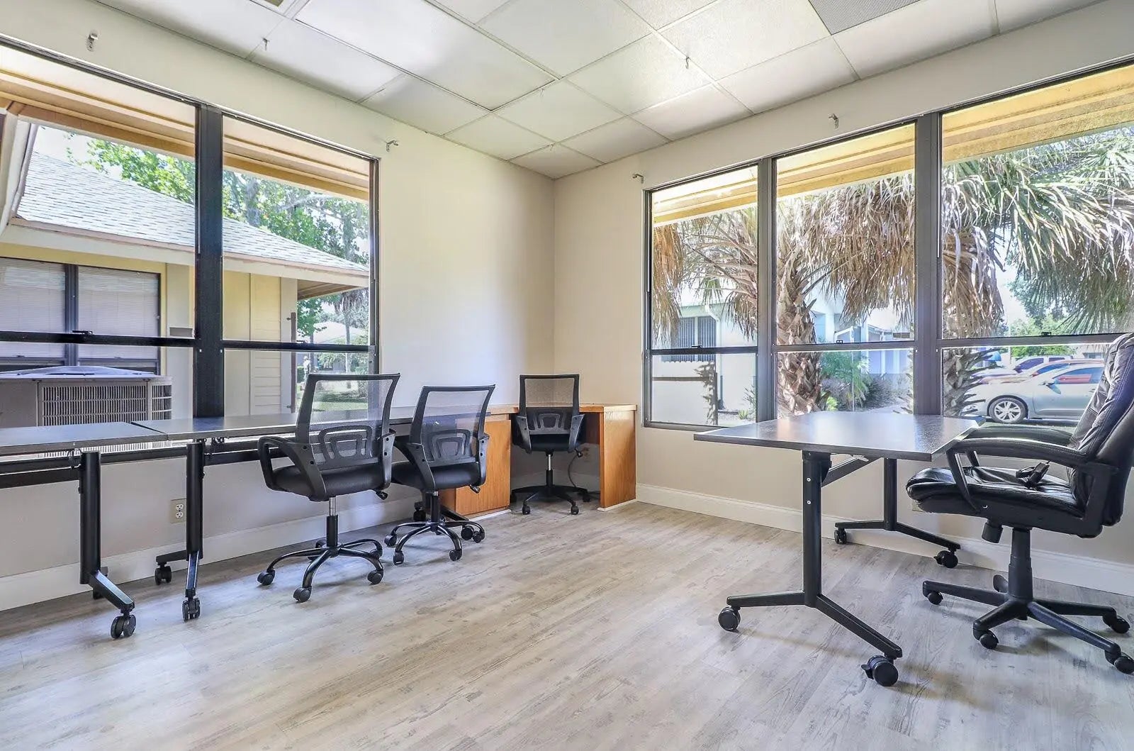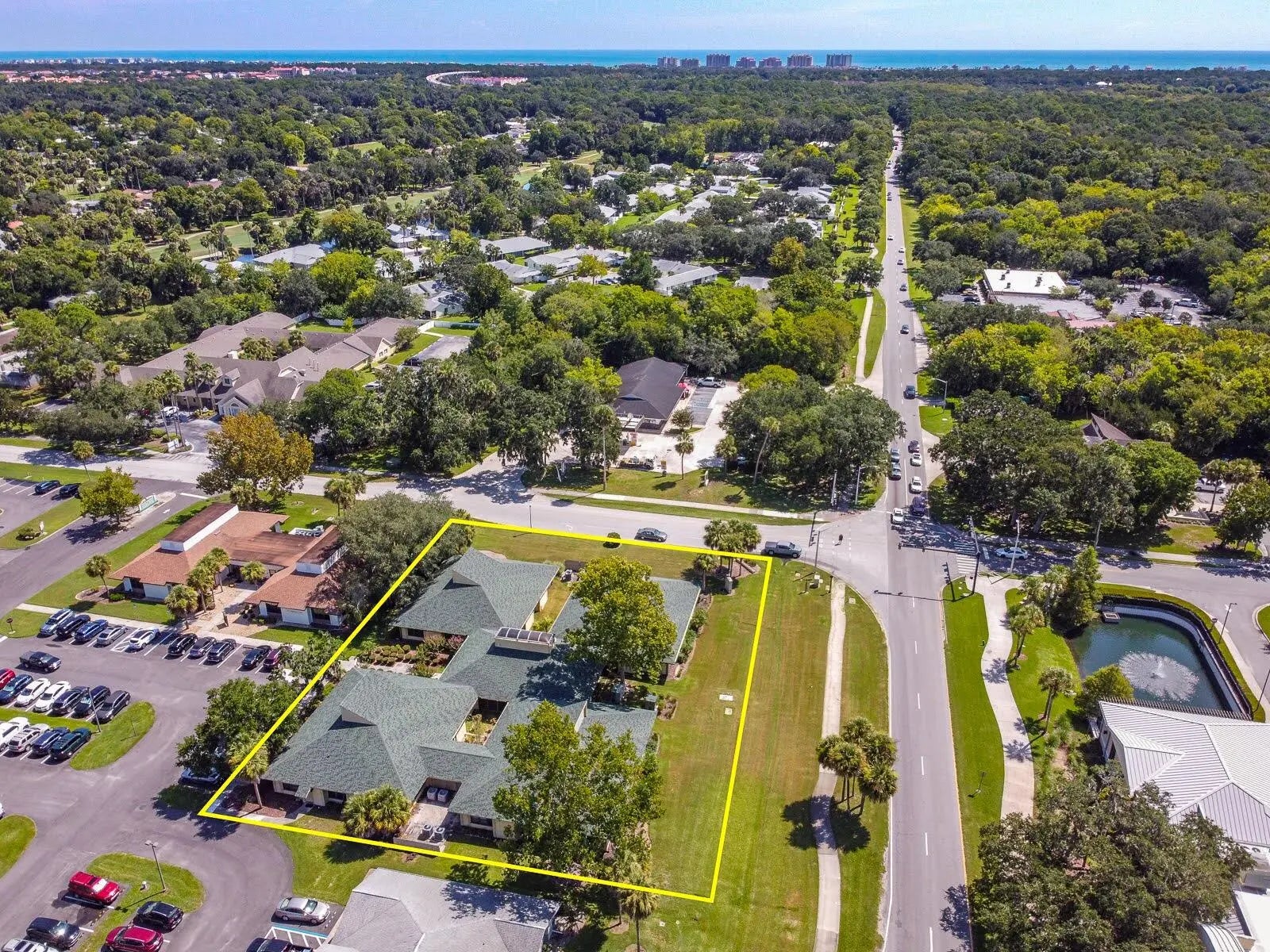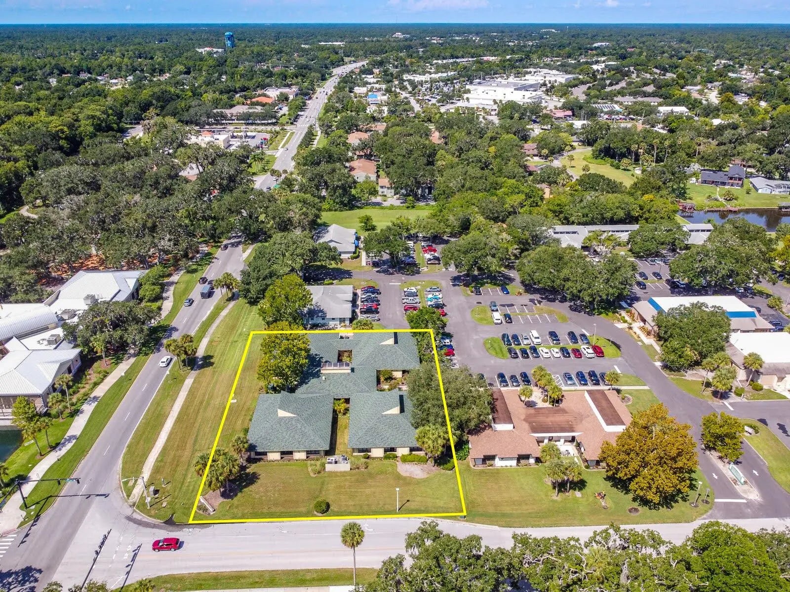 This 14,788sf office quad in the vibrant Palm Harbor Office Park consists of 4 buildings with a center hub located right on the Palm Coast Parkway - just 1 mile east of I-95. Its corner location provides great exposure to the most travelled artery in Palm Coast in a thriving business district near major shopping centers and other amenities. Over $600,000 in improvements including: NEW 40-year roof (2021-22), slab-to-roof renovation of Pod 3 (2022), three NEW A/C units (2024-25), and a new parking lot. Tons of natural light throughout the building with large windows that can be opened for fresh air. Designed to accommodate a diverse range of businesses.