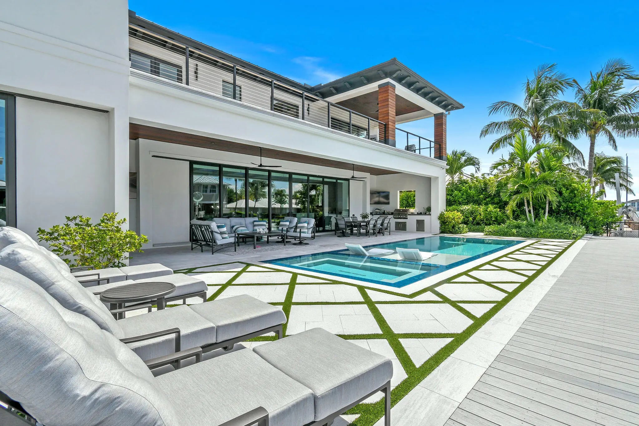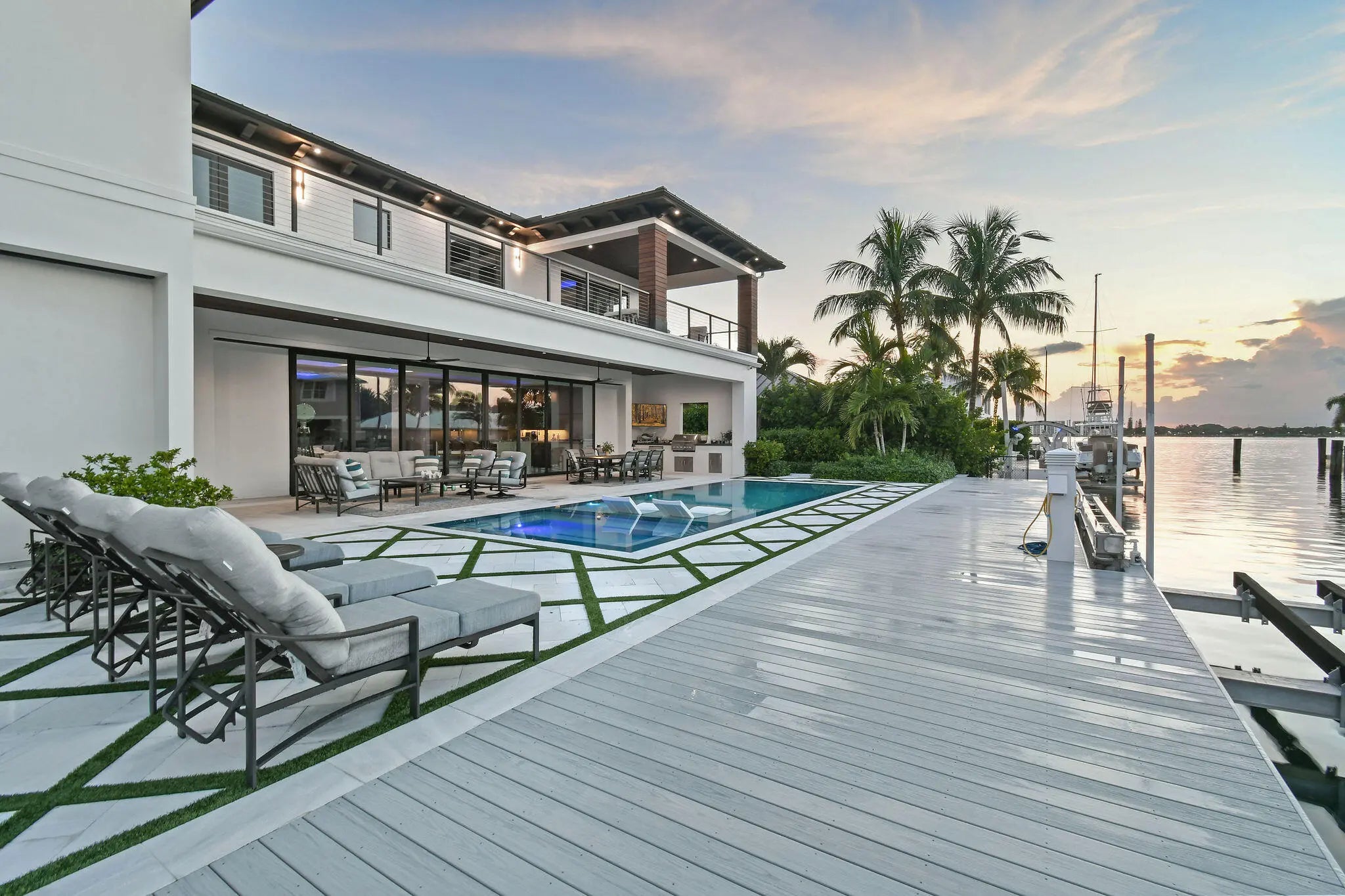 Experience the ultimate in coastal living with this custom-built residence, perfectly situated on a deep-water canal with 100 feet of waterfront and direct ocean access. Located in the prestigious Palm Beach Isles community on Singer Island, this home is surrounded by exceptional properties and just moments from pristine beaches, fine dining, and luxury spas. Designed for boaters and entertainers alike, 1060 Fairview Lane features a brand-new dock, new 40,000 lb boat lift, an ultra-sleek Euro-edge pool and spa, and an expansive covered patio with a full summer kitchen. The generous floor plan spans over 6,500 square feet of living space and offers 5 bedrooms, including upper and lower primary suite options, plus 7 full baths, a 6th bedroom/club room, and a private study. Whole house water filtration system with reverse osmosis. Dual temperature-controlled garages provide lift-ready volume and abundant storage for boating gear. Smart home automation controls security, sound, pool systems, and more, allowing you to enjoy effortless luxury. A rare opportunity to own a waterfront retreat blending modern sophistication with exceptional boating access in one of Palm Beach County's most desirable neighborhoods.