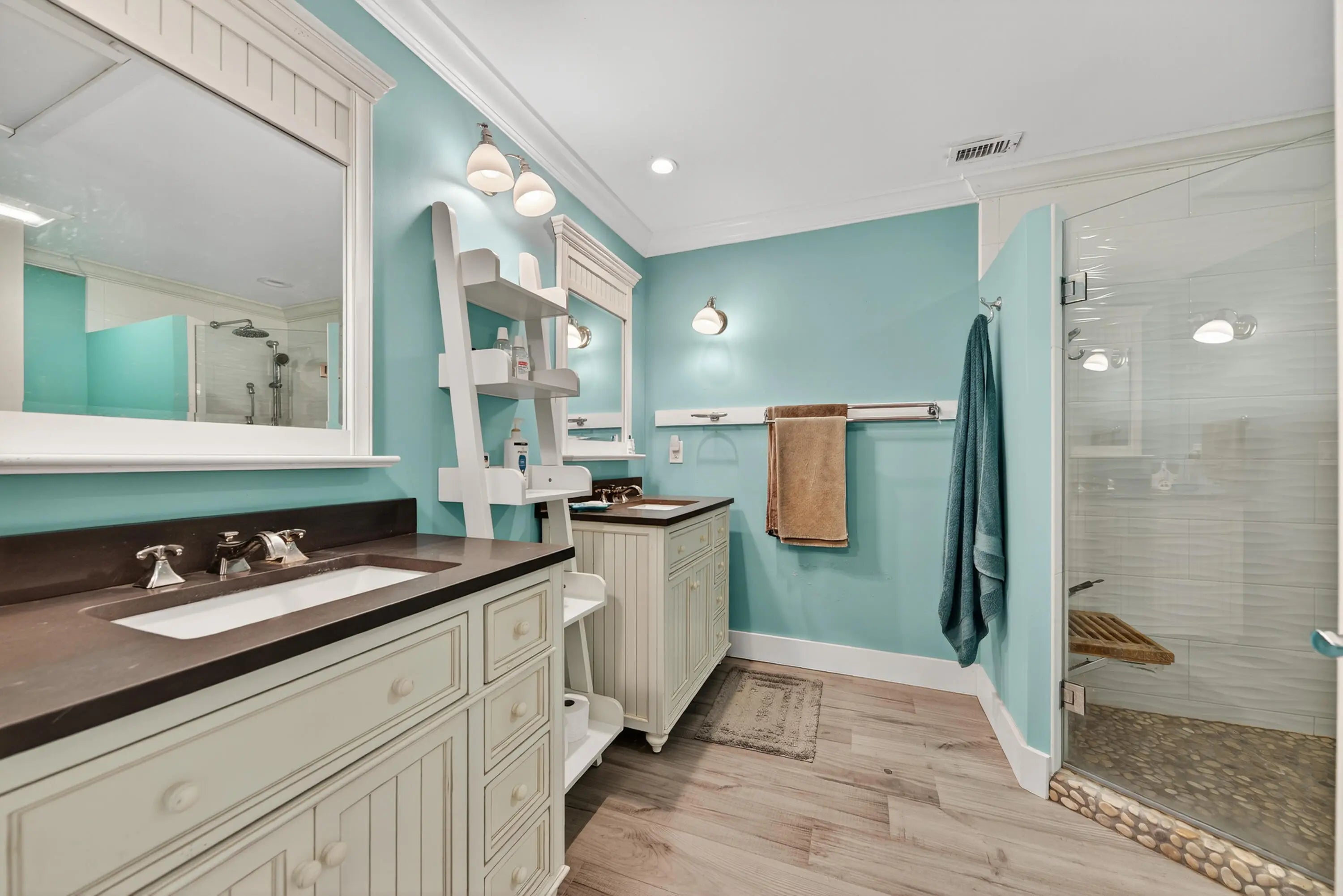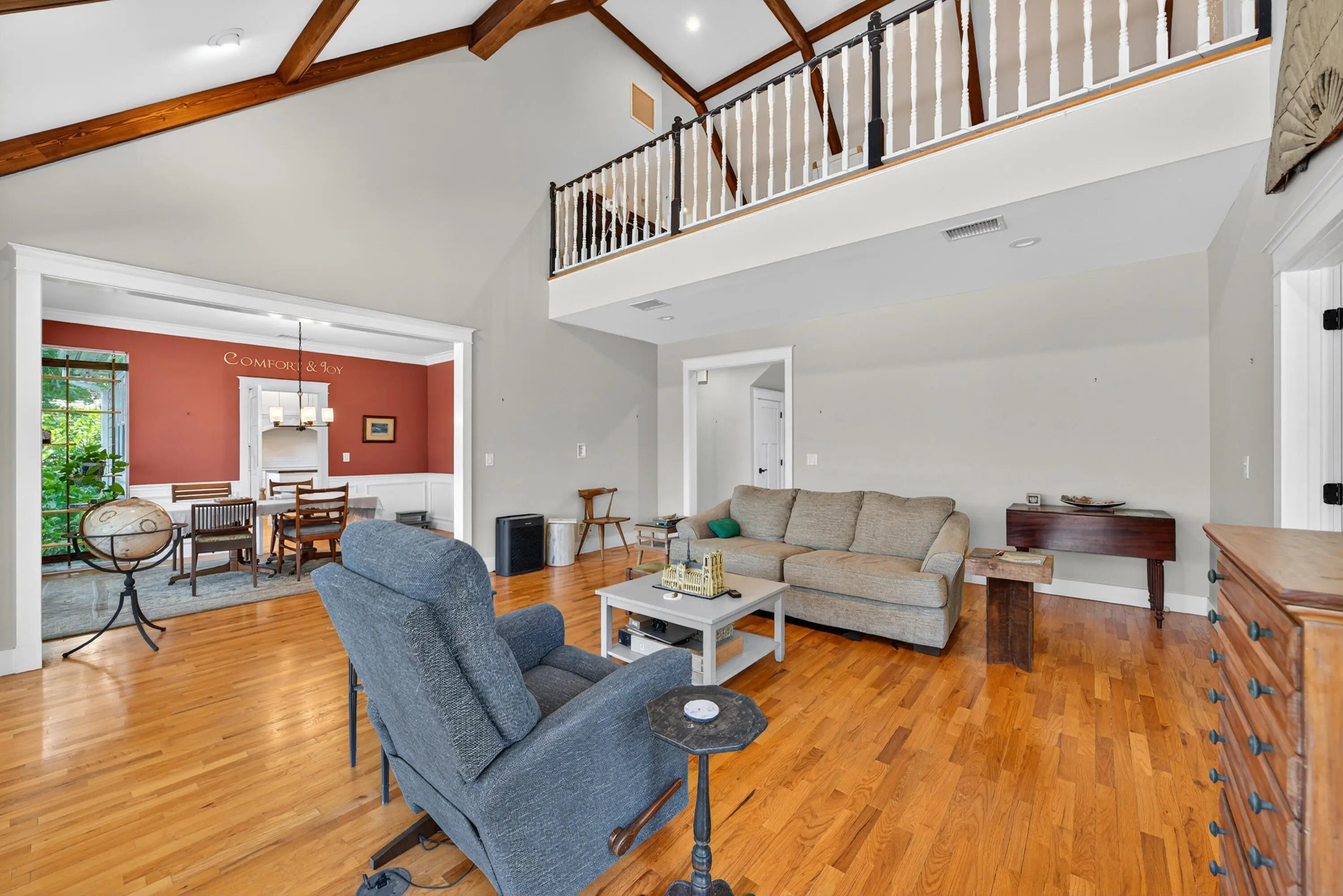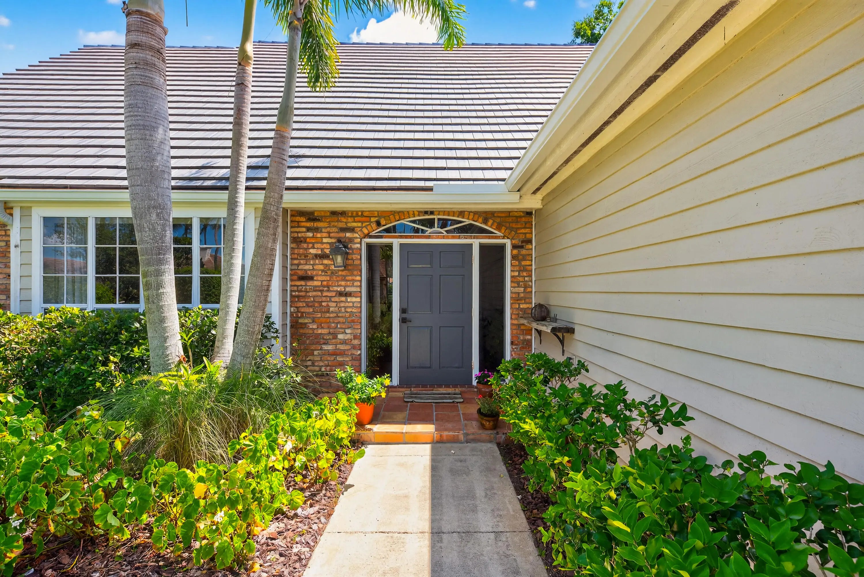 Nestled in the picturesque, tree-lined community of River Ridge, this inviting home blends comfort, style, and convenience. Set on a peaceful lake and just minutes from the beach, it offers a relaxed Florida lifestyle in a private, gated setting. Brand new 2025 Roof. The primary suite is located on the main floor and features plantation shutters, a large walk-in closet plus a built-in closet, and a spacious master bath. It also connects to a versatile flex room that works perfectly as an office, nursery, or guest space. The living room is filled with natural light with soaring ceilings, creating an open, welcoming atmosphere for everyday living or entertaining. Sliding doors lead to the covered patio and pool area—an ideal spot for sunsets and entertaining. SEE MORE... The kitchen combines beauty and function with white shaker cabinetry, warm wood floors, soft coastal tones, and eye-catching pendant lighting. Designed for gatherings big or small, it flows easily into the dining and living spaces. Upstairs, you'll find two comfortable bedrooms, a stylish bathroom, and a central loft that can serve as a TV room, playroom, or lounge. Throughout the home, thoughtful details such as solid wood doors, trim work, and plenty of built-in storage show the attention to quality. Additional highlights include a breakfast nook, half bath, formal dining room, and an attached two-car garage. River Ridge residents also enjoy 24-hour gated security, a clubhouse, tennis courts, and a playground, all in a community known for its natural beauty and charm.