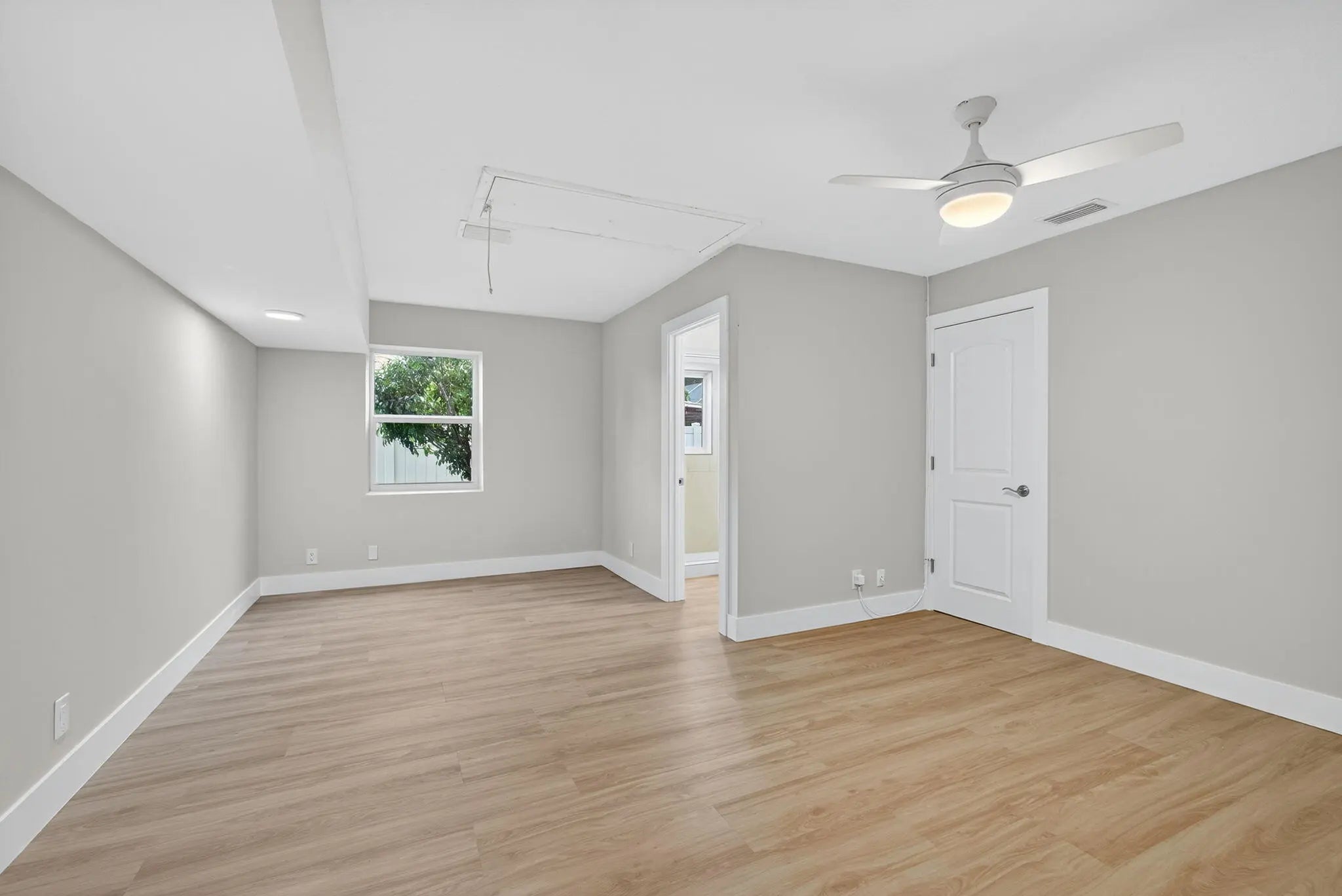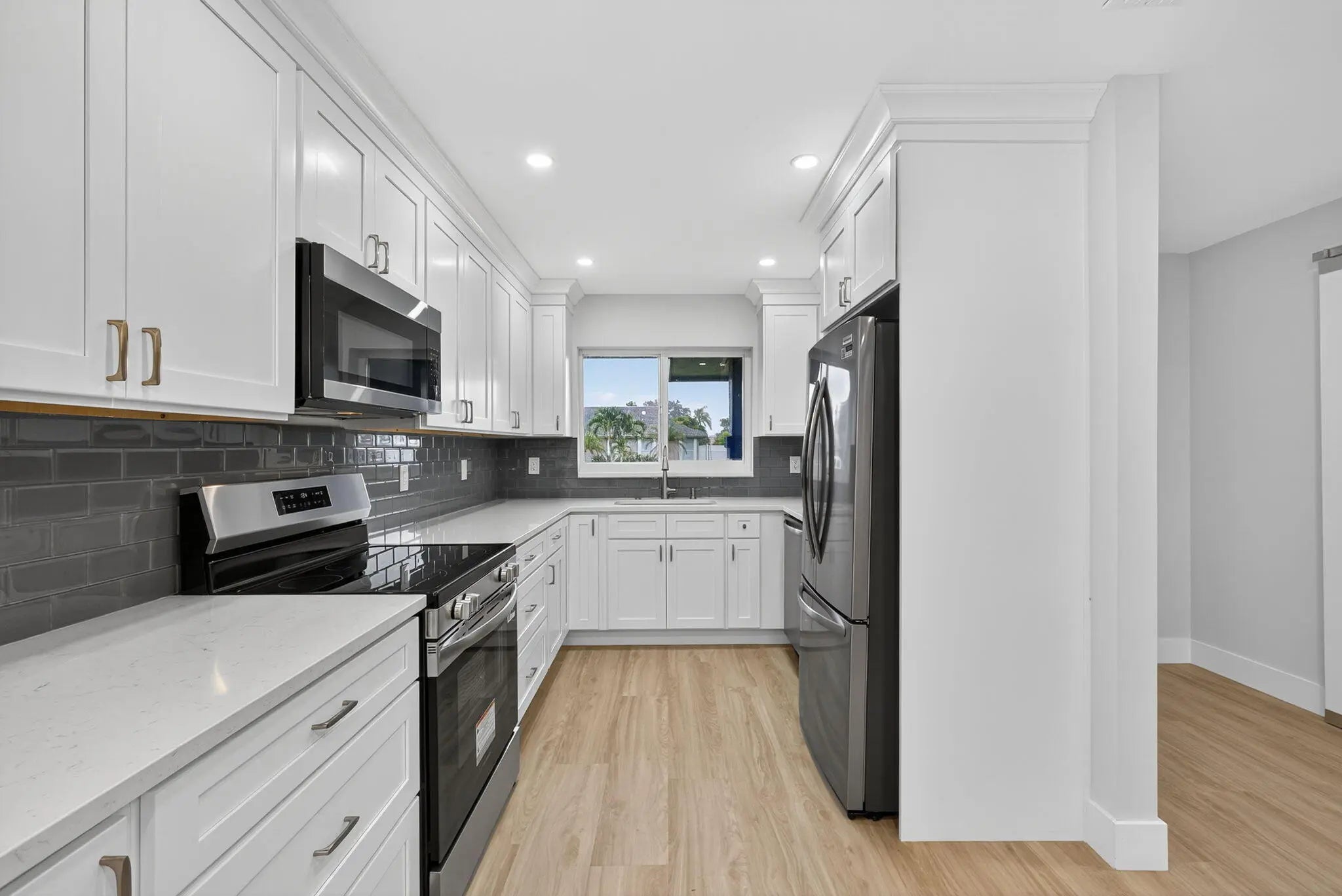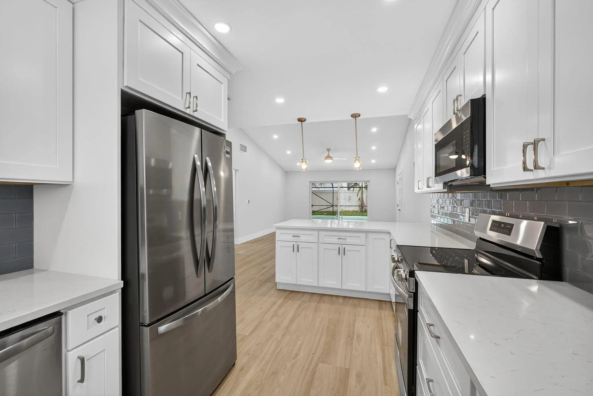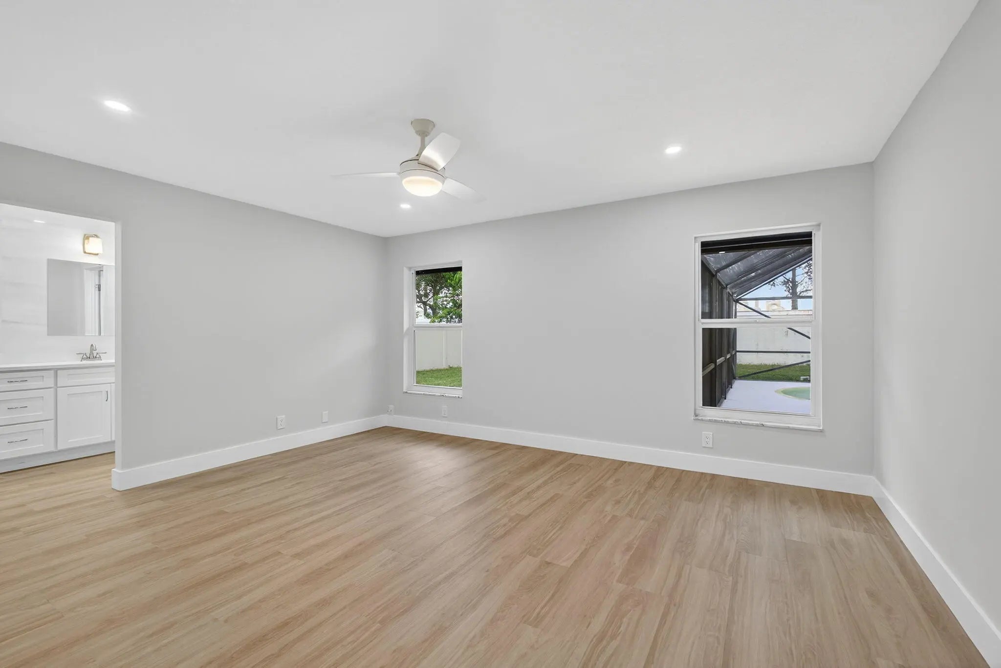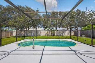 Completely remodeled, open concept, split floorplan, pool home welcomes you to established Wellington family neighborhood with No HOA! All new finishes & fixtures throughout! Lovely kitchen renovation with new ss appliances, quartz countertops, loads of white shaker cabinets for storage, sink disposal, & pendant lights over the eat-in peninsula. New LVP floors, interior doors & trim, interior & exterior paint, lighting & ceiling fans, refreshed closets and shelving. New roof, new irrigation system & pump w/water supplied by well, Impact windows & doors. All new bathrooms with beautiful wall tile, new vanities, toilets, showers. Primary bedroom features dual sink vanity and walk-in closet, while the two split br's share bath w/shower-tub combo. The barn-style door near entryway opens to a ..prior garage conversion to a fourth bedroom/third bath (an additional ~230sf under A/C). Nicely updated, this extra room is a great option for a growing family, or potentially the perfect space as an in-law suite, home office, personal gym, workshop, etc. The screen-enclosed pool was resurfaced, pool pump & skimmer were replaced, and pool deck was freshly painted. The private, fenced and spacious backyard offers plenty of room for entertaining, or even an RV or boat. All this and more on a cul-de-sac street that's close to everything the Wellington community has to offer! Easy to show and move-in ready. Come make this your home here!
