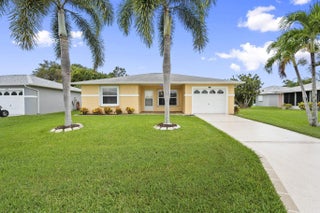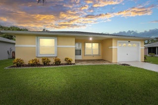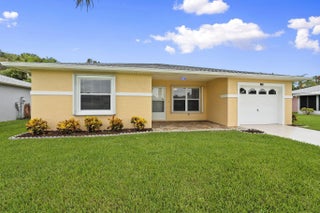 MOVE-IN READY in Palm Grove! This charming 2BR/2BA CBS home in a desirable 55+ gated community offers 1,135 sq ft with tile floors throughout, an open living/dining layout, and a bright kitchen. The primary suite features a private bath, plus a comfortable guest bedroom and full guest bath. Relax on the oversized 10x24 screened porch or enjoy the low-maintenance yard. Updates include a 2019 roof, brand-new A/C (2025), and a 2025 whole-house HALO air purifier. Located on a quiet dead-end street with county taxes only. HOA includes water, sewer, cable, internet, lawn care, and resort-style amenities: heated pool, pickleball, tennis, fitness center, clubhouse, and 24-hr guarded security. Close to shopping, dining, medical care, and beaches.