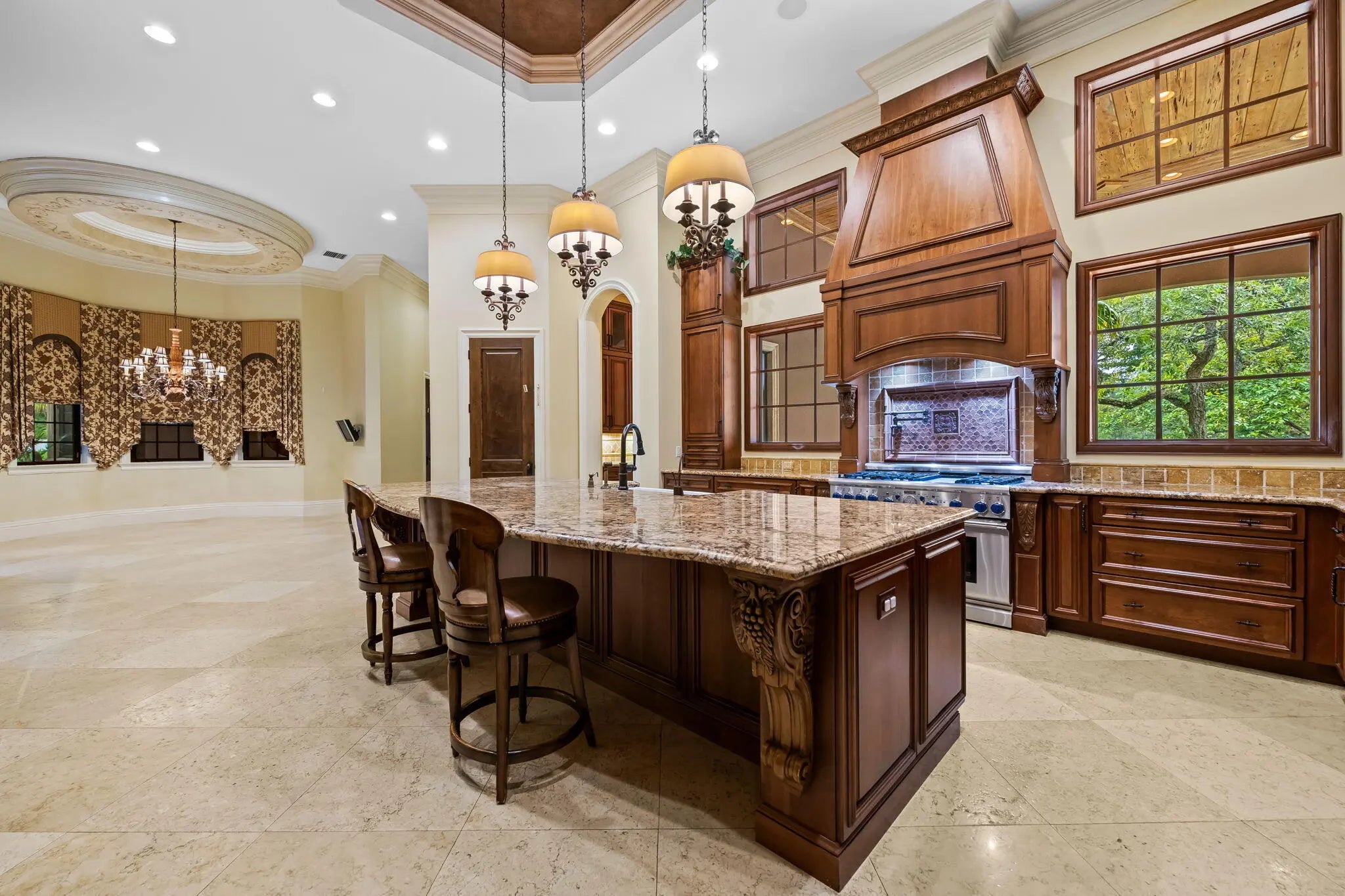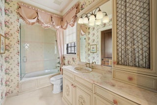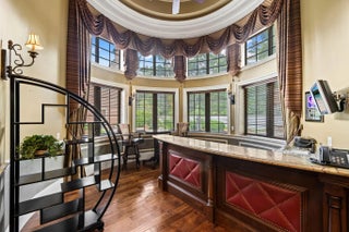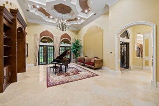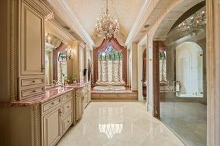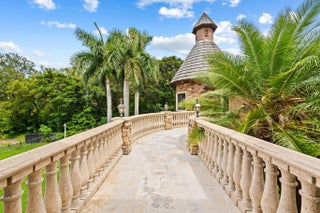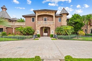 This exceptional estate, constructed by Terry Shore, is set on over 7 acres of fully fenced and gated grounds, (WITH CITY WATER AND SEWER), offering a total of 22,000 sq. ft. of living space. The main residence encompasses 12,000 sq. ft., complemented by a 1,200 sq. ft. guest house with a full kitchen. Additional amenities include a separate two-story exercise facility featuring a sauna and steam bath, which may also serve as guest quarters, as well as a 9-car climate-controlled garage. The property further boasts a 10-seat movie theater, an English pub room with billiards, three fireplaces, and a built-in office with wainscoting. All windows and doors are equipped with impact protection, and the estate includes a full-house generator. Additional features comprise three laundry rooms and a Crestron lighting and home automation system. The meticulously landscaped grounds present a resort-style, heated saltwater pool and spa holding 80,000 gallons, custom-built by AAA Pools, in addition to a lighted tennis court, a green/Par 3, two exterior fountains, and a wishing well. The property is equestrian friendly and can be subdivided.