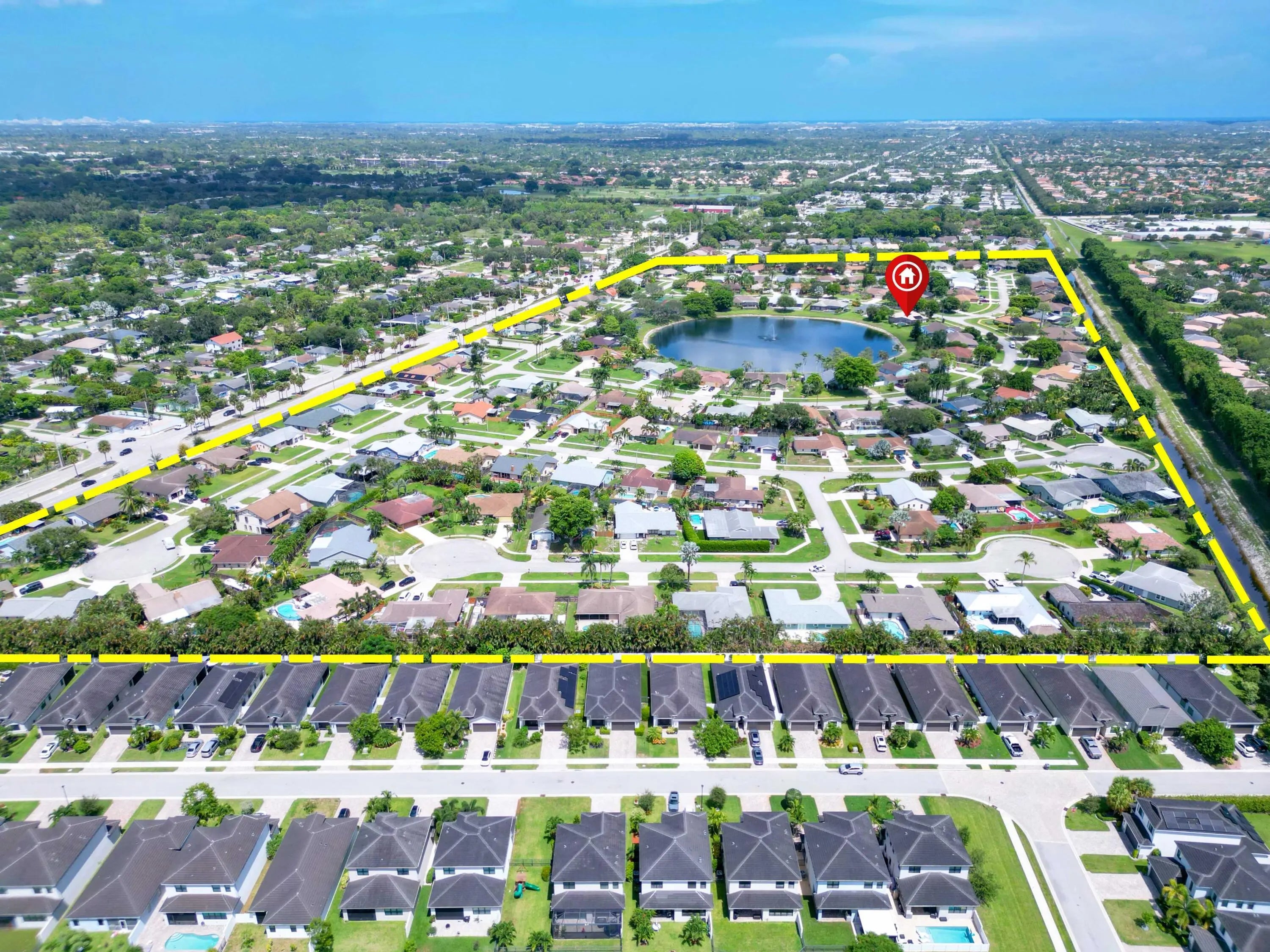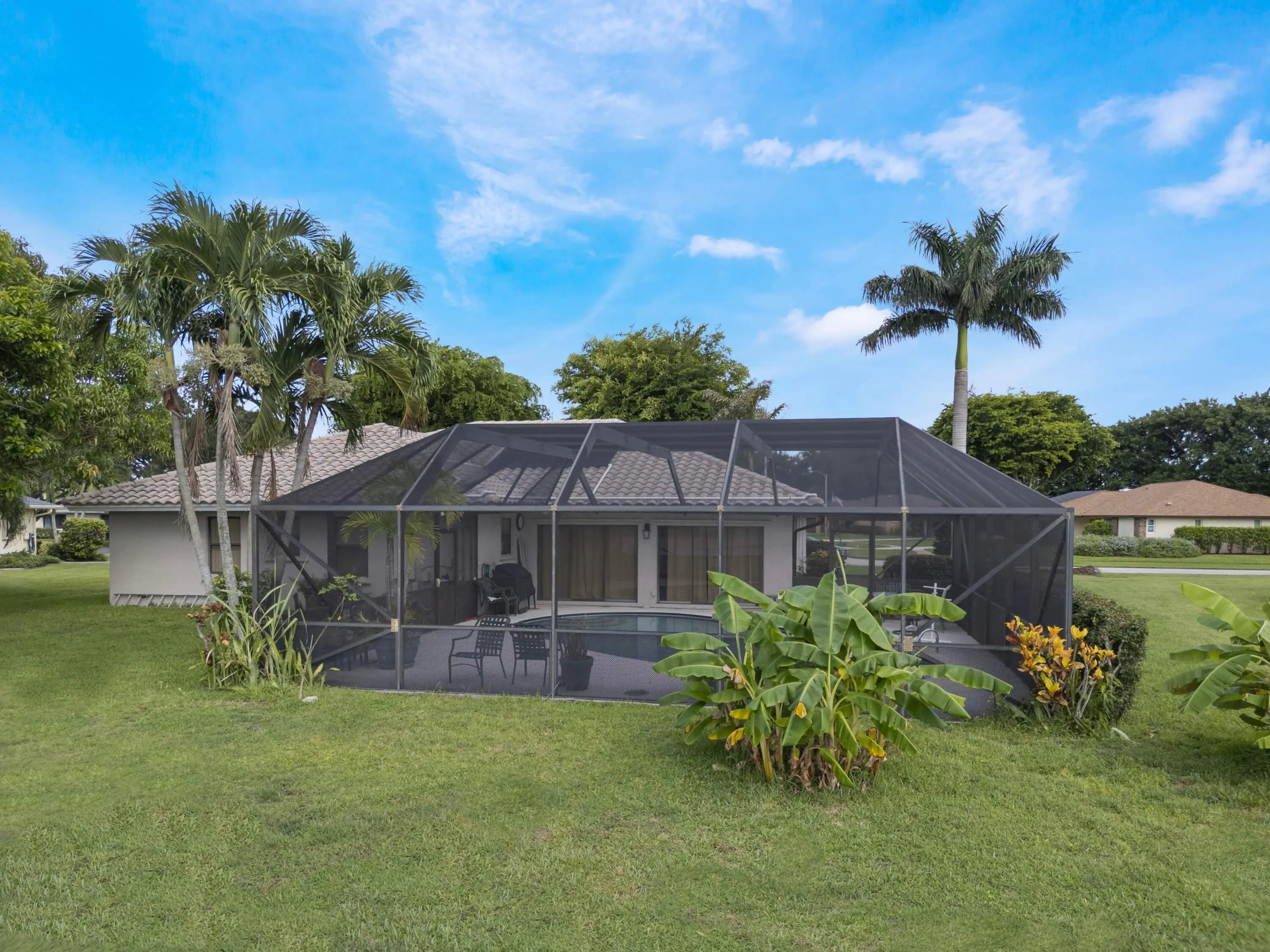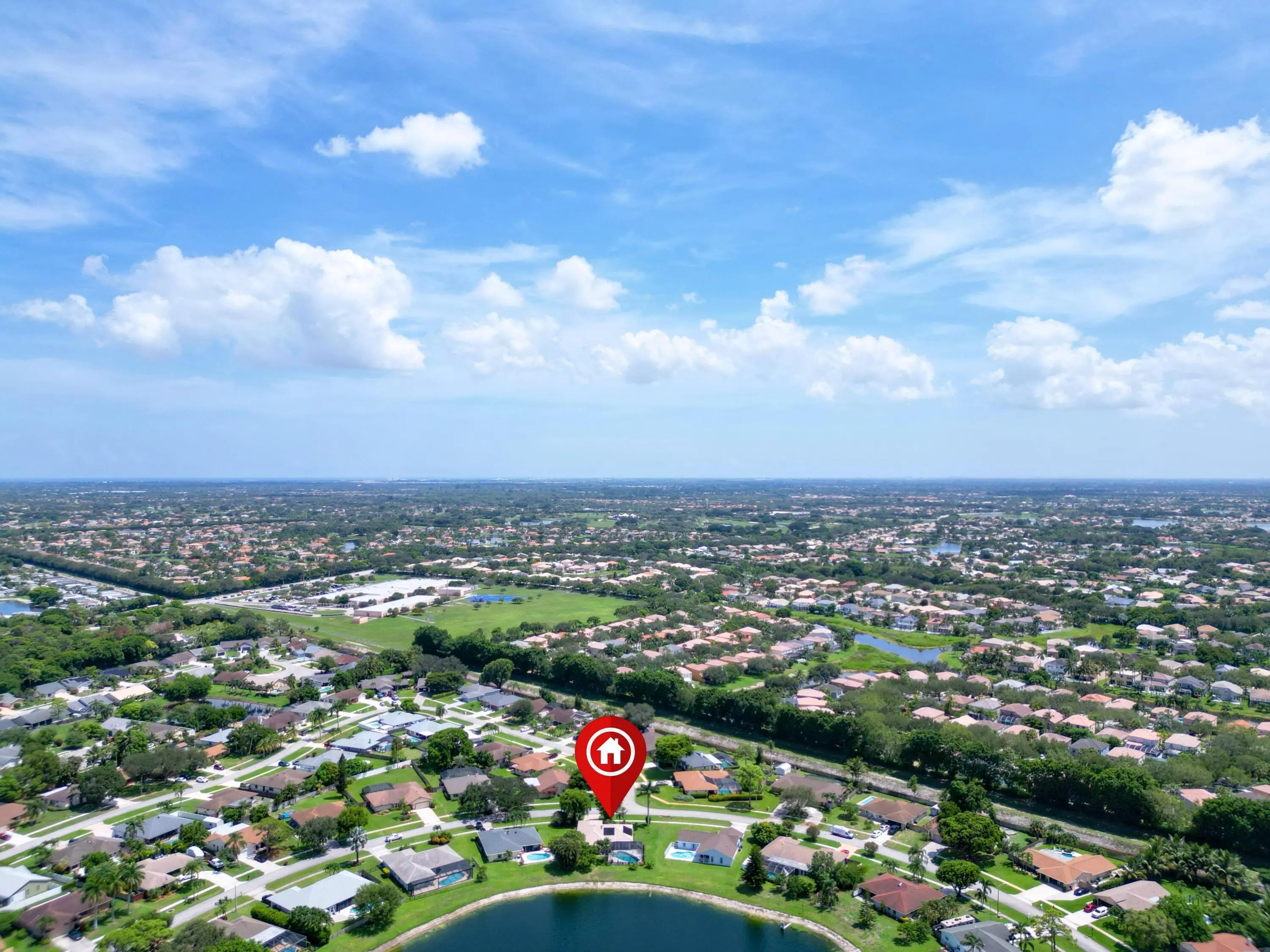 Discover this beautiful single-family pool home perfectly situated on a tranquil lake in the highly sought-after Woodland Creek community. Offering 3 bedrooms, 2 bathrooms, a private office, and a 2-car garage, this spacious residence features a split-bedroom floor plan with vaulted ceilings, a formal living and dining area, and a comfortable family room designed for both everyday living and entertaining. The kitchen overlooks the main living space and opens to a fully enclosed lanai, where you can relax and enjoy peaceful lake views year-round. Woodland Creek is admired for its A-rated schools, low HOA fees, and wonderful amenities, including tennis, pickleball, a lakeside pavilion, and a play area. Ideally located near shopping, dining, nature preserves, and the National Polo Fields in Wellington, this home offers the perfect combination of comfort, community, and lifestyle. Roof 2005, W/H 2025, A/C 2009, Pool Pump 2026.