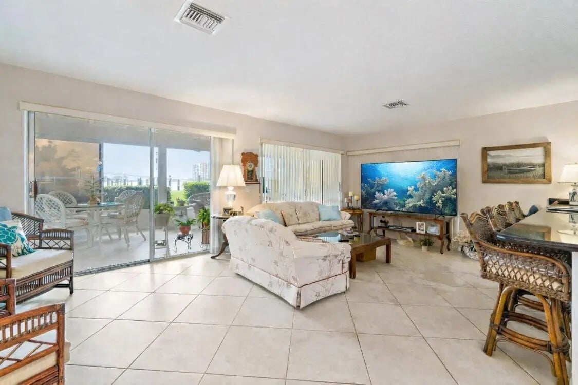 Boat docks available for rent or purchase and private beach access make this Sugar Sands villa a rare opportunity on Singer Island. Enjoy the freedom to keep your boat close to home while also having direct access to some of Palm Beach County's most beautiful beaches—an exceptional combination that sets this community apart. One of only four unique villas in Sugar Sands, this single-story residence lives like your own ranch home, offering an open floor plan, private backyard, and patio space where owners can BBQ and entertain outdoors—a feature not available to the condominium residences within the community. Inside, the kitchen is centered around a large island with seating, ideal for casual dining, food preparation, or gathering with guests. The 55+ community also offers resort-style amenities including one of the largest pools on Singer Island with lap lanes, shaded lounging areas, BBQ grills, plus tennis and pickleball courts. A rare chance to enjoy boating, beach access, and villa-style living in one of Singer Island's most desirable coastal settings.
