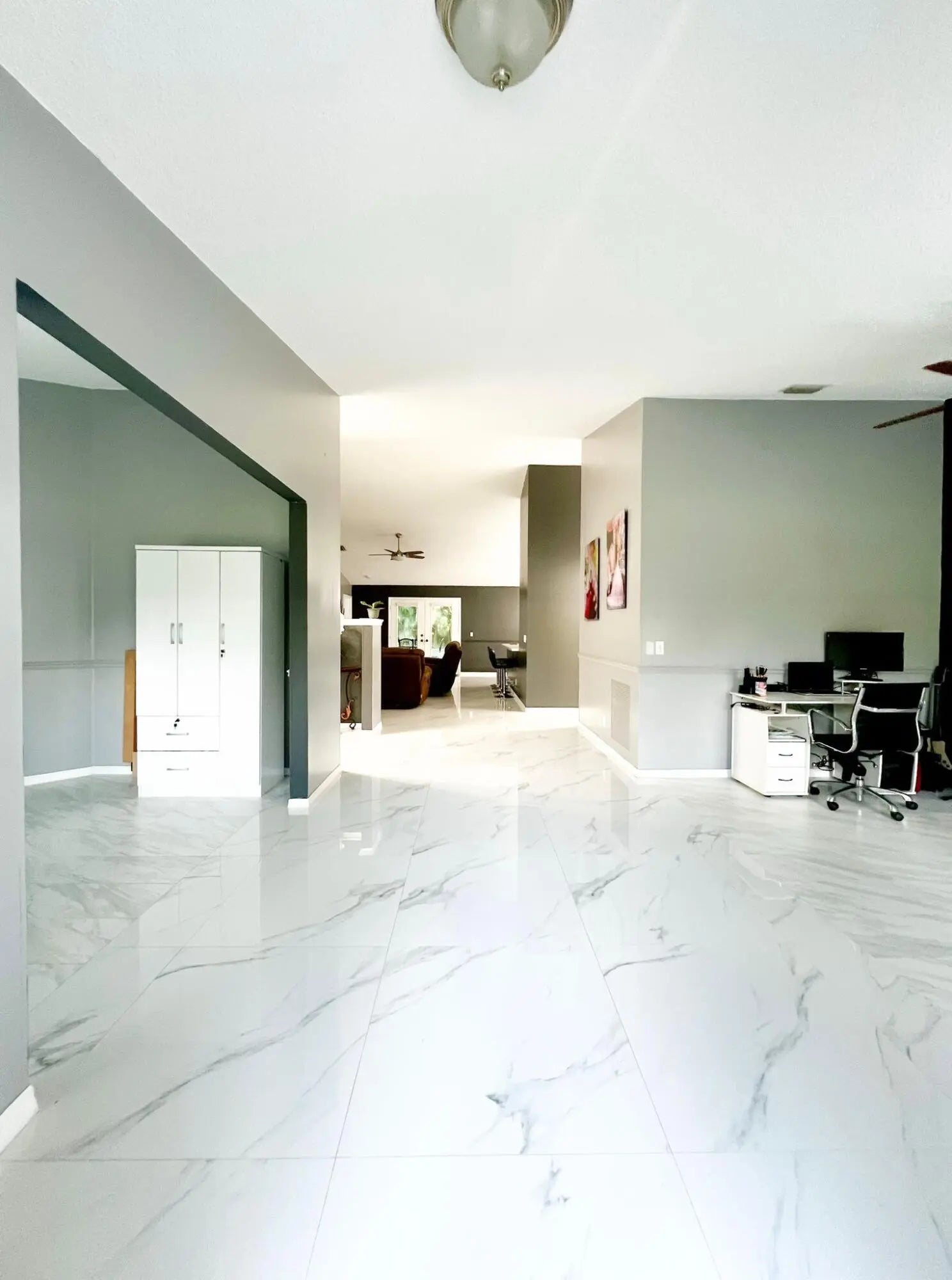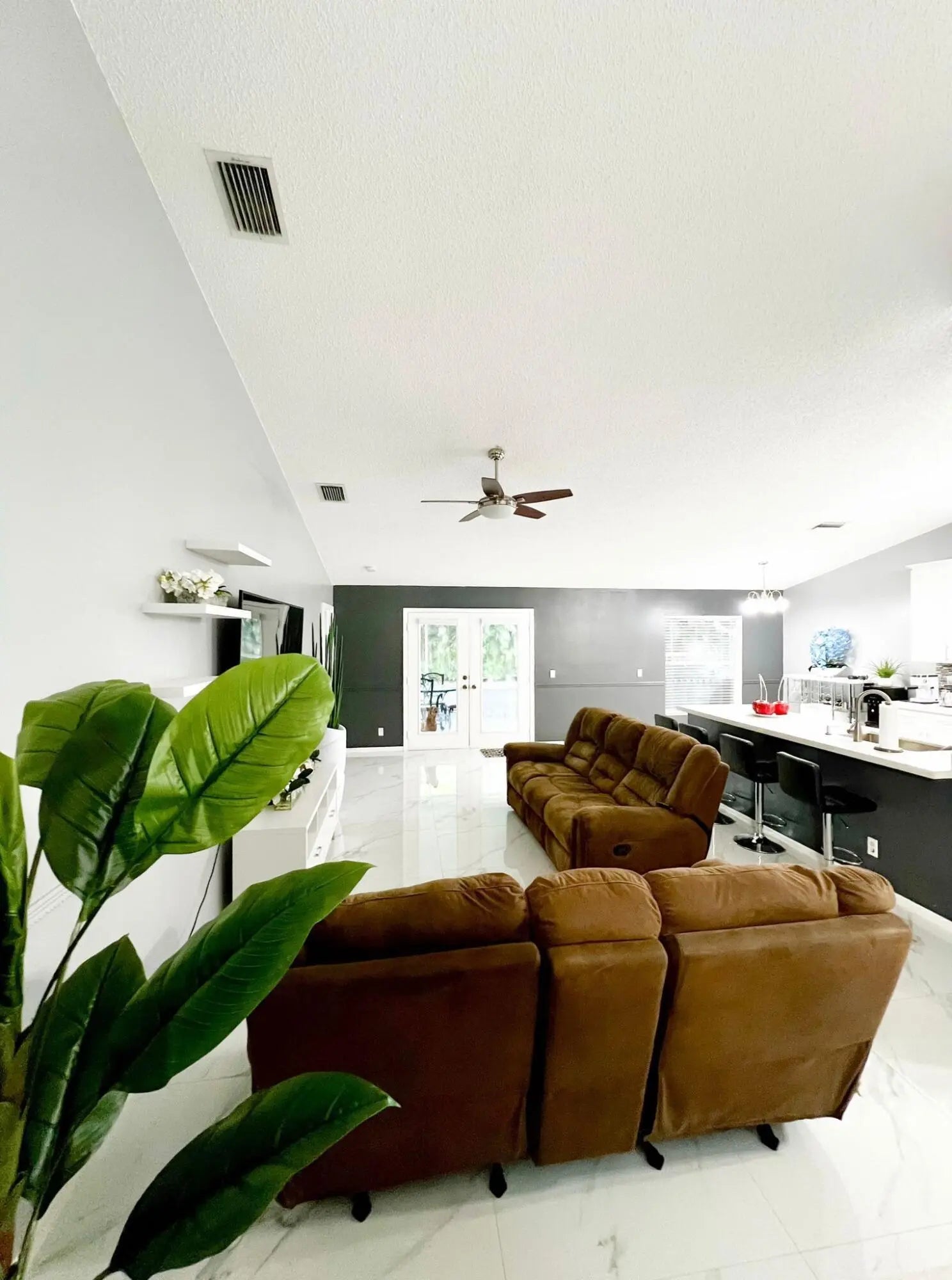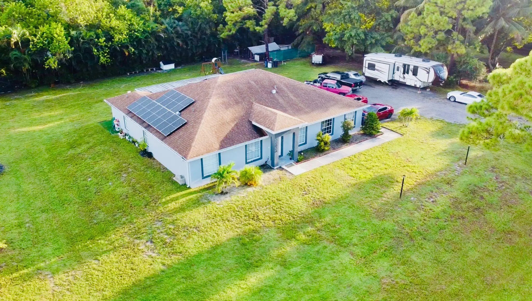 Welcome to this beautifully updated 4-bedroom, 3-bathroom home on 1.29 acres in West Palm Beach! This spacious property features an open floor plan, modern finishes, and stunning marble-look tile throughout. The home is filled with natural light, offering both comfort and style. Enjoy expansive living areas, a large front yard, and the added bonus of solar panels that will be transferred to the new owner, providing long-term savings and energy efficiency. Conveniently located with easy access to shopping, dining, and major highways, this move-in ready home is the perfect blend of privacy and convenience!