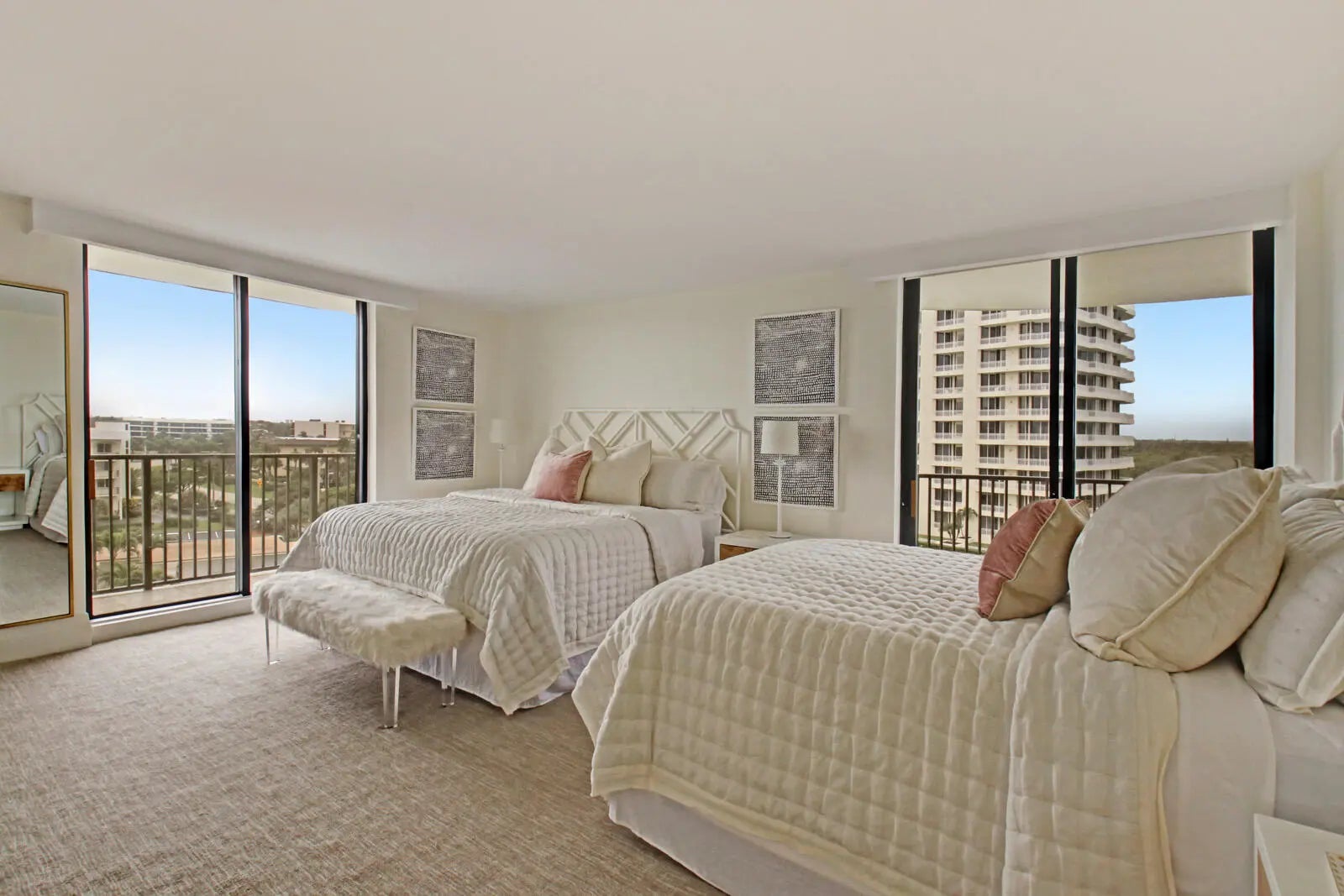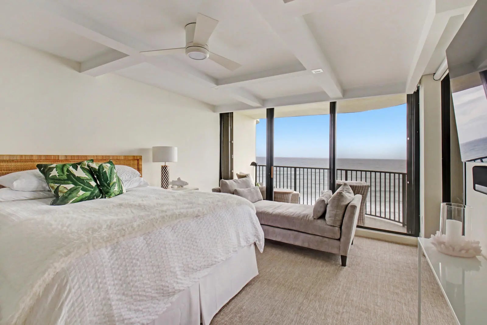 A singular opportunity: unmatched sunrise-to-sunset SE-corner 3BR/2BA residence on Jupiter Island, extensively designer renovated and furnished. Nestled in an intimate 44-unit boutique building within a quiet island enclave on a natural barrier reef island, the flow-through plan, wall of windows, and wraparound balcony frame sparkling clear turquoise ocean, crystalline Intracoastal, and picturesque Jupiter Lighthouse views. Amenities include a fitness center, infinity pool, three-story clubhouse with full kitchen/grill, Zen garden with BBQ, garage parking, and direct private white-sand beach access. With marinas, boat club, inlet access, waterfront dining, and world-class golf nearby, this residence is available now for annual lease in one of America's most exclusive coastal enclaves.