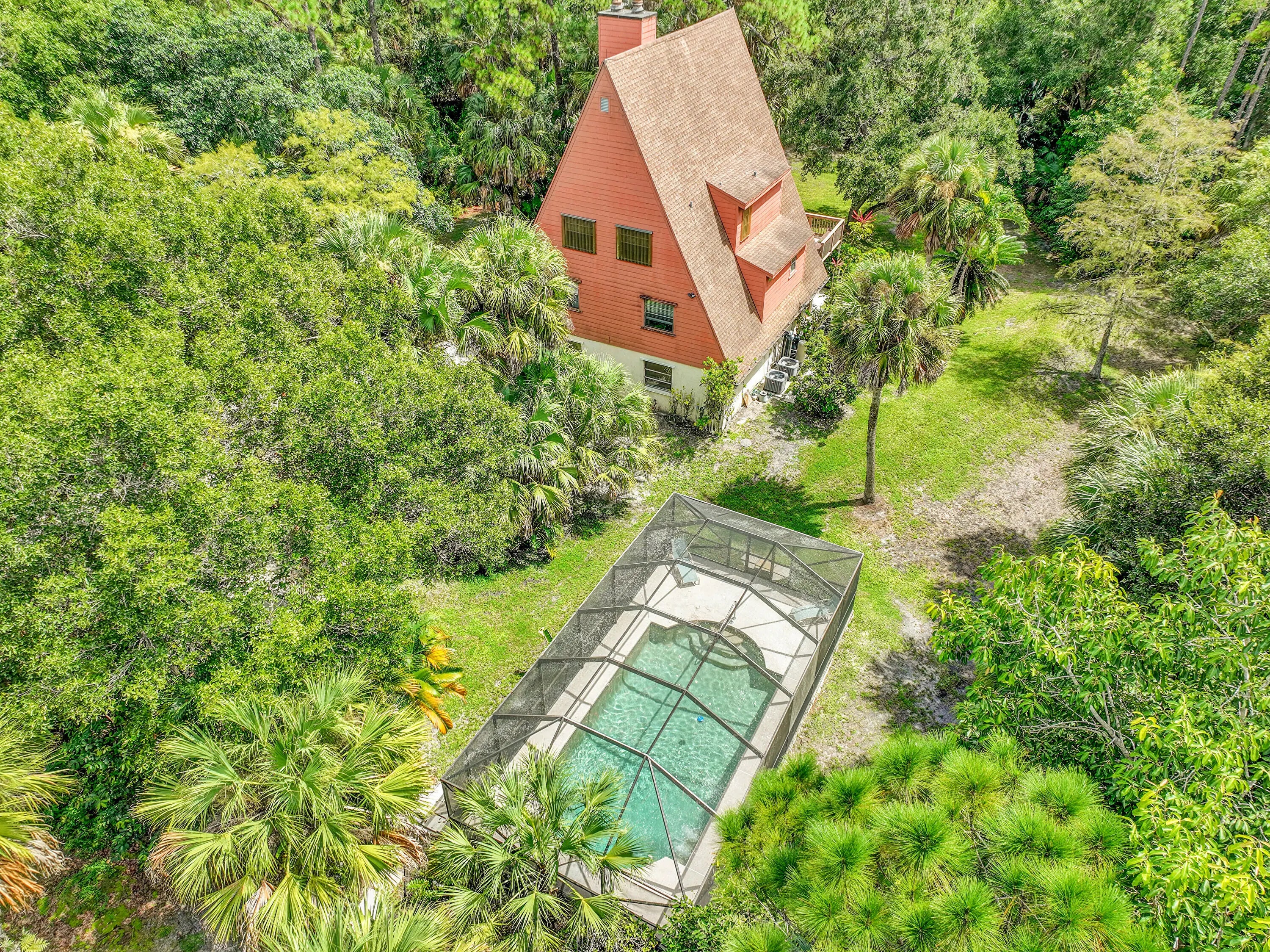 Bring your vision, your family, and your toys to this unique three-story Jupiter Farms retreat! Set on 1.25 acres of privacy, this spacious home offers character, charm, and endless potential. Featuring large rooms, two fireplaces, and a screened-in pool, it's the perfect canvas to create your dream home. There's plenty of space for your boat, RV, or workshop NO HOA and total freedom to make it your own. Surrounded by trees and nature yet minutes from I-95, resturants. shopping, and top schools. Experience the best of Jupiter Farms living space, serenity, and family lifestyle!