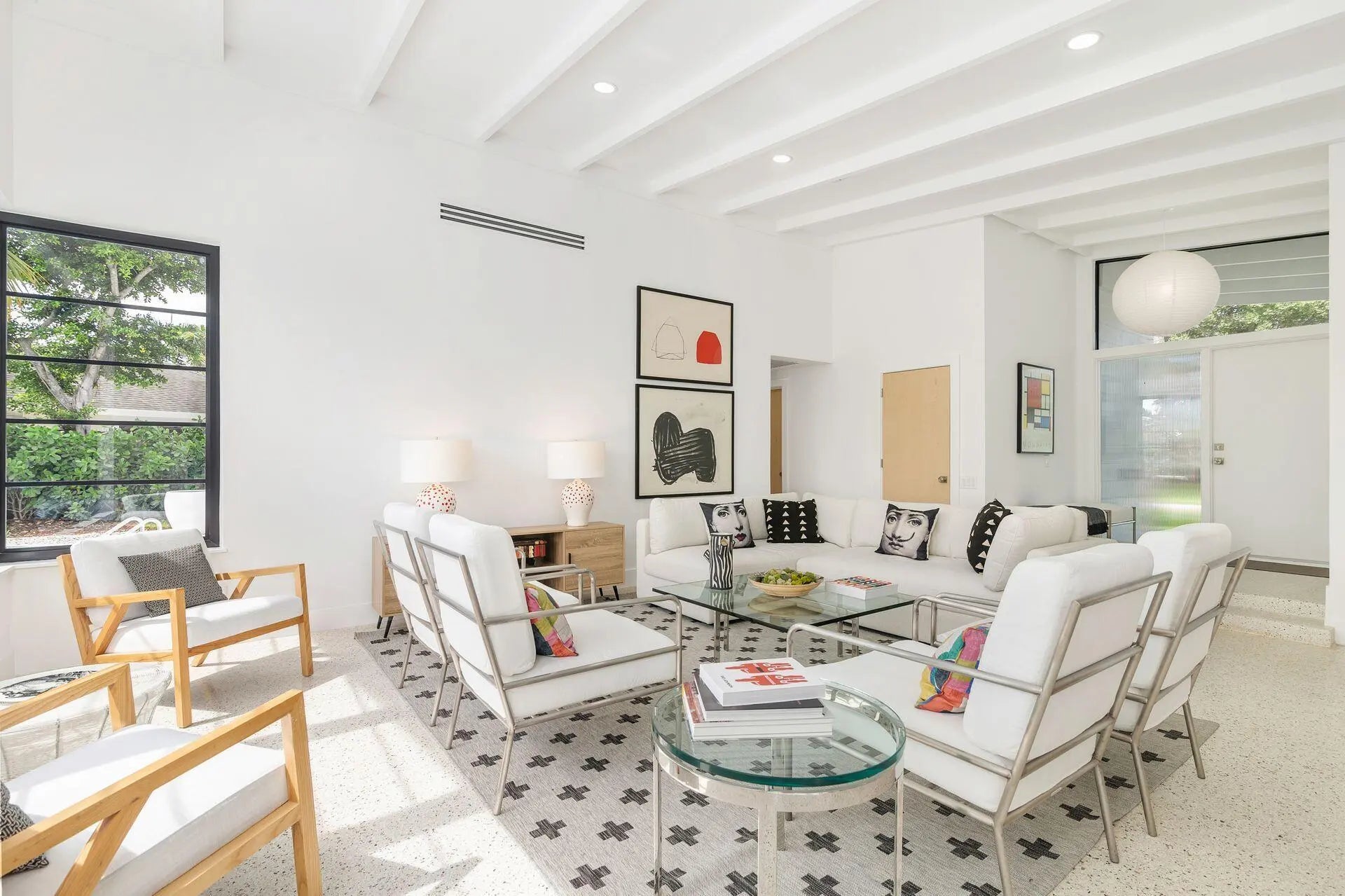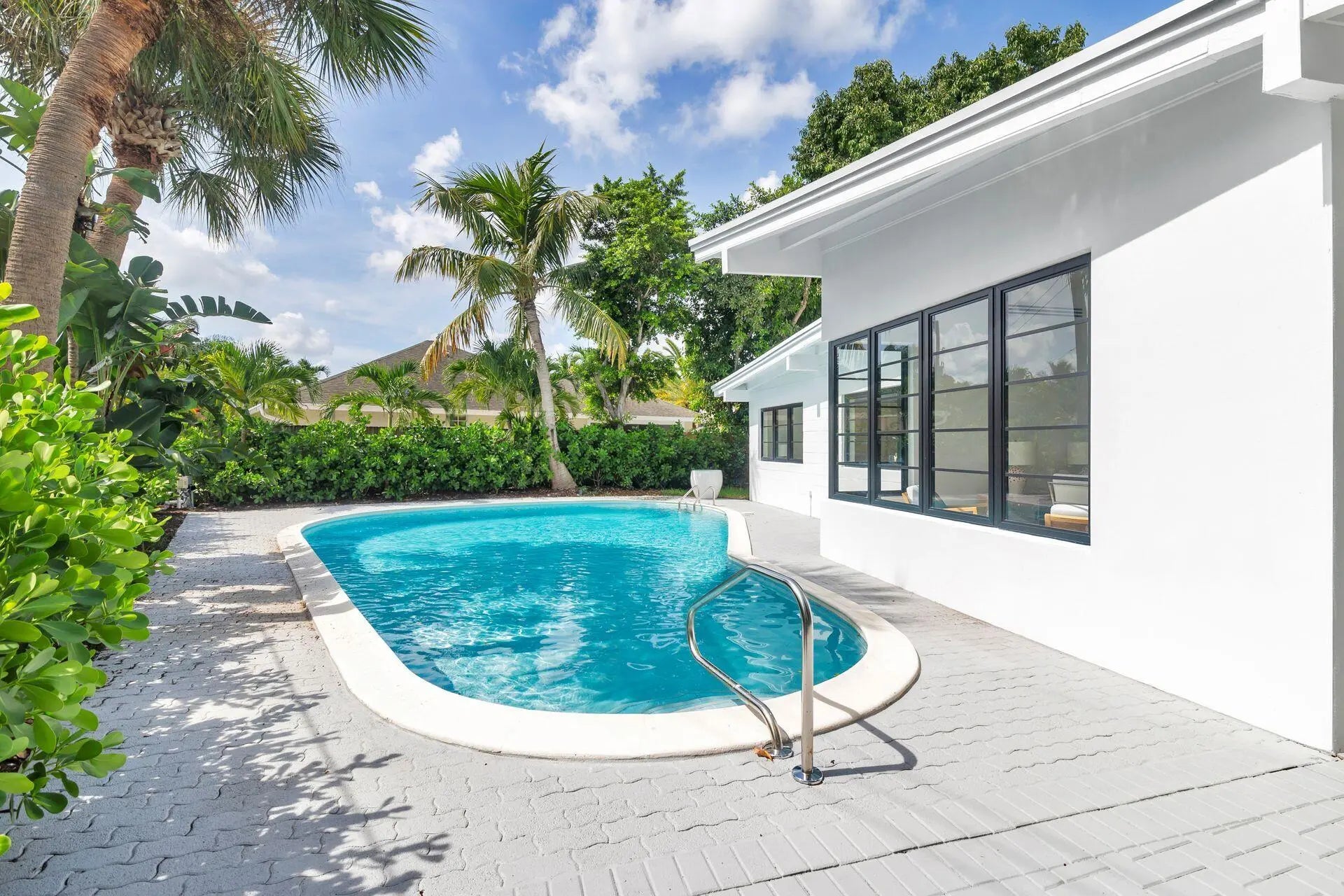 Mid-century modern architecture at its best! After a total renovation, this four-bedroom, three-bath home maintains all the classic elements of its original design. Generous-sized windows and soaring ceilings allow natural light to permeate throughout. The large entry foyer separates the bedroom wing from the open flow of the family gathering spaces. The extensive renovation encompasses all new hurricane-impact windows, new roof, new electrical system, two new HVAC units, new plumbing, and an air-conditioned garage. The original terrazzo floors have been meticulously restored, and the kitchen, laundry room, and baths have been completely reimagined. With its oversized pool and patio, the back yard is perfect for entertaining, and a well-shaded side yard is perfect for relaxing. The lush Florida landscaping and fencing provide full privacy and blend the lines between indoor and outdoor living. Close to Lake Clark Shores, the LCS town hall, tennis courts, pickleball courts, and children's playground.