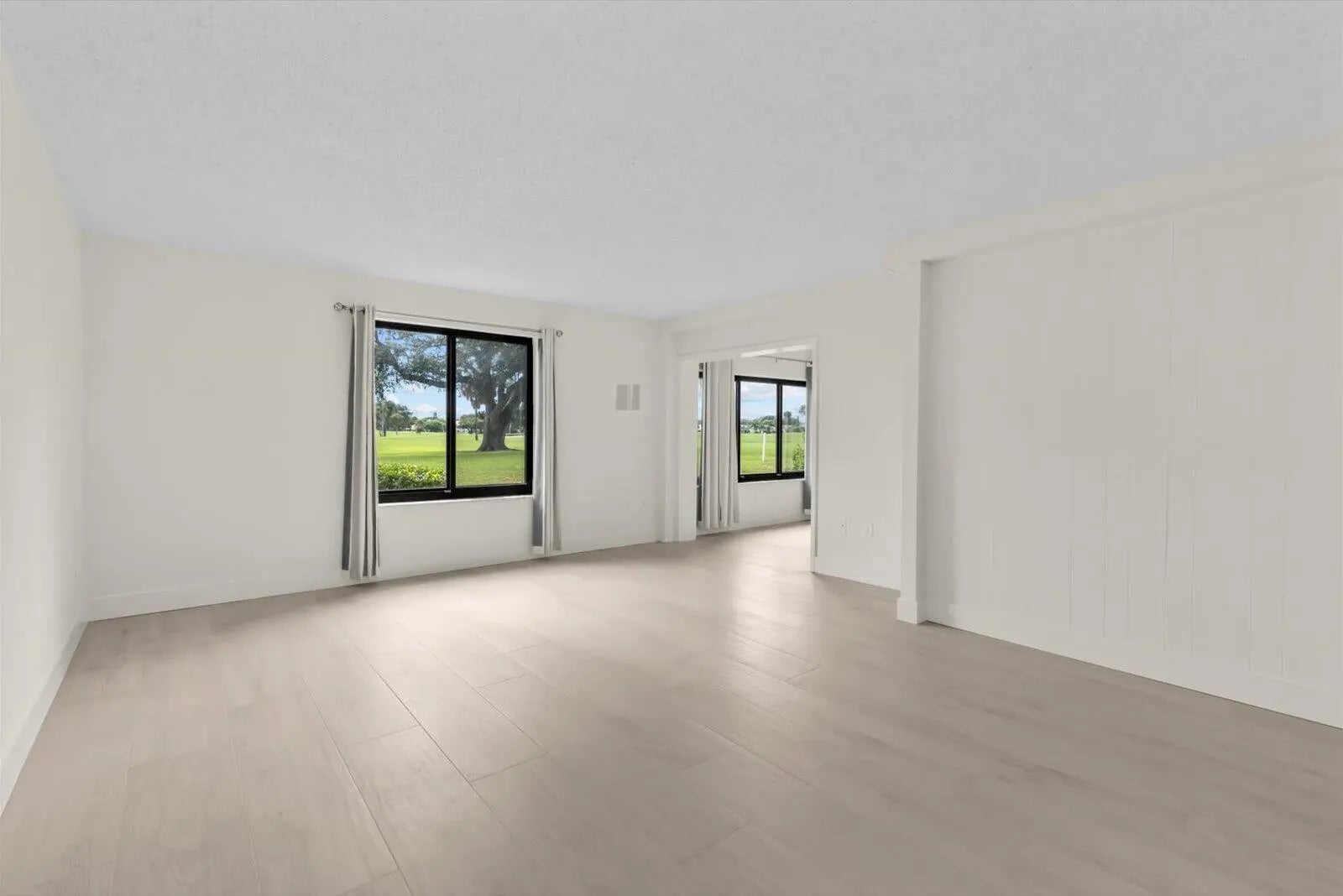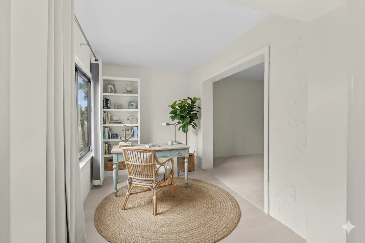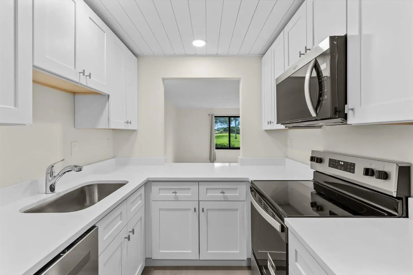 Enjoy peaceful views of the 14th fairway at Miles Grant Golf Course right from your living room or sun-filled bonus room. This home has been thoughtfully updated where it matters most: beautiful new tile flooring in the living areas and kitchen, brand-new appliances (including washer and dryer), and fresh cabinetry with quartz countertops in both kitchen and baths. The air conditioner was replaced in 2017, and you'll appreciate the ample storage with multiple closets throughout. A bonus room off the primary bedroom makes an ideal study, hobby space, or quiet reading nook. For peace of mind, every window has hurricane protection with impact glass, many also have accordion shutters in addition. Living at Miles Grant Country Club means more than just a home—it's a lifestyle. See More. A required social membership ensures access to an active community offering golf, pickleball, tennis, swimming, monthly social activities and more. You'll also enjoy the club's dining room and tavern, known for excellent means, with only a modest $350 annual dining minimum. This is an ideal opportunity to embrace a worry-free, active, and welcoming community