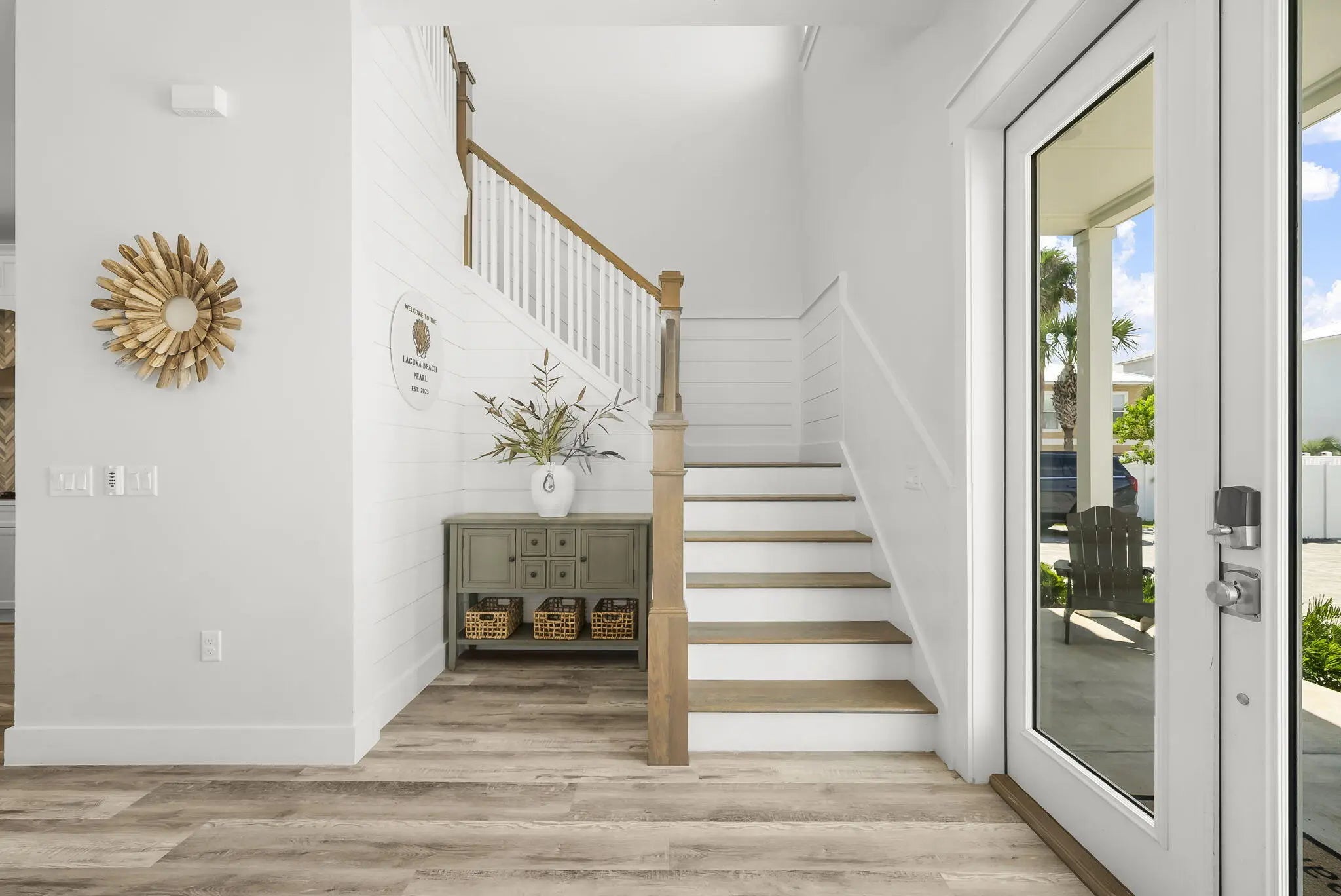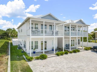 Welcome to your dream beach retreat! This stunning 5BR/4.5BA home offers 2,800 SF of luxury living just steps from the sugar-white sands of Panama City Beach. Bright and airy with soaring ceilings and open-concept design, it features a chef's kitchen, refreshed coastal décor, and new artwork throughout. The living room and downstairs primary include brand-new area rugs for added warmth. Step outside to a private backyard oasis with a sparkling heated pool, wall-mounted TV, and app-controlled string lighting. A brand-new $10K patio set with loungers and balcony bistro table (lifetime warranty) elevates the outdoor living experience. Enjoy breathtaking Gulf views from the second-floor balcony. Additional updates include power-washed exterior (Aug 2025) and stylish new décor in the dining room and living room. Ideal as a full-time home, vacation retreat, or investment property with strong rental potential. Turnkey and beautifully maintaineddon't miss this West End gem on Front Beach Road!